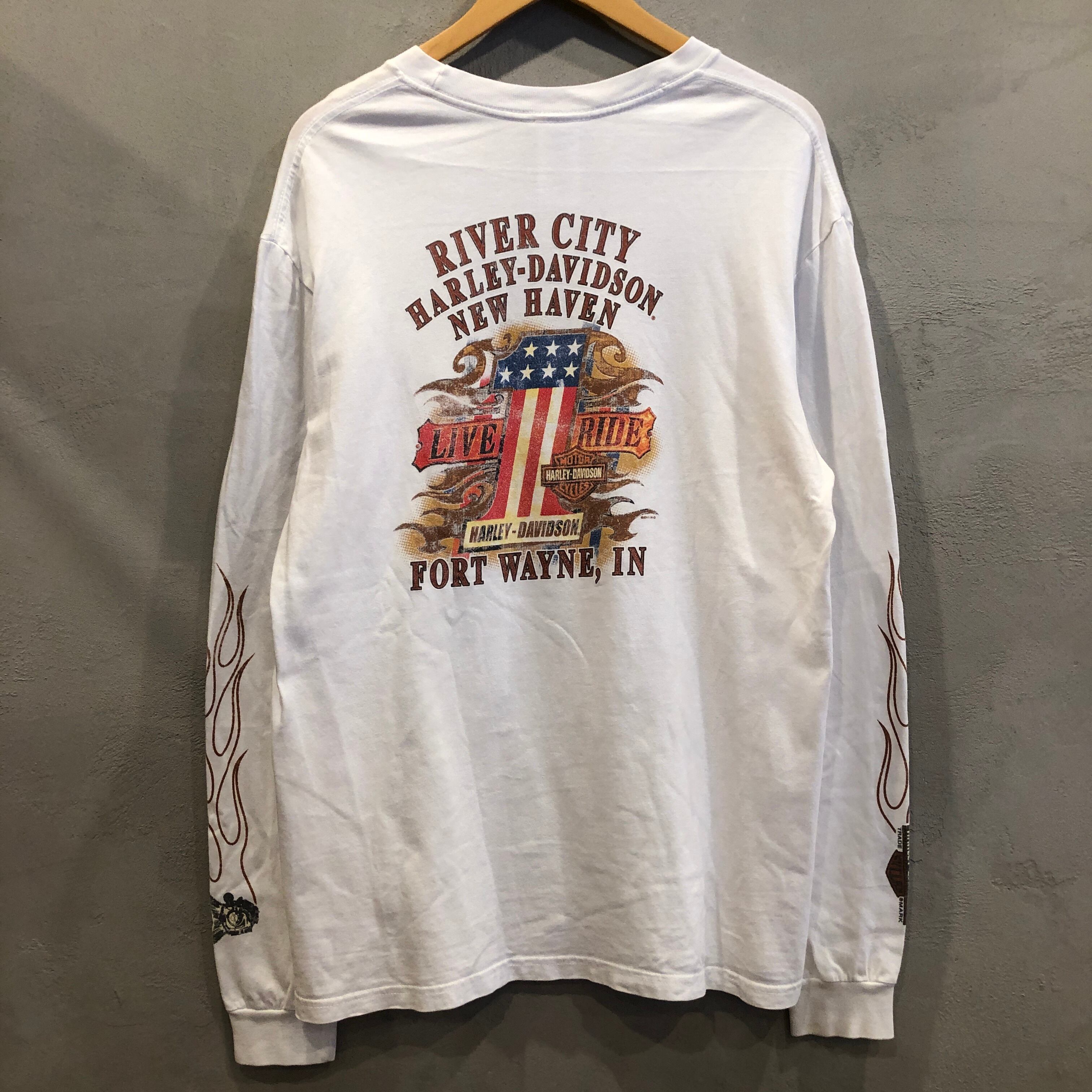 ⊕⊕ 2011'S HARLEY -DAVIDSON L/S WHITE FLAMES 2011 FORTWAYNE T-SHIRT