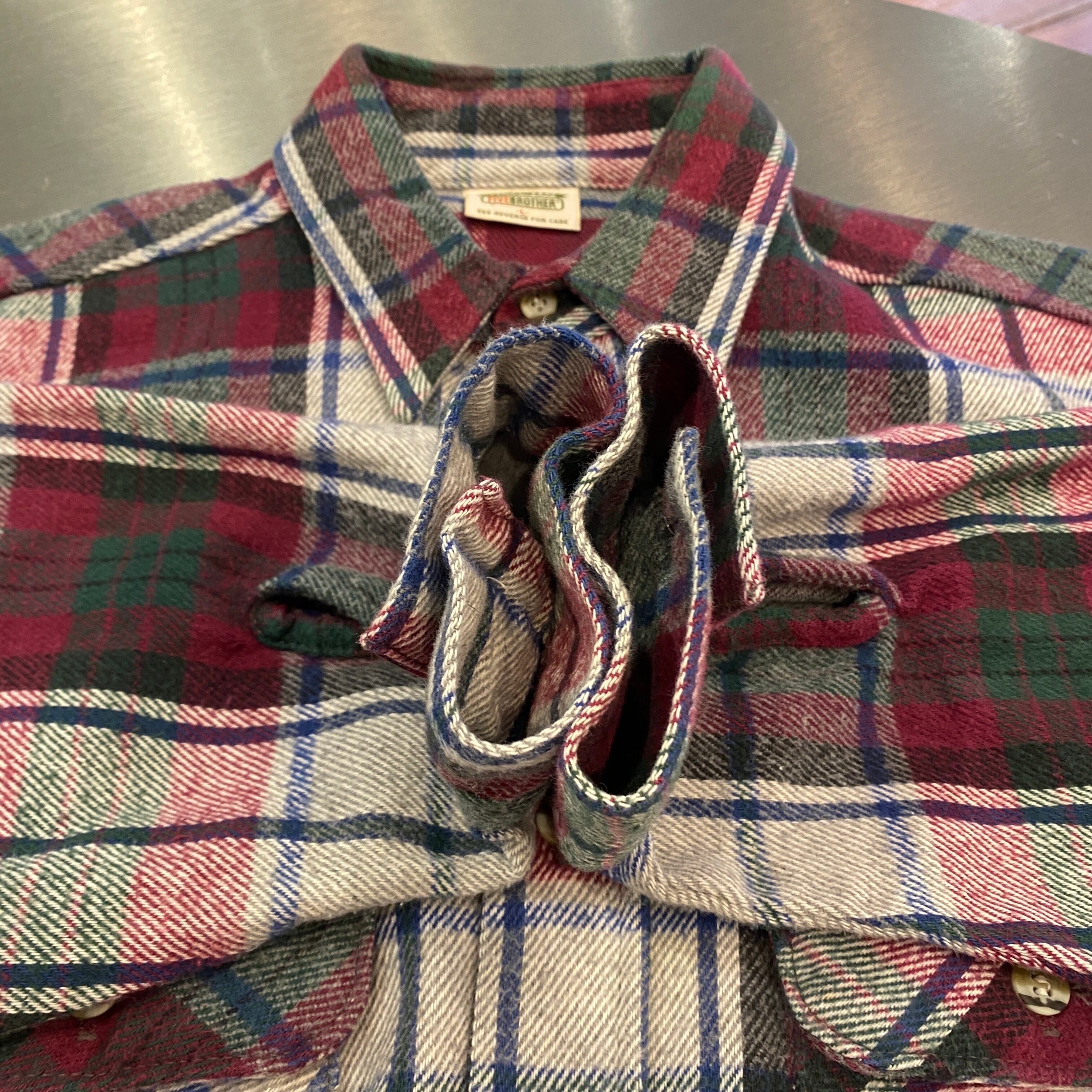 ⊕⊕ 1990s FIVE BROTHER FLANNEL CHECK SHIRT PURPLE/WHITE USA