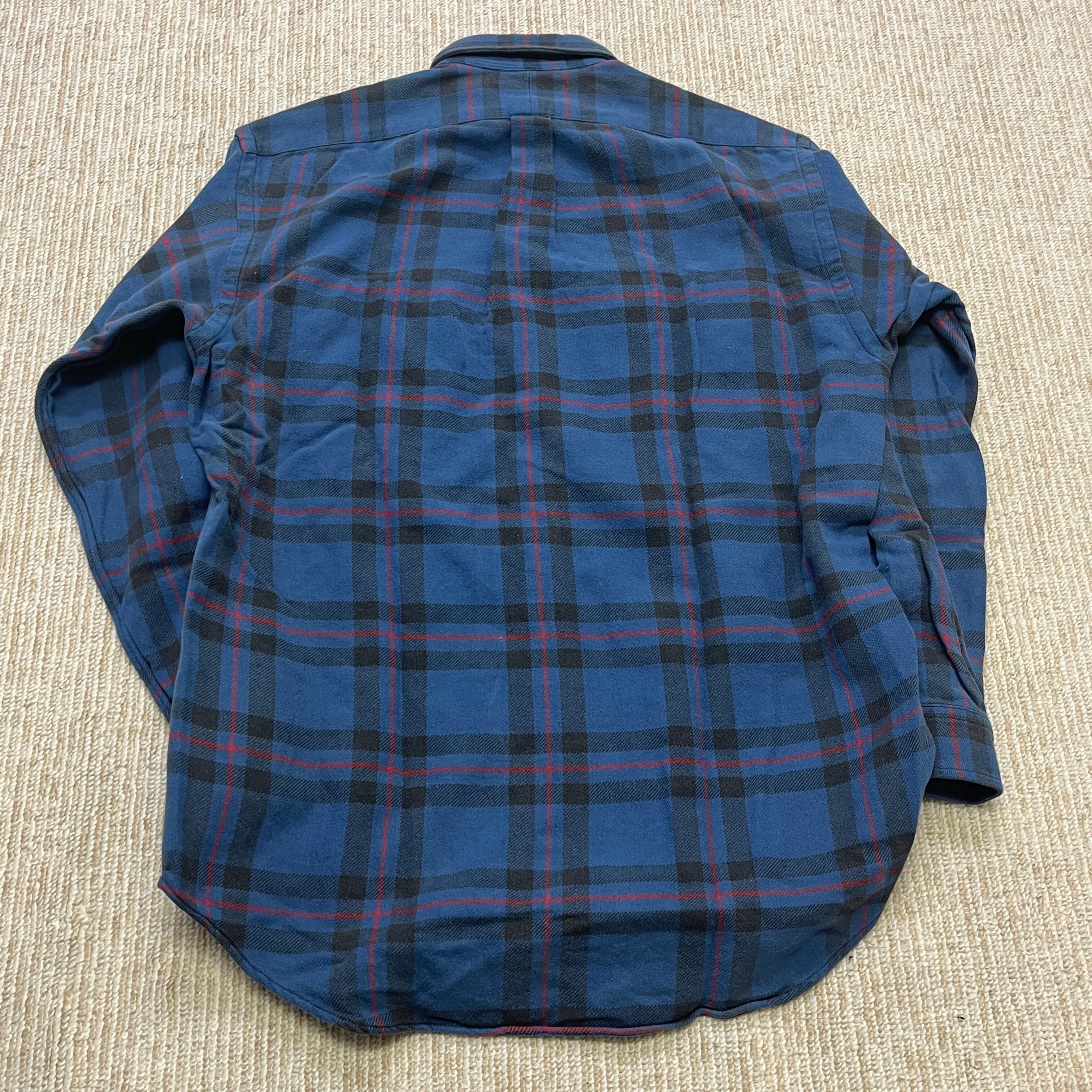 #RALPH LAUREN FLANNEL CHECK SHIRT BLUE 1990'S OLD