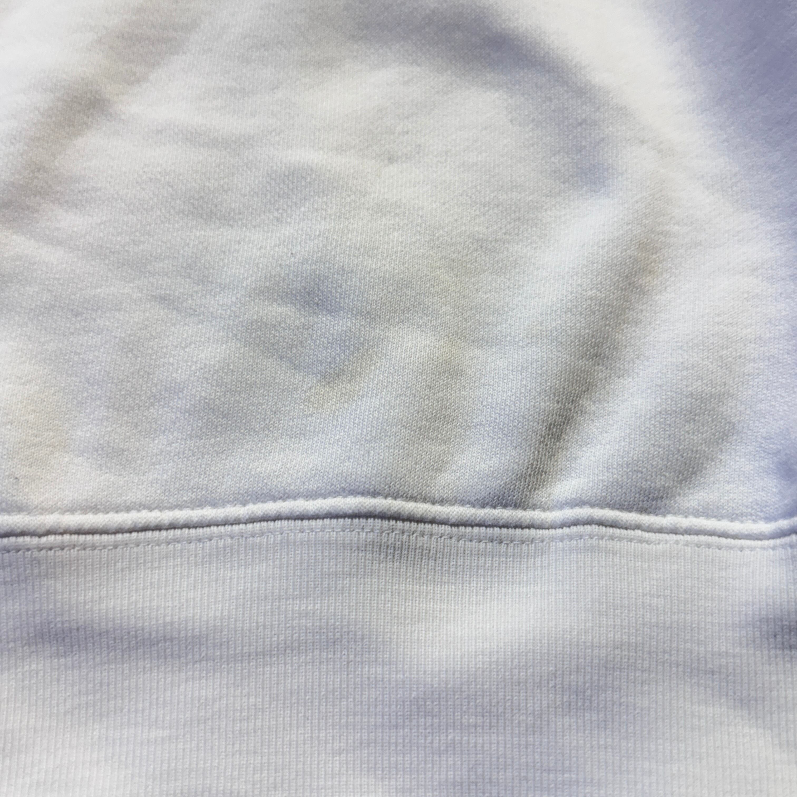 フロントに薄シミ、背面に汚れ、袖先スレ、全体的に着用感がございますが古着慣れされている方でしたら問題無く着用していただける状態になります。