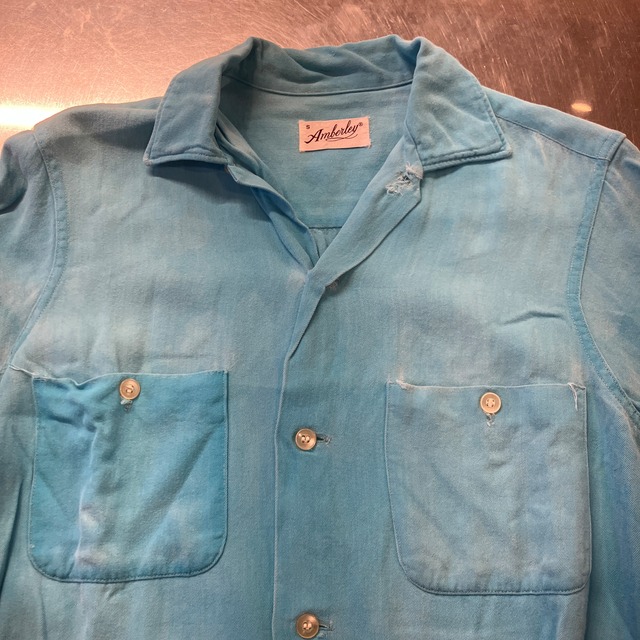 1960s AMBERLEY S/S RAYON SHIRT BLUE S