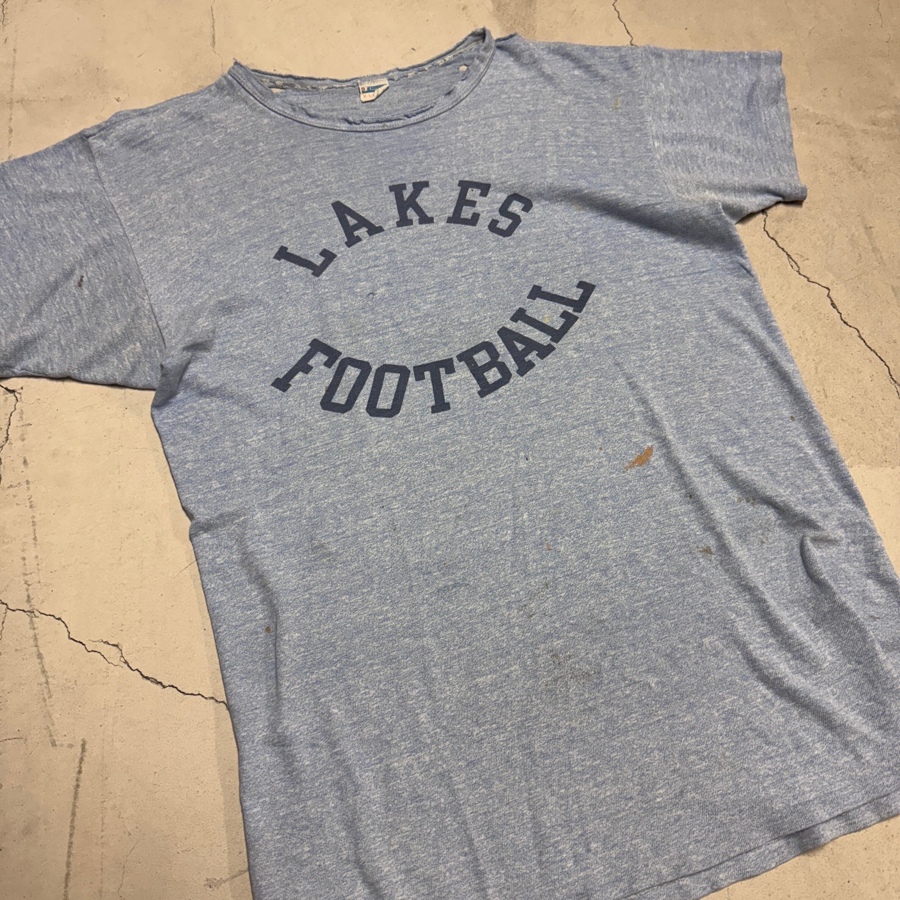 1970'S CHAMPION ATHLETIC TEE XL "ボロ青杢染み込み"
