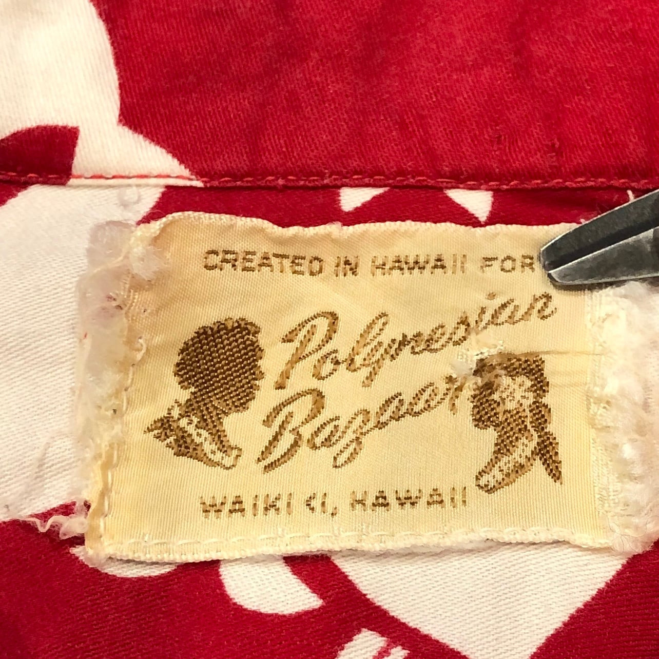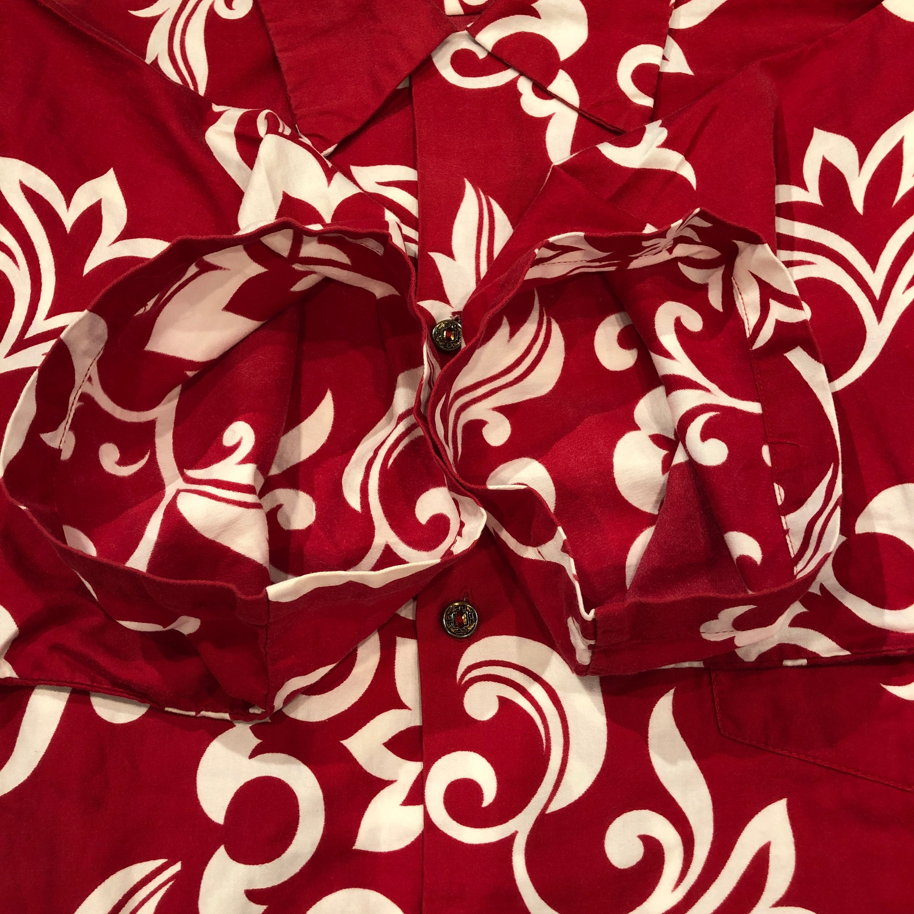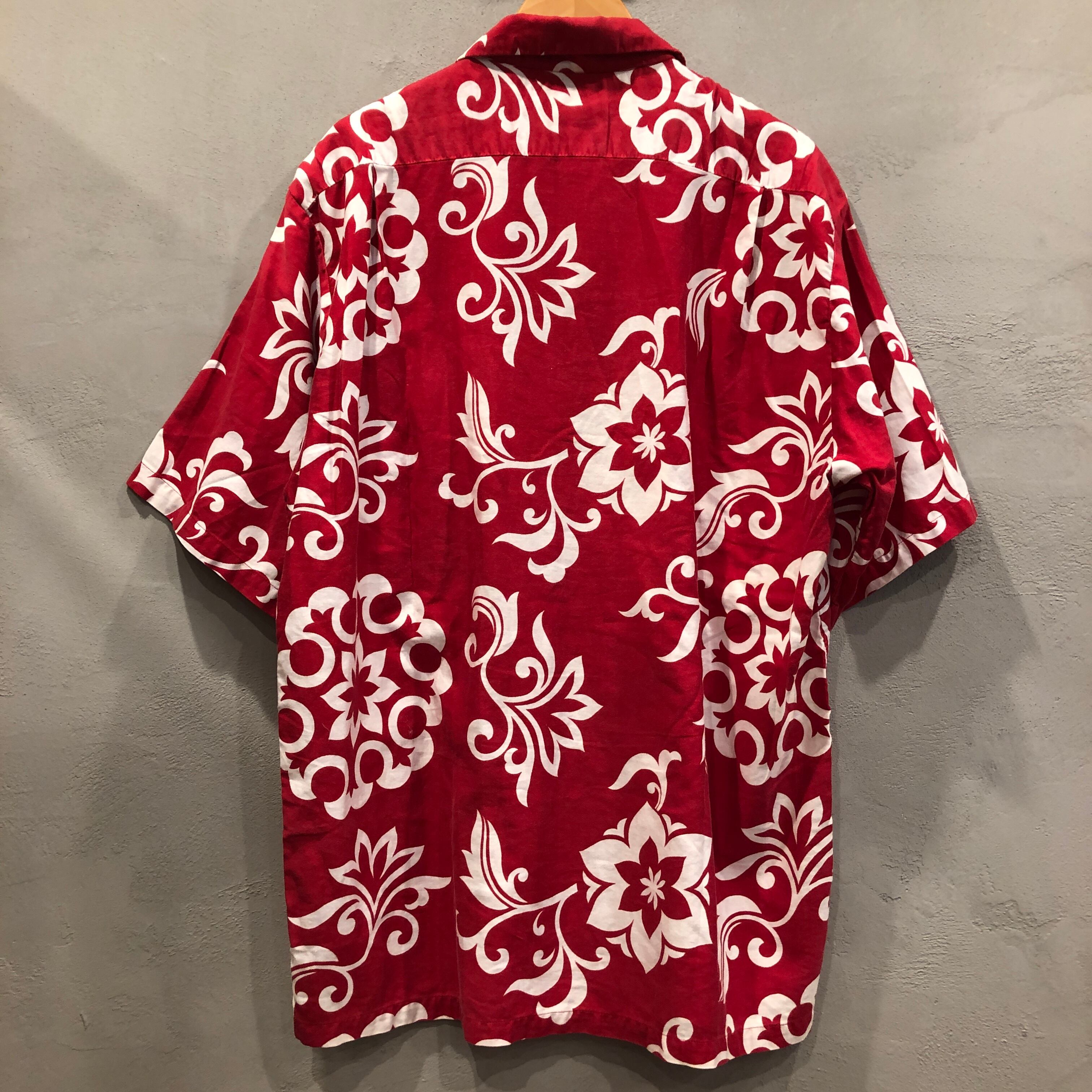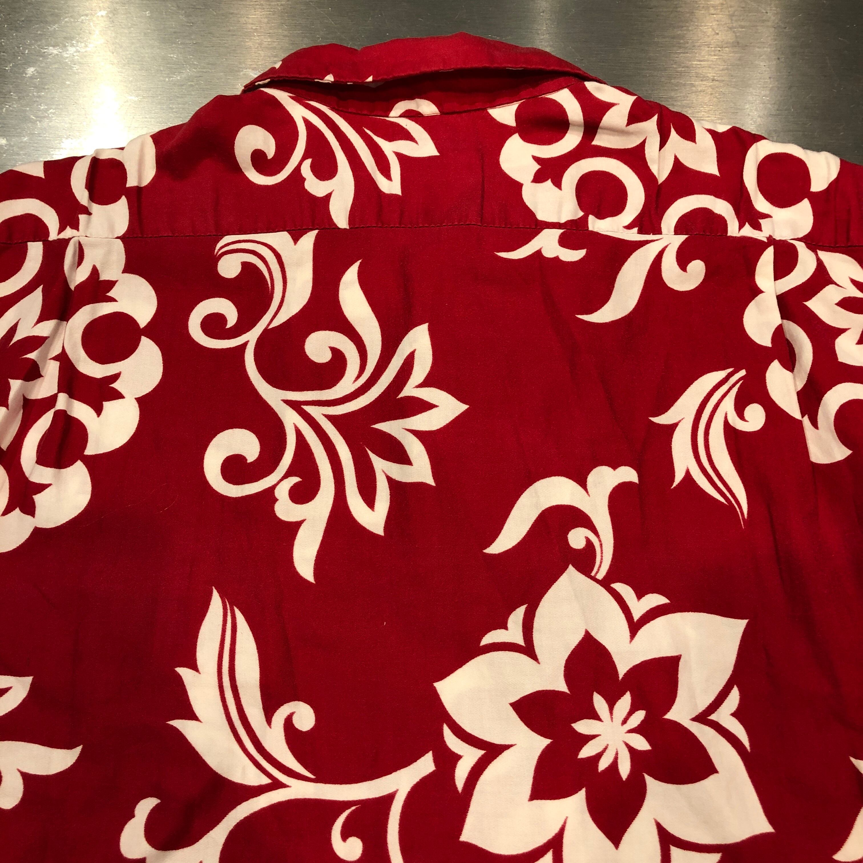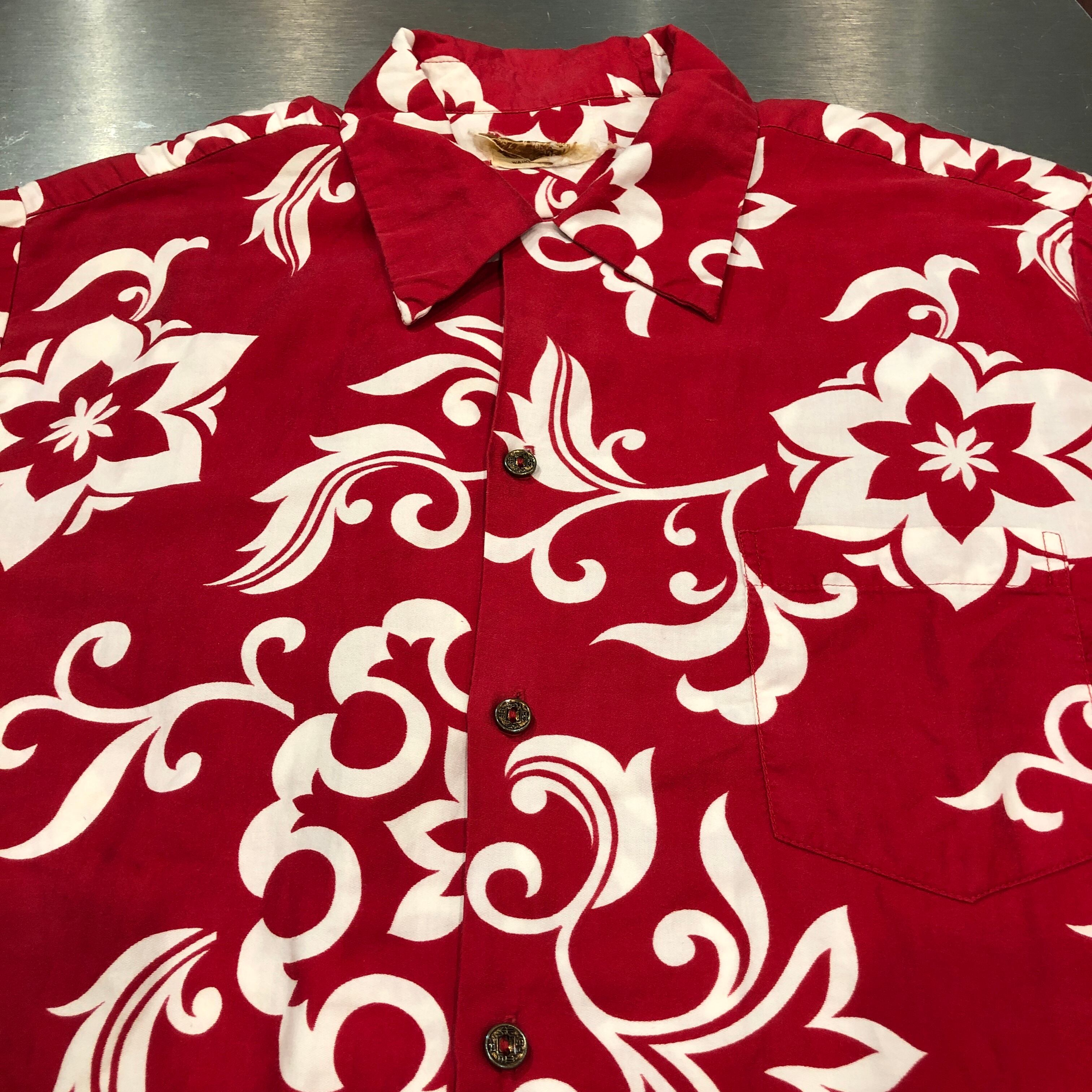 1950'S VINTAGE S/S COTTON RED 総柄 HAWAIIAN SHIRT
