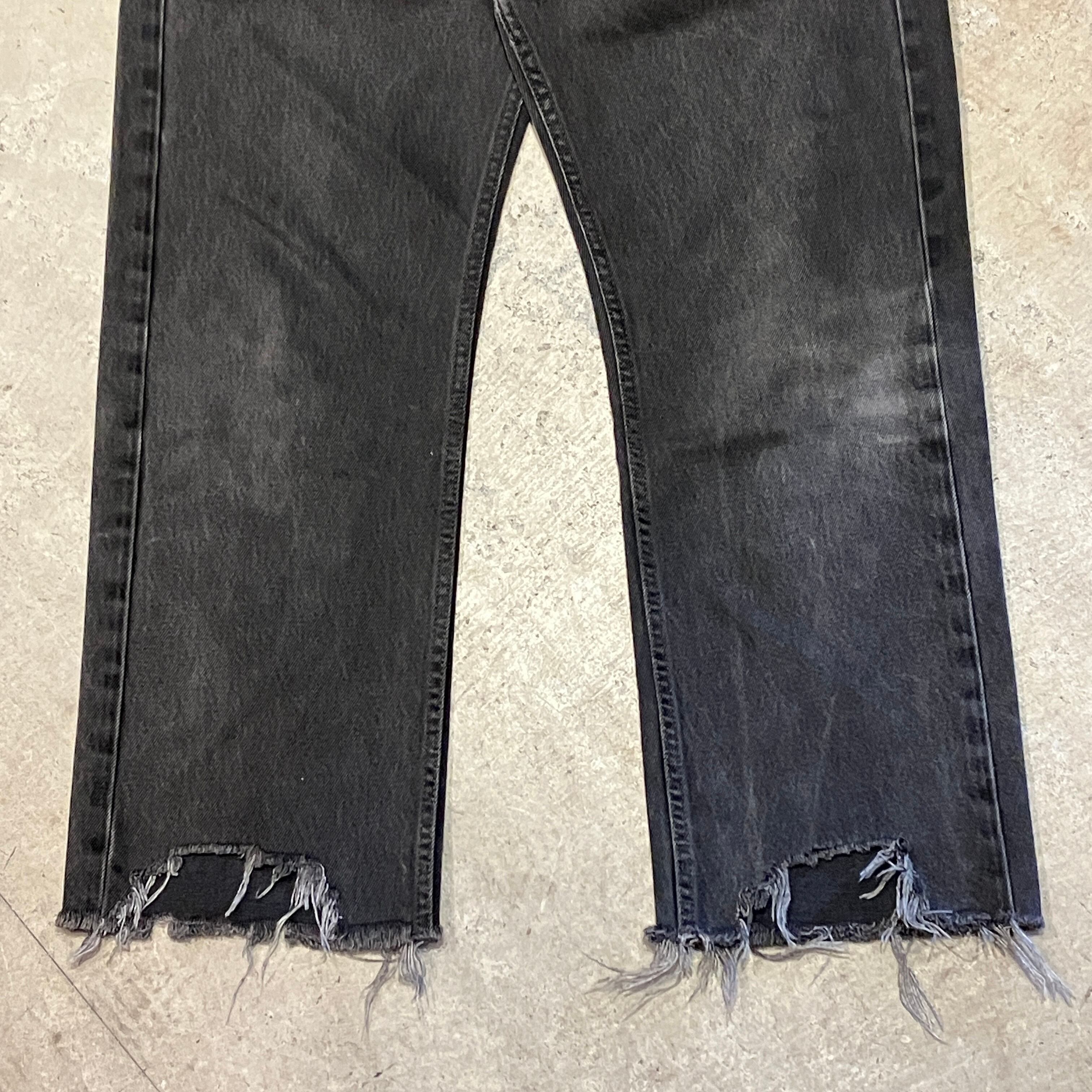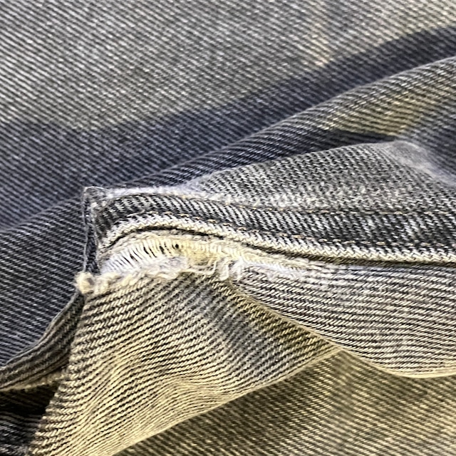 スレやダメージがあり全体的に着用感ございますが目立った汚れはなくまだまだ問題なくご着用いただける状態です。裾カットオフされています。