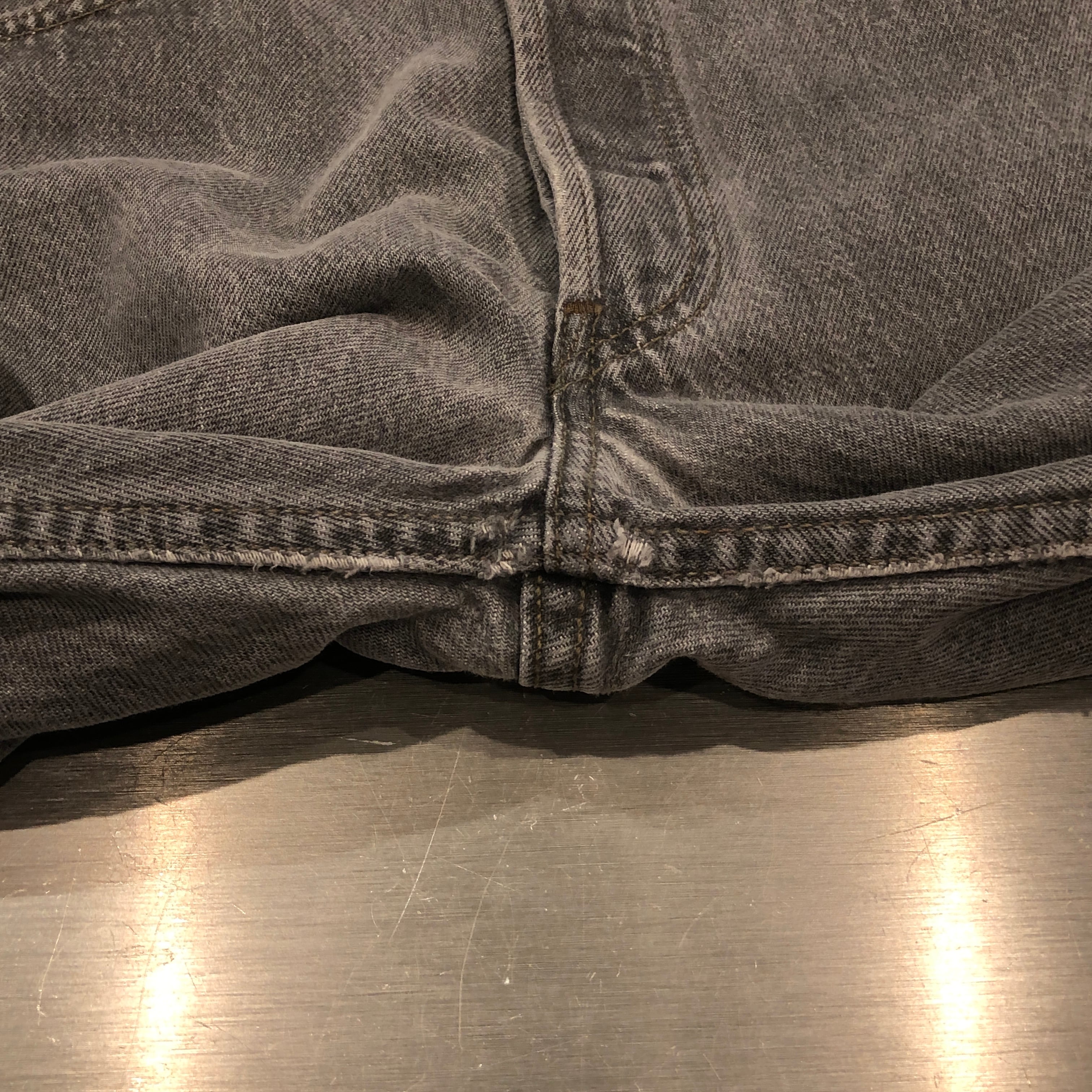 画像のように着用感に加え、ポケット口と股にダメージ、スレがございます。古着慣れされた方でしたら問題なく着用可能な状態です。