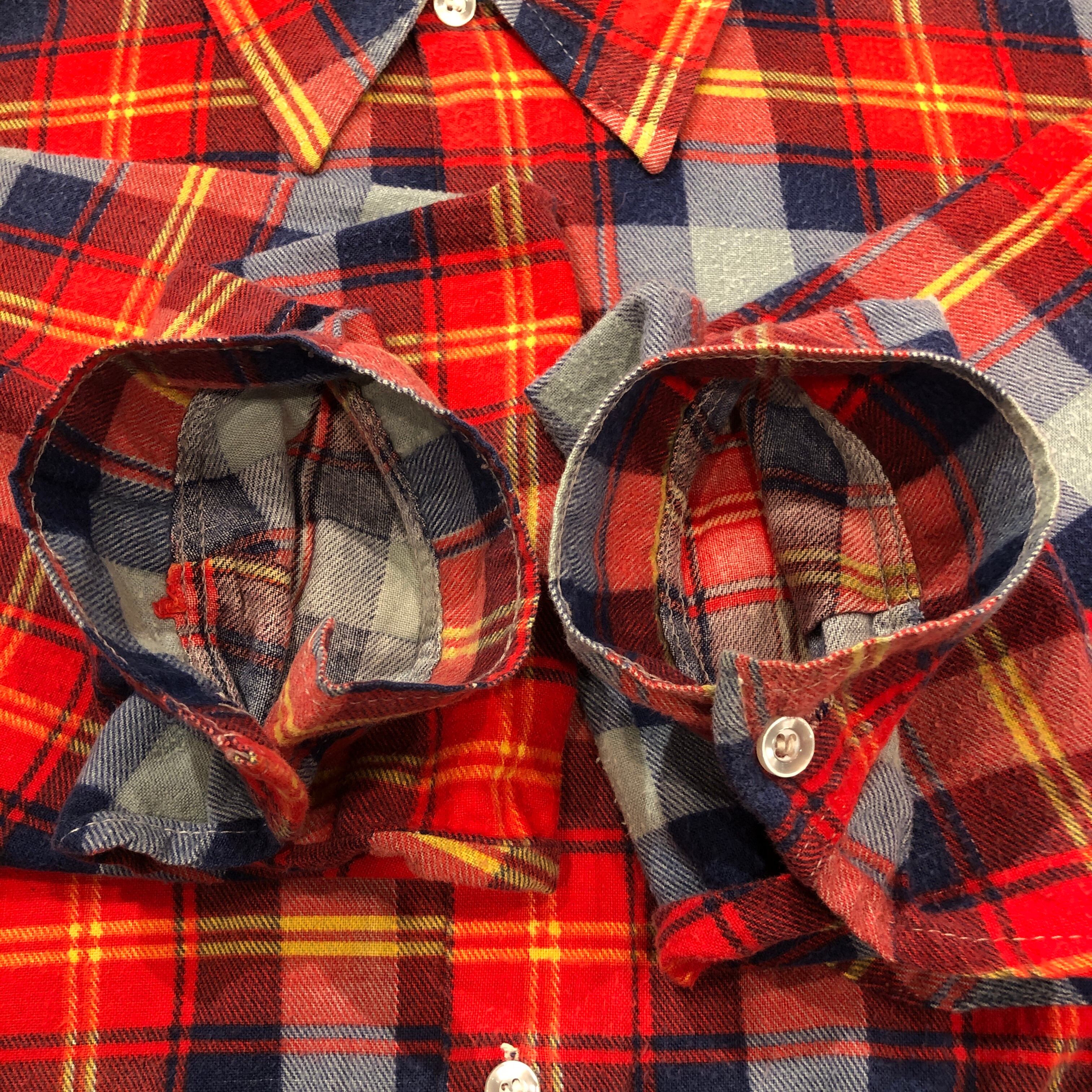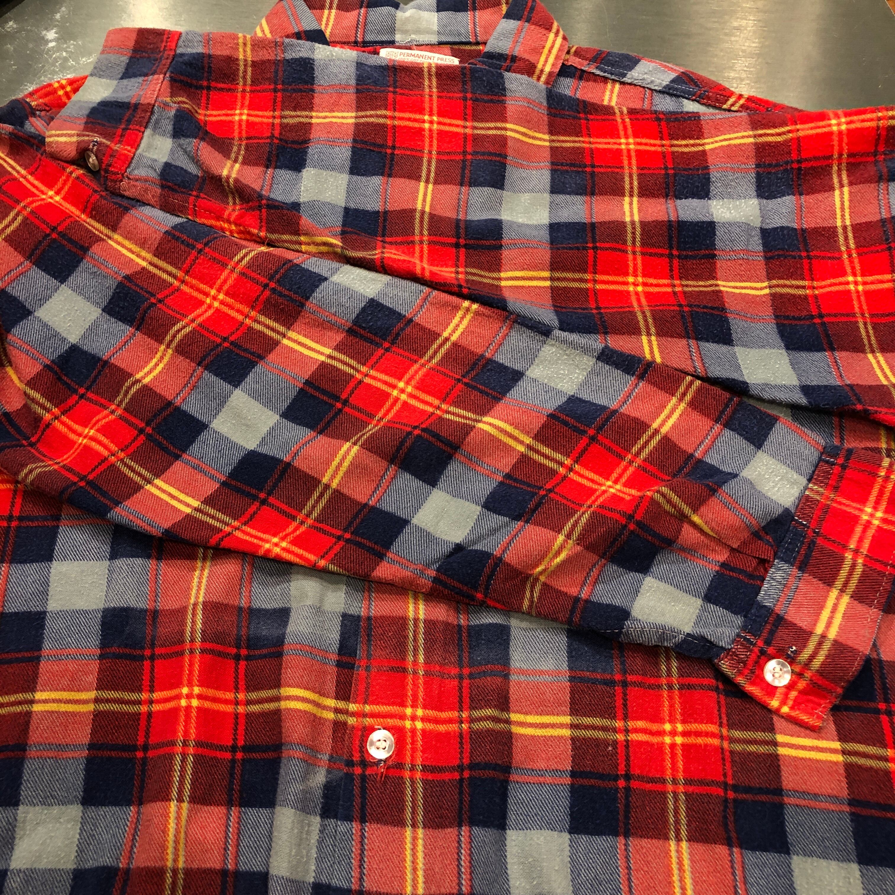 1970'S OLD PARMANENT PRESS FLANNEL CHECK SHIRT