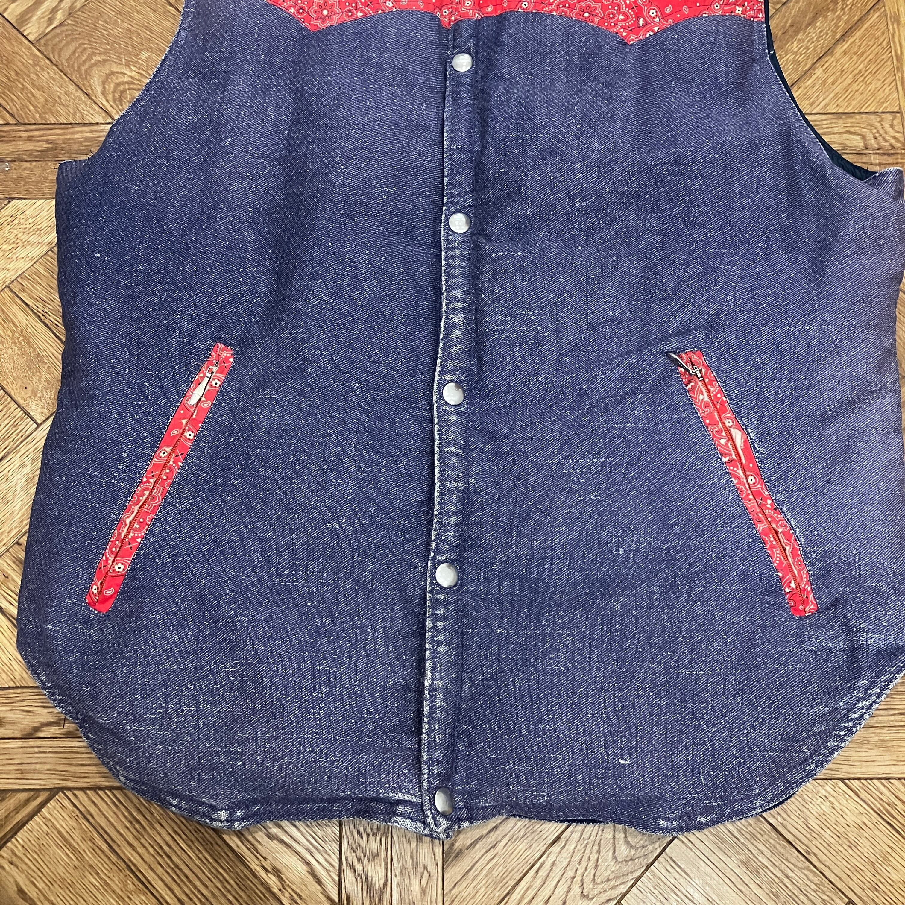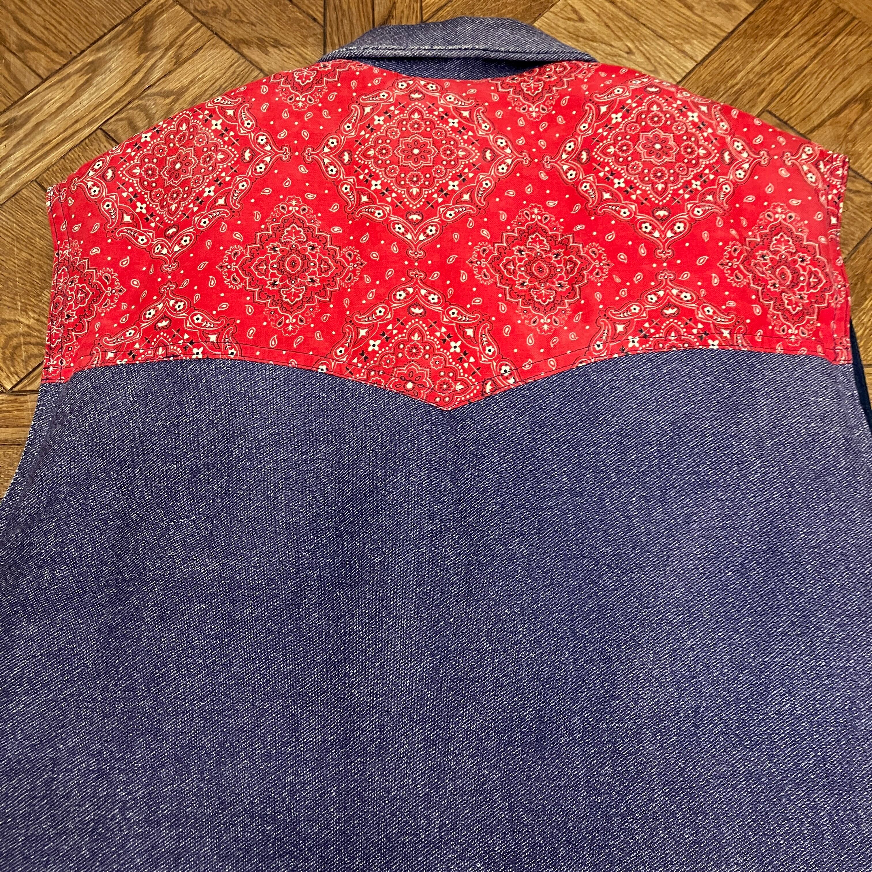 1970'S OLD DENIM×BANDANA WESTERN DOWN VEST