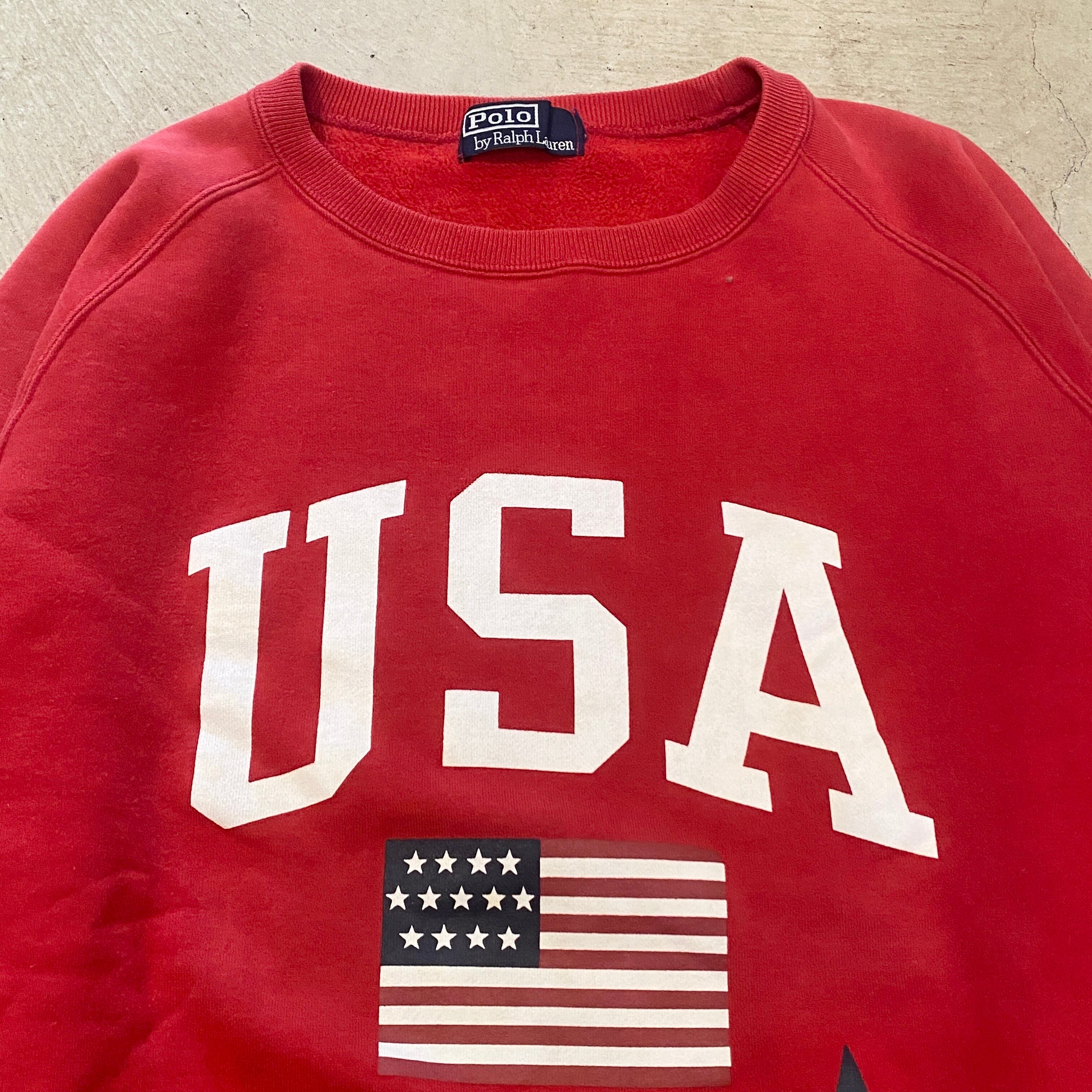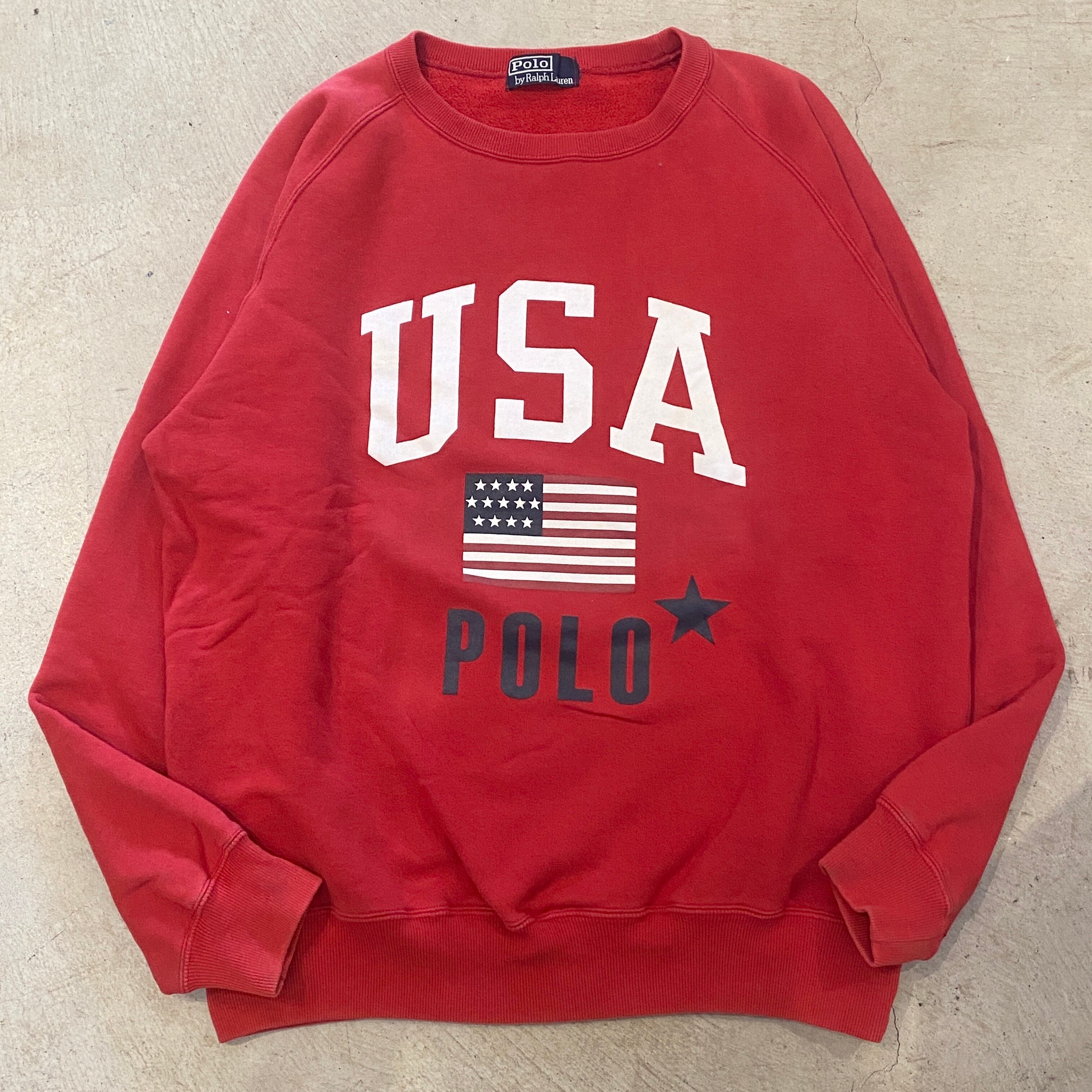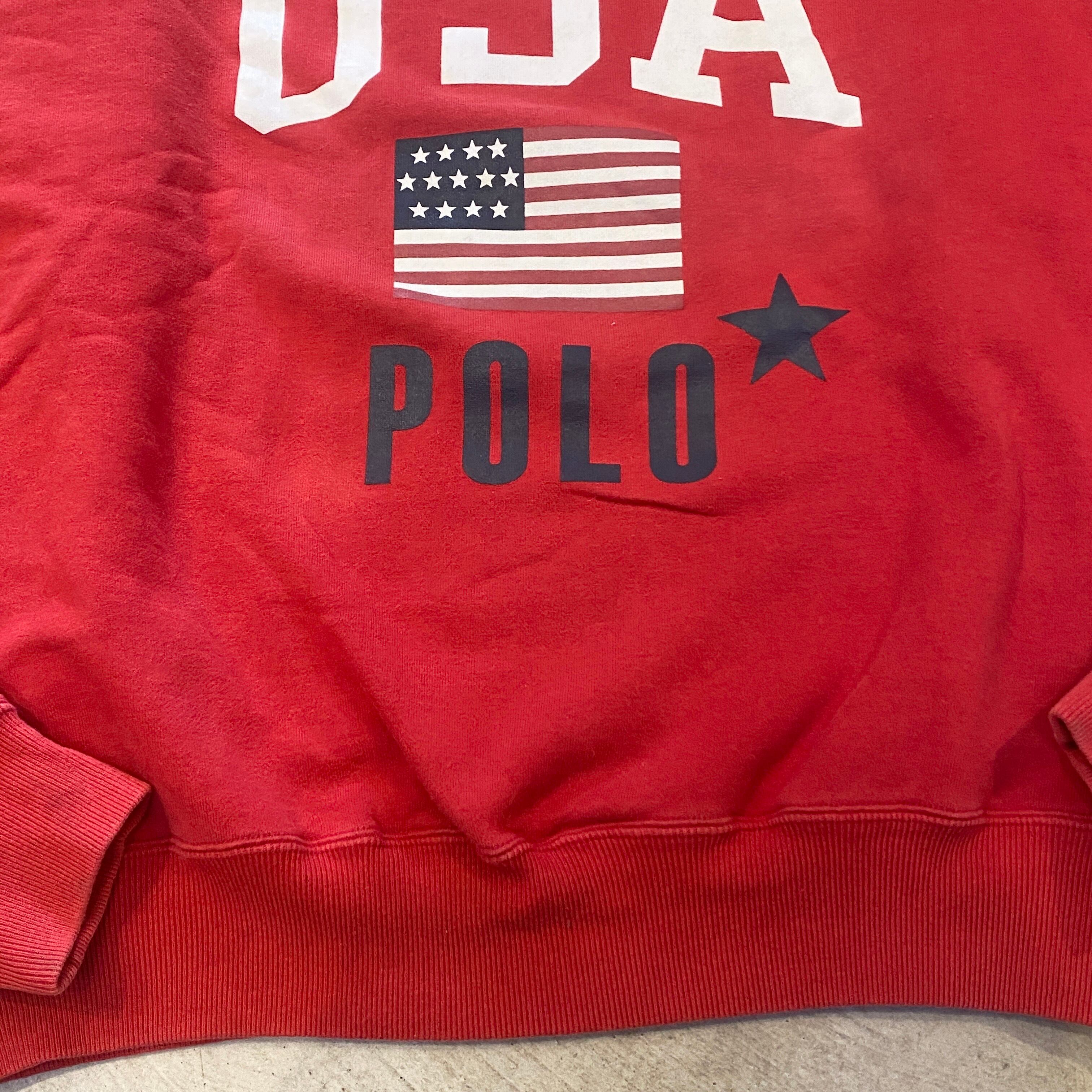 1990s RALPH LAUREN SWEAT SHIRT RED "STAR&BARS"