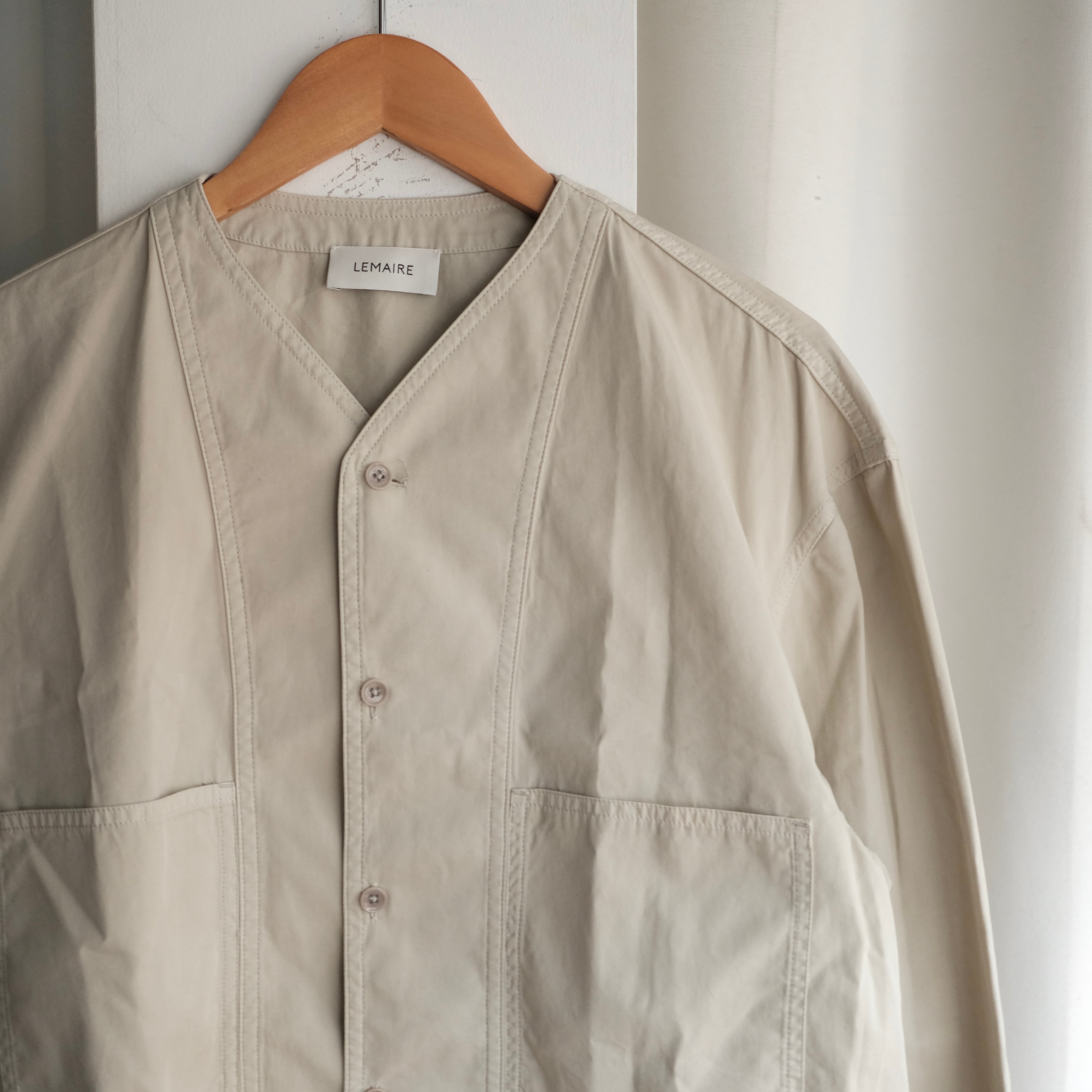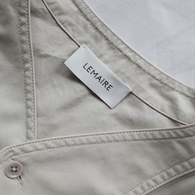無骨なワークアイテムでもルメールのフィルターを通すととてもミニマルな雰囲気に仕上がります。特にワードローブということをこだわるだけに、気兼ねなく着用出来る仕上がりになっております。一枚で様になるシャツをお探しの方に是非。