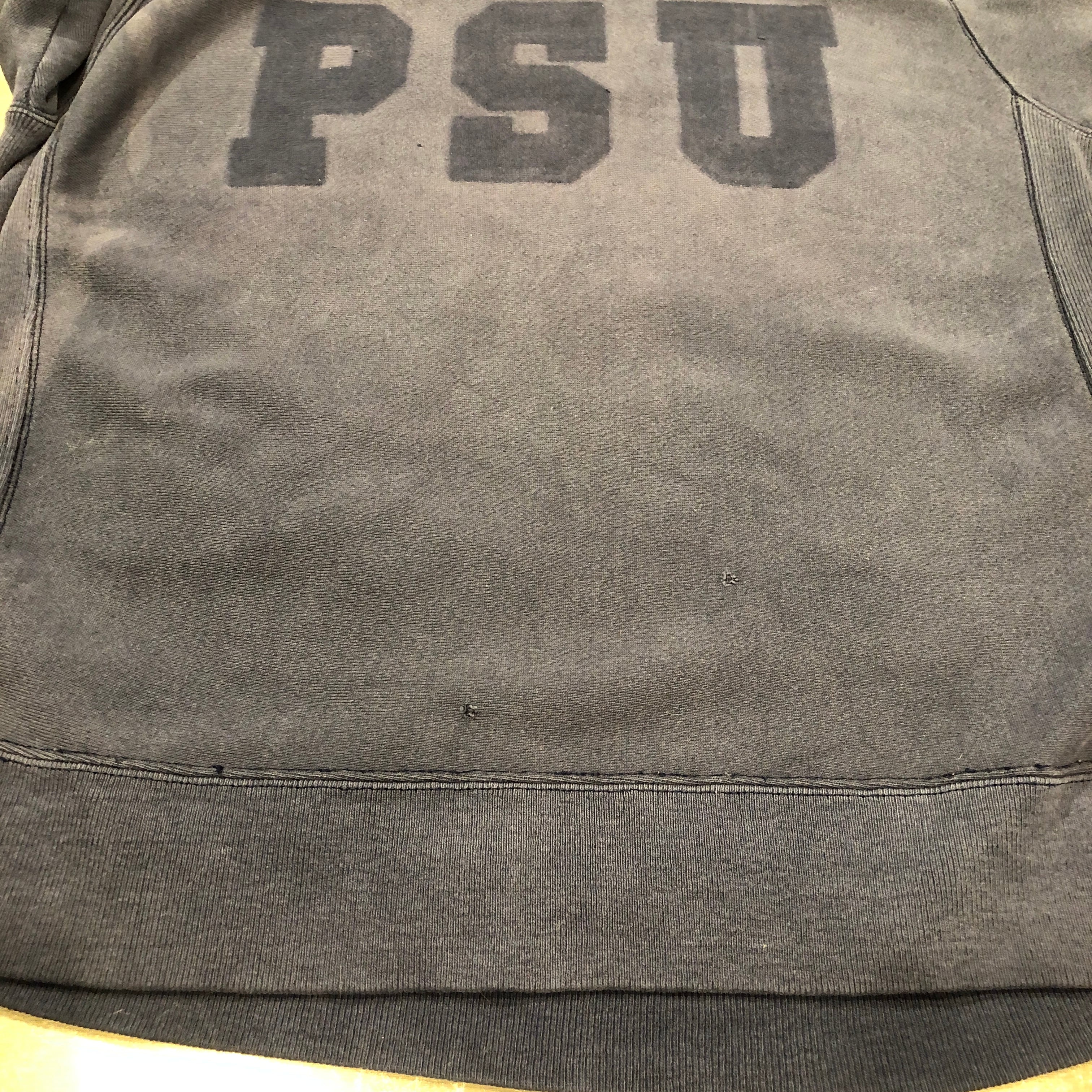 画像のように毛羽立ちや毛玉、ほつれ、ダメージ、全体的に褪色、背面下部の退色等の着用感ございますが、古着慣れされた方でしたら問題なく着用可能な状態です。