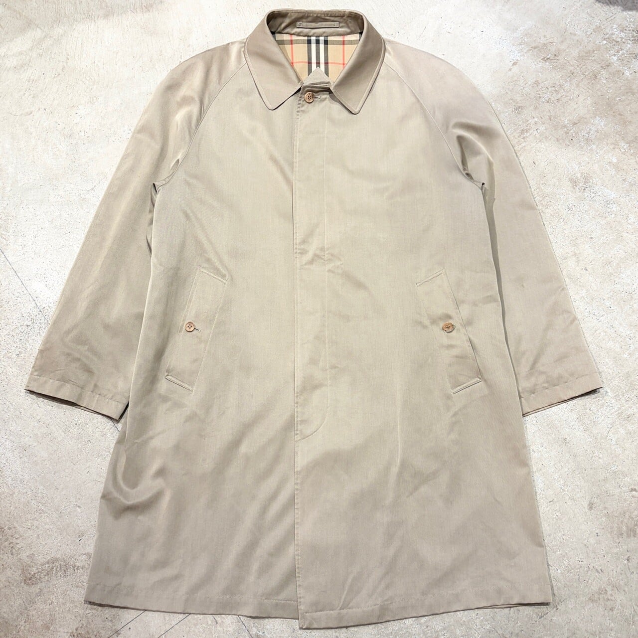 通常のバーバリーのコートと比較しますと光沢、トロミのある生地感!