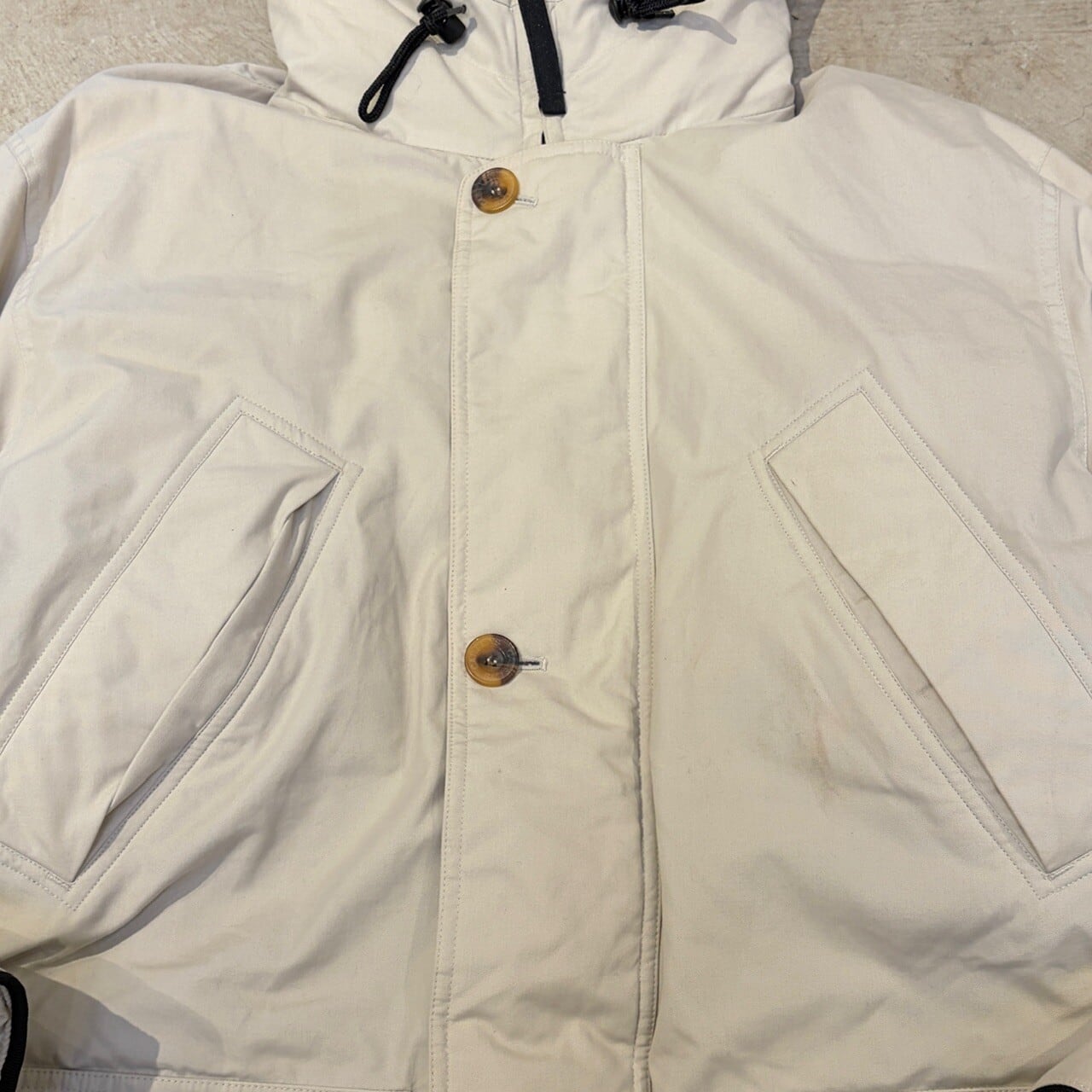 一部薄汚れ、スレ感、フードファー欠損など細かな着用感がございますが、まだまだ問題なく着用可能な状態です。