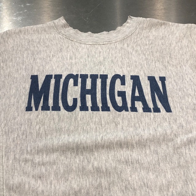 ⊕1980s CHAMPION REVERSE WEAVE MICHIGAN 染み込みプリント