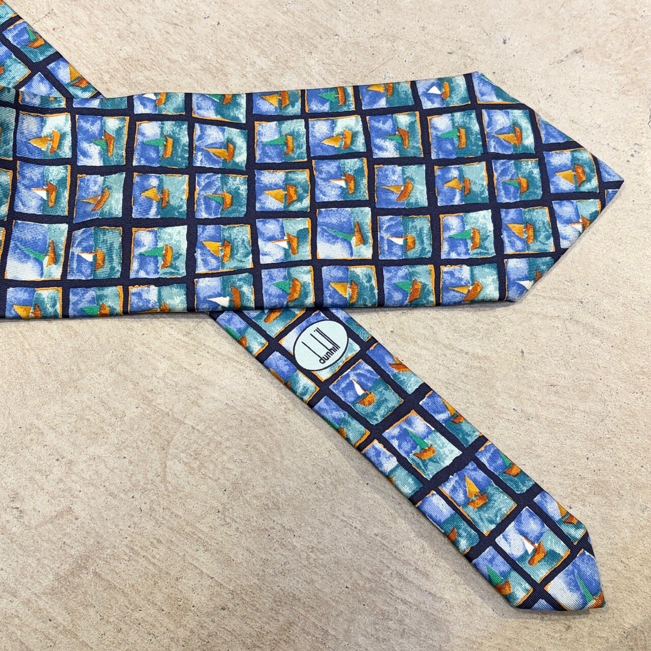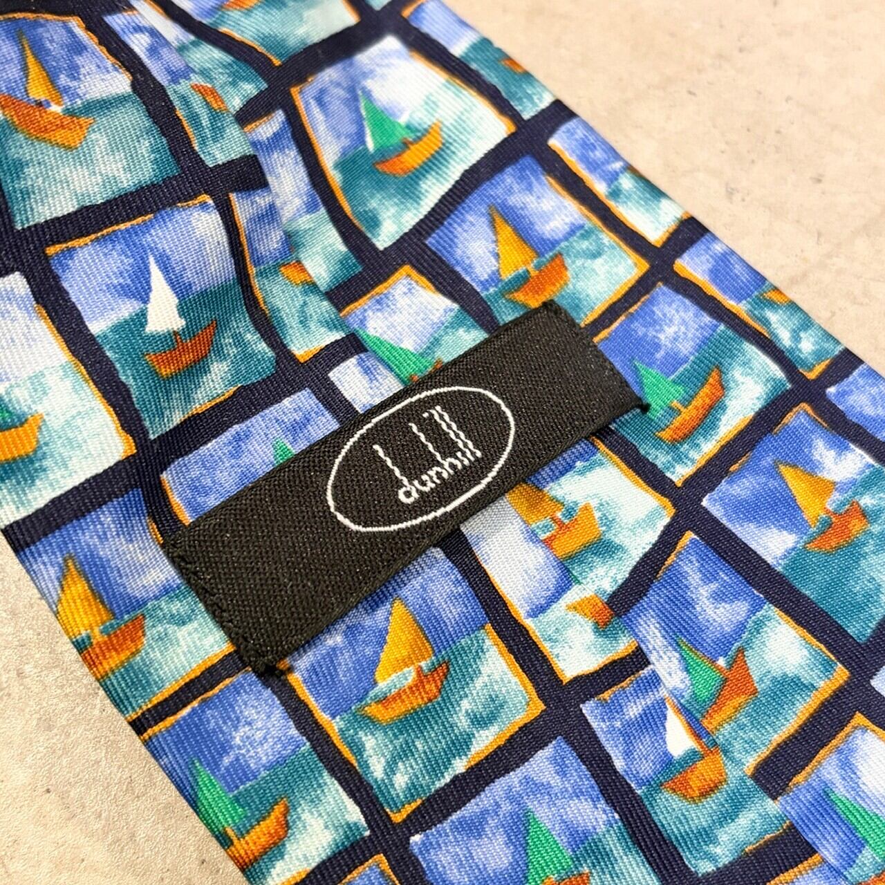 DUNHILL SILK TIE YACHT PATTERN ITALY ①