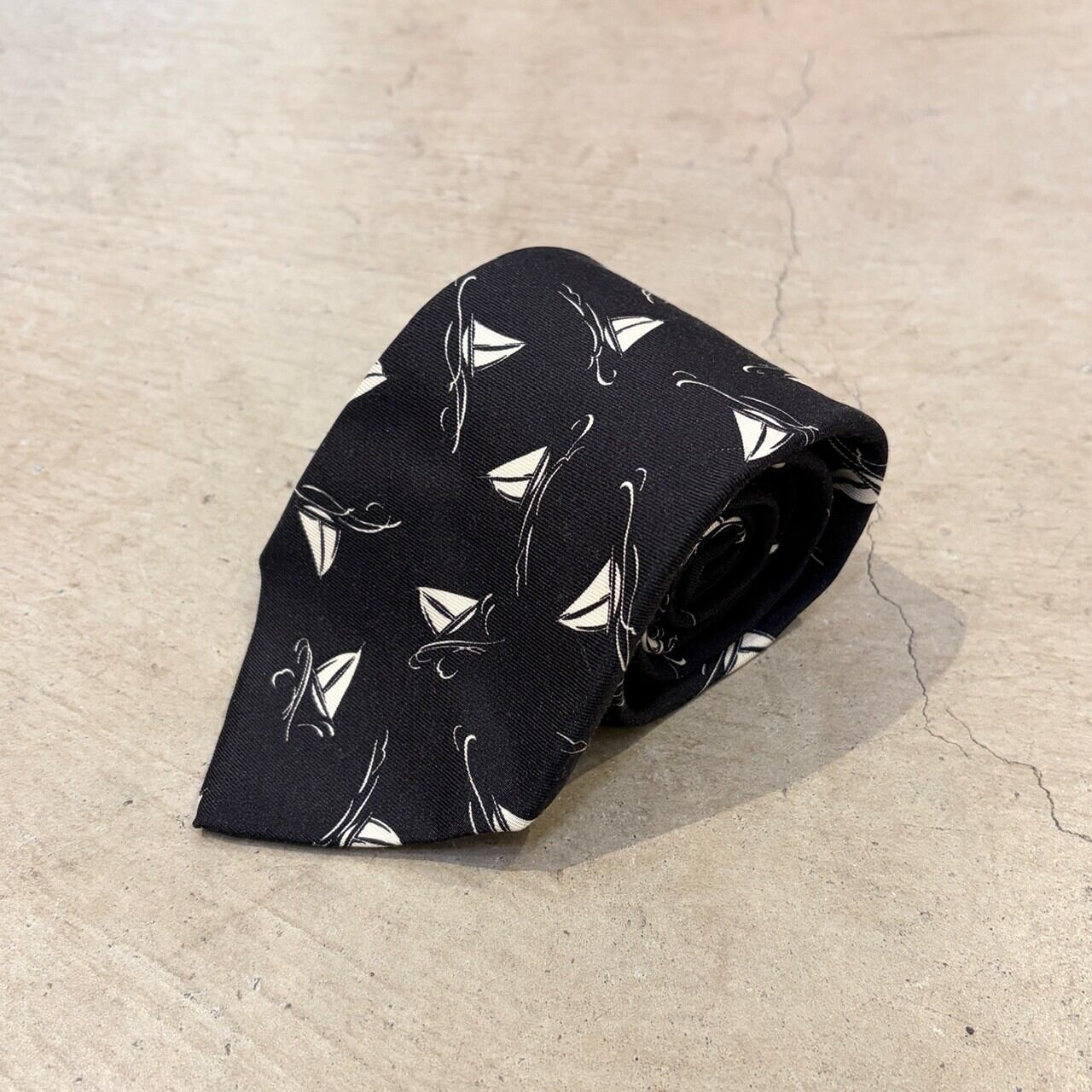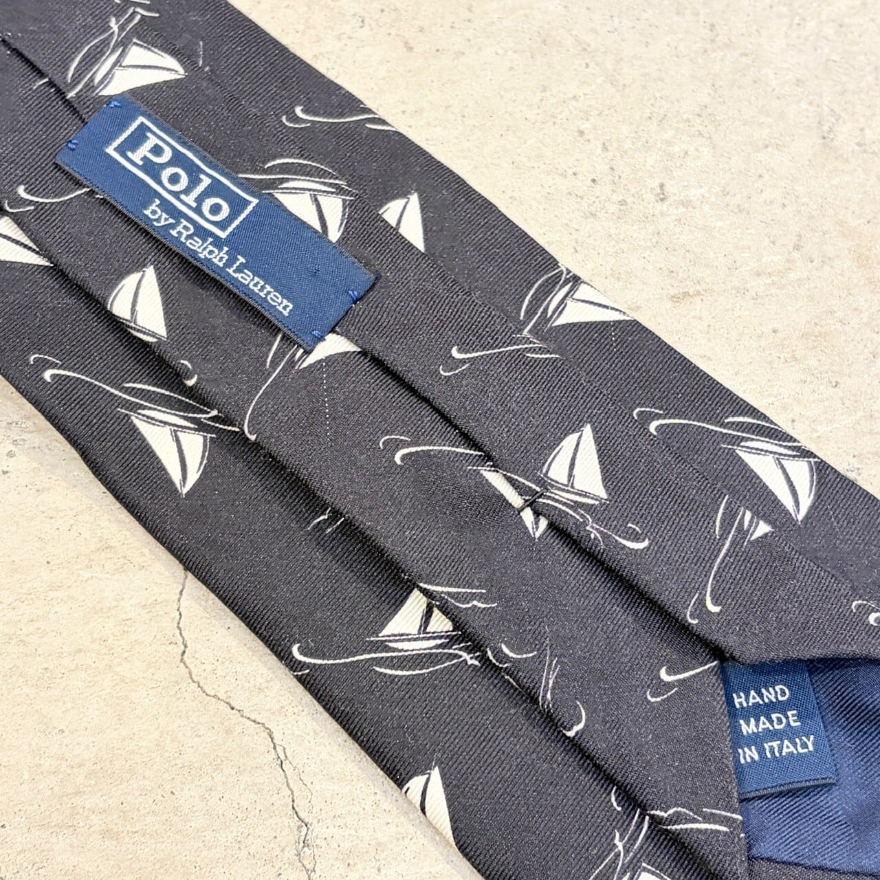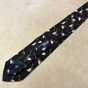 RALPH LAUREN SILK TIE YACHT PATTERN BLACK ITALY