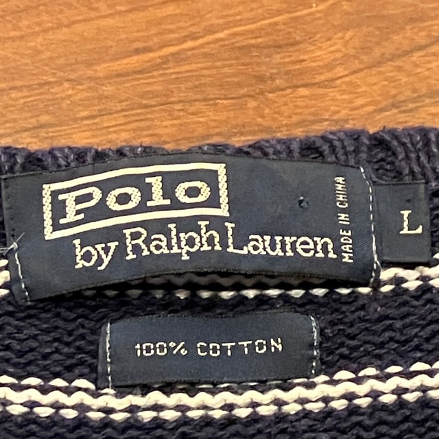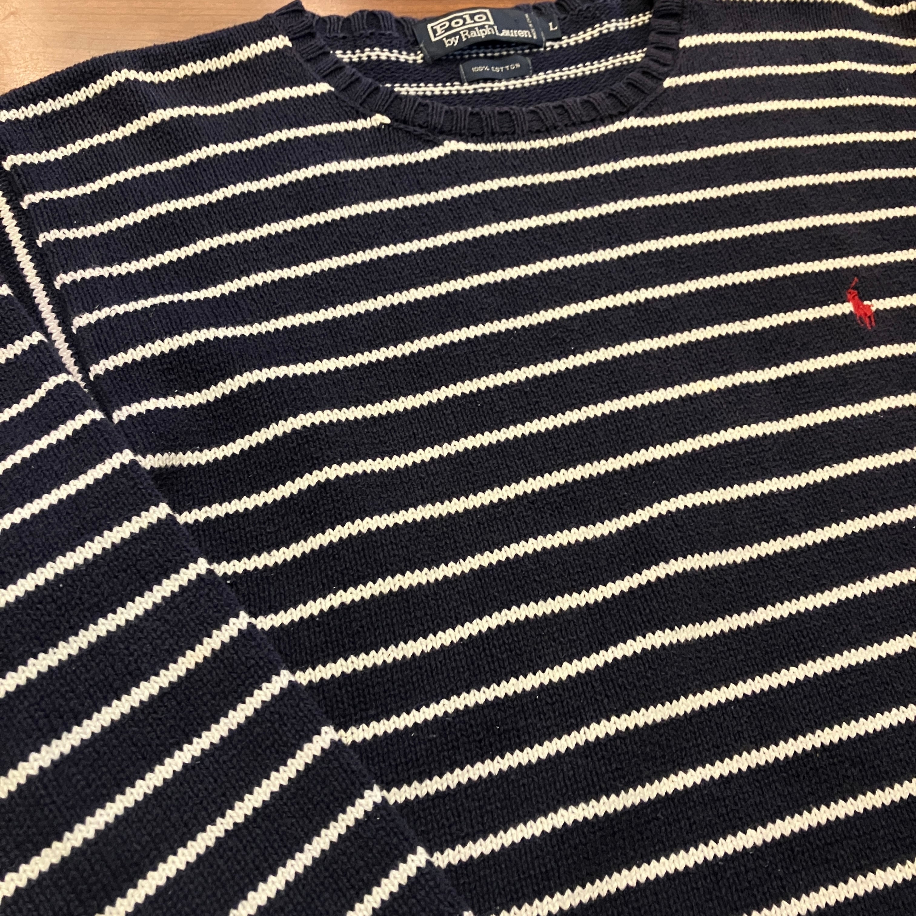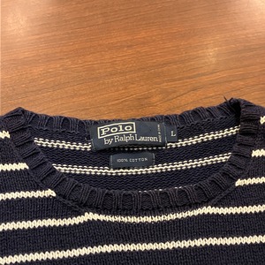 RALPH LAUREN BORDER COTTON SWEATER NAVY