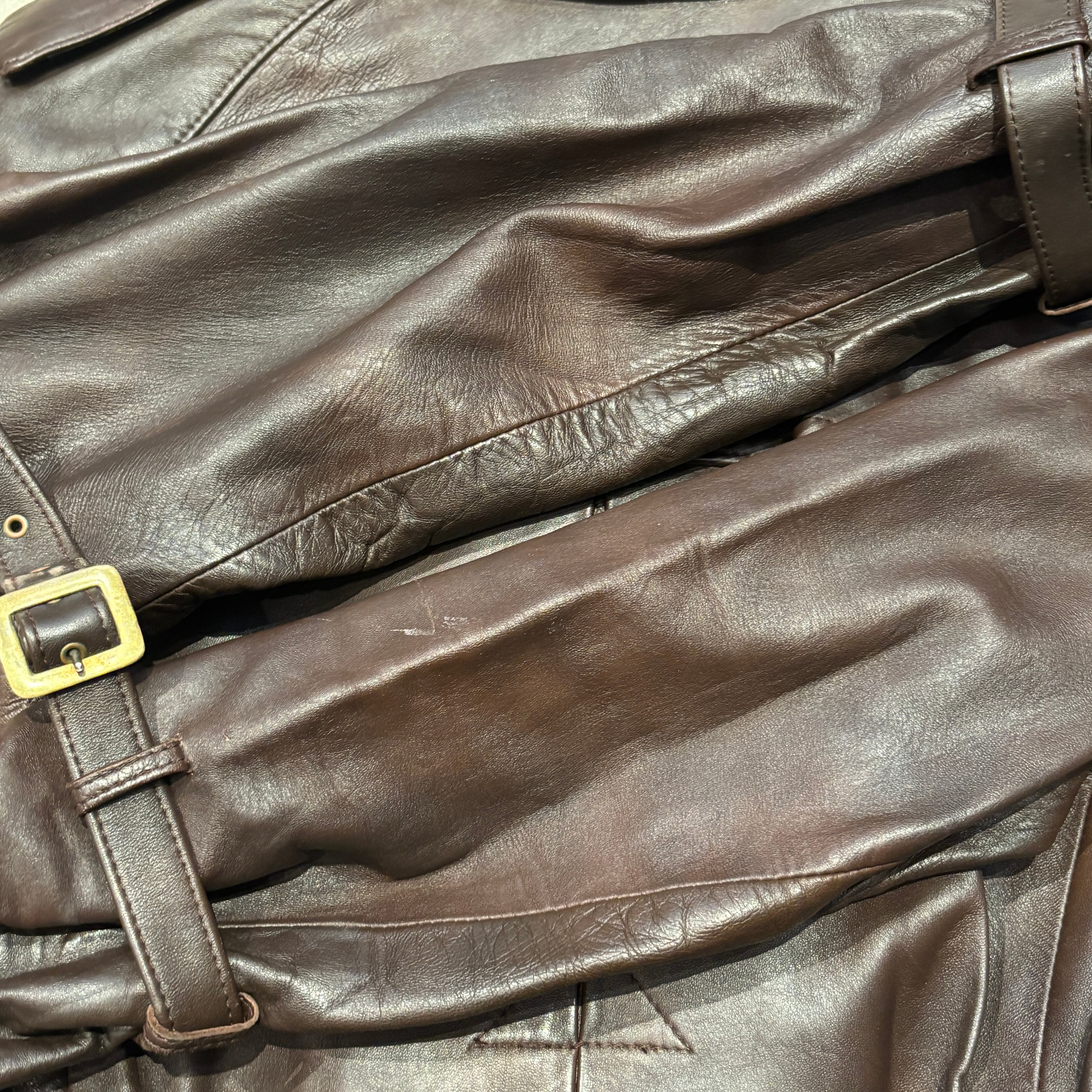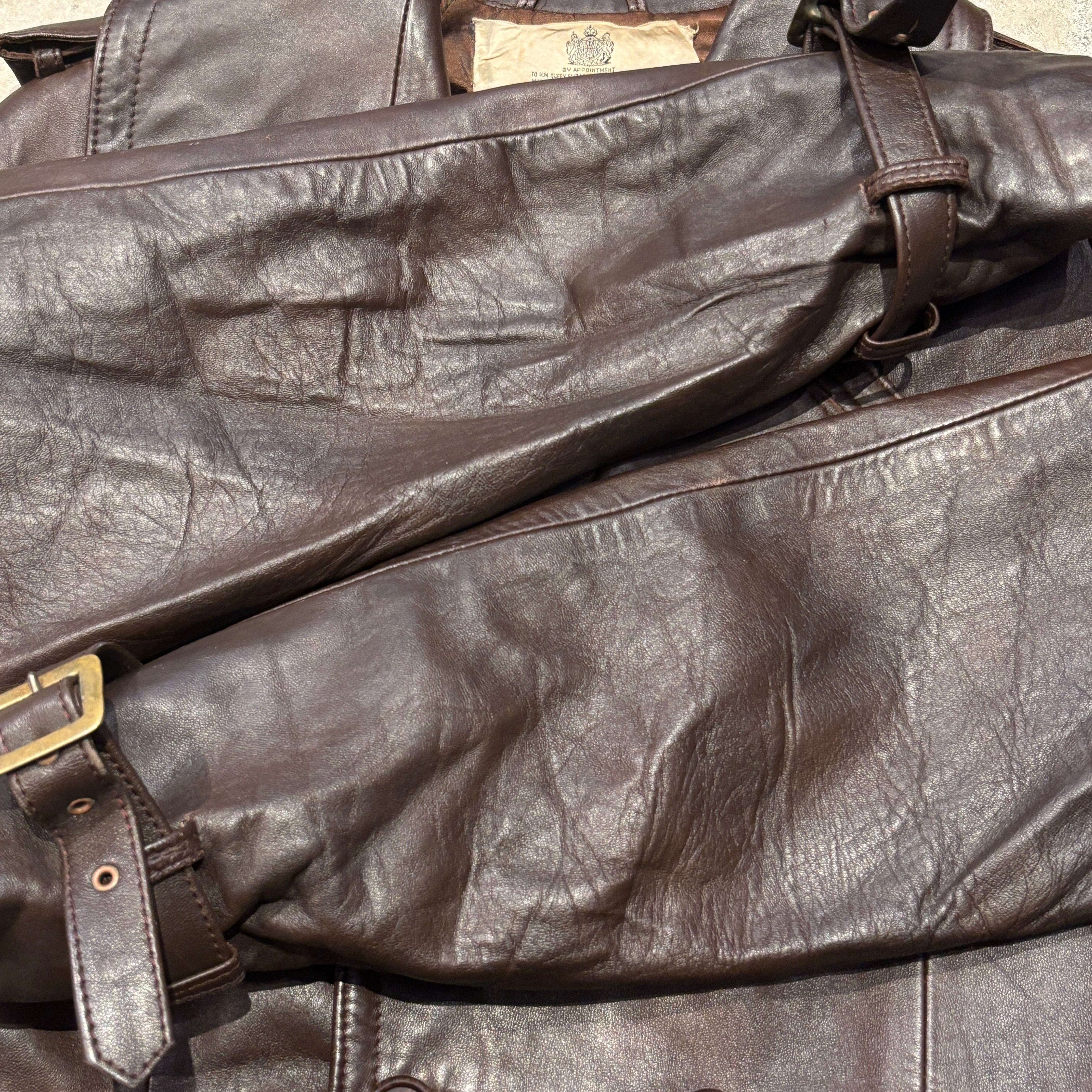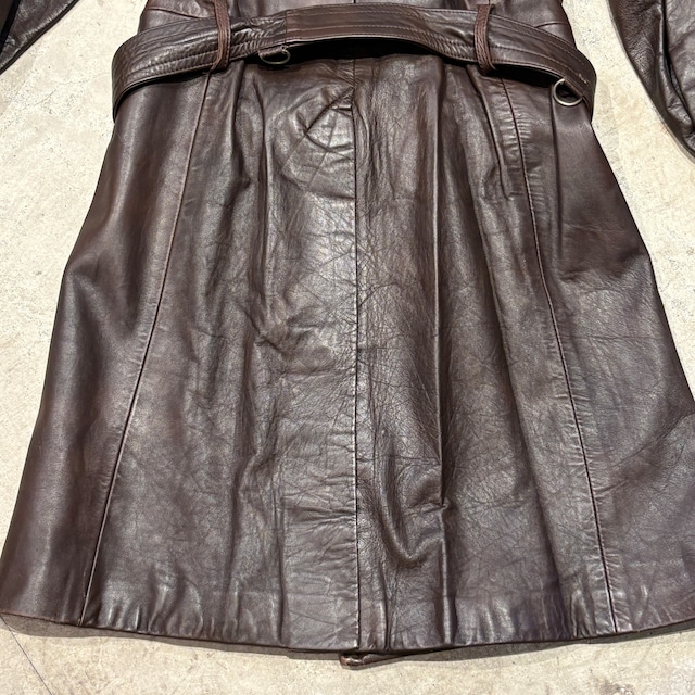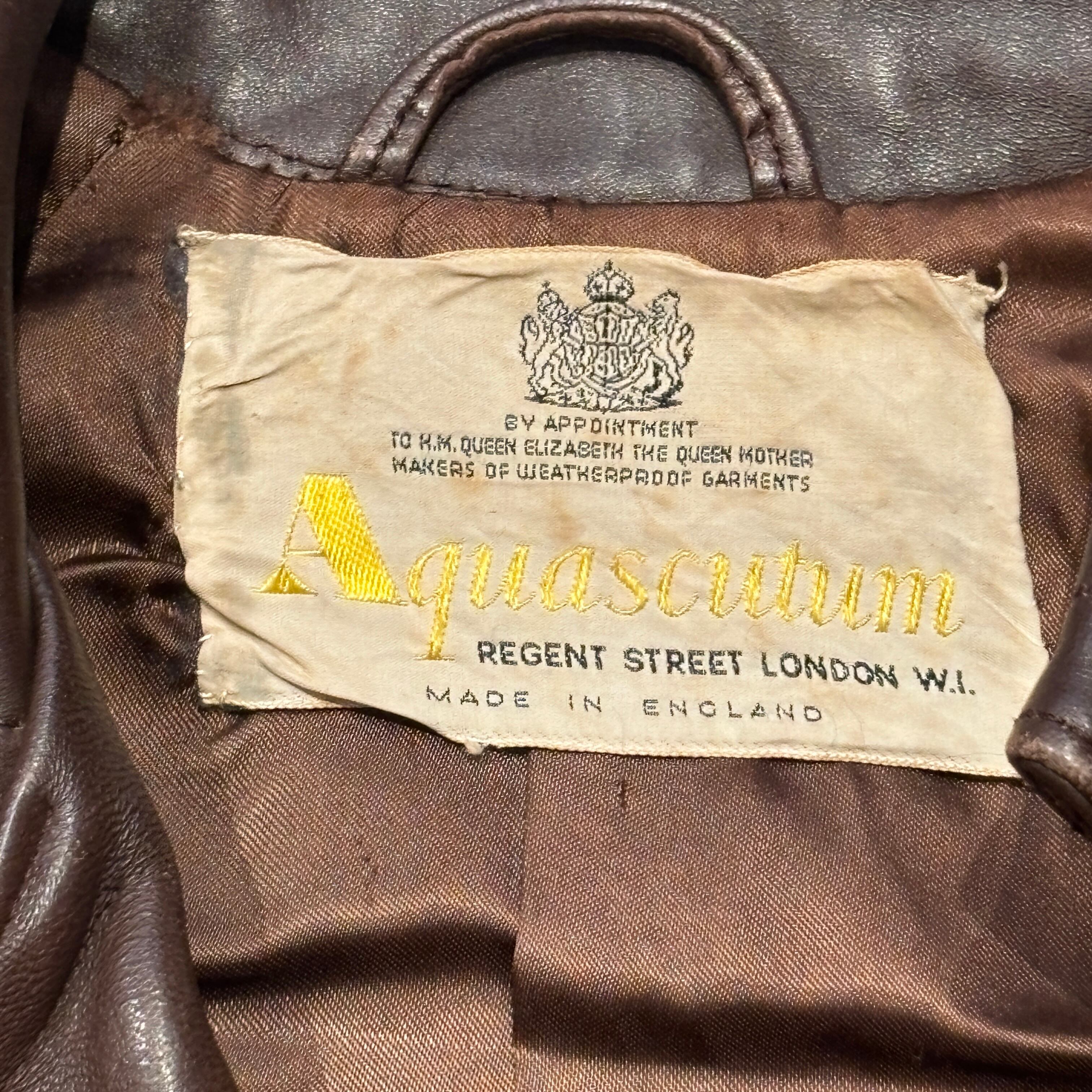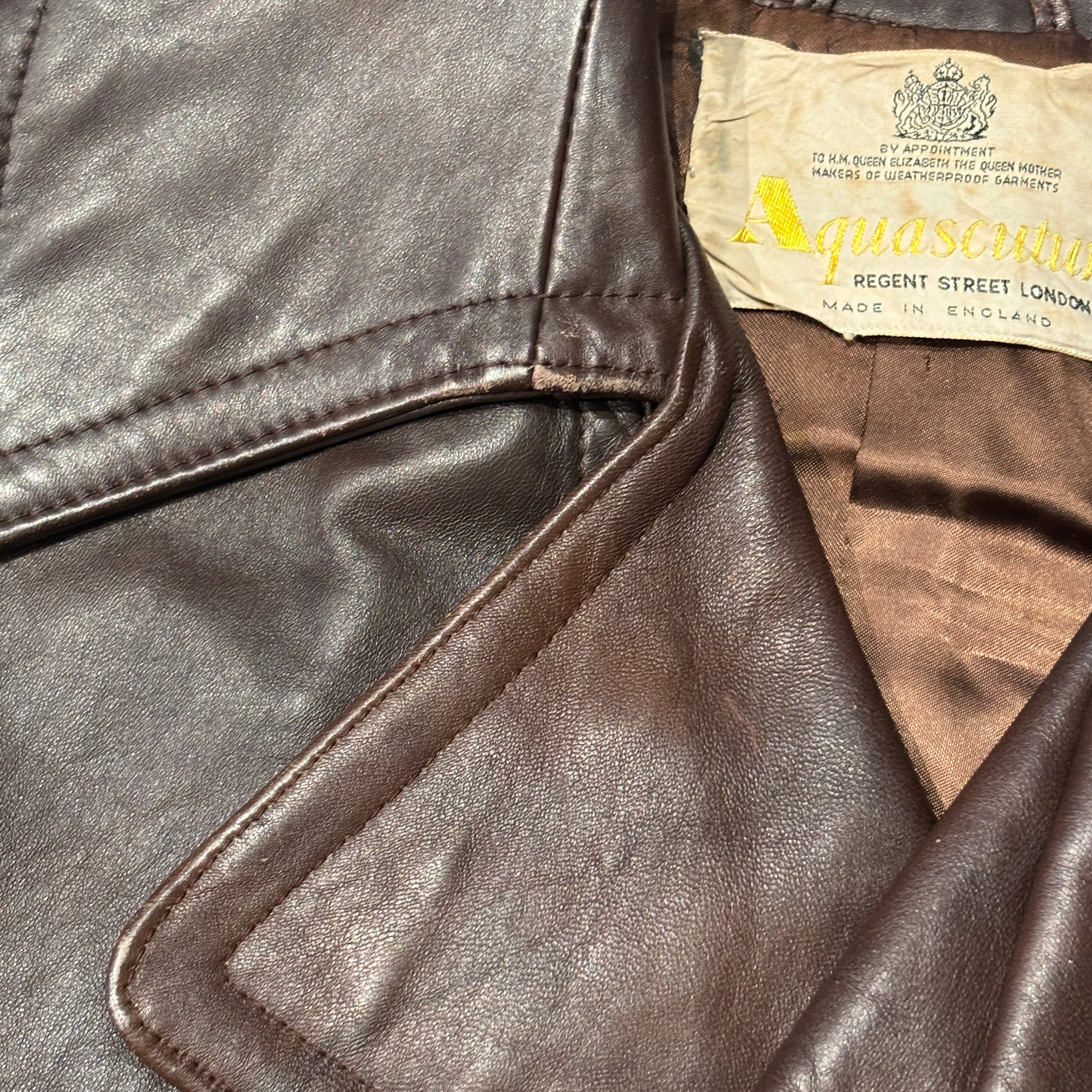 AQUSCUTUM LEATHER COAT BROWN ENGLAND OLD MODEL