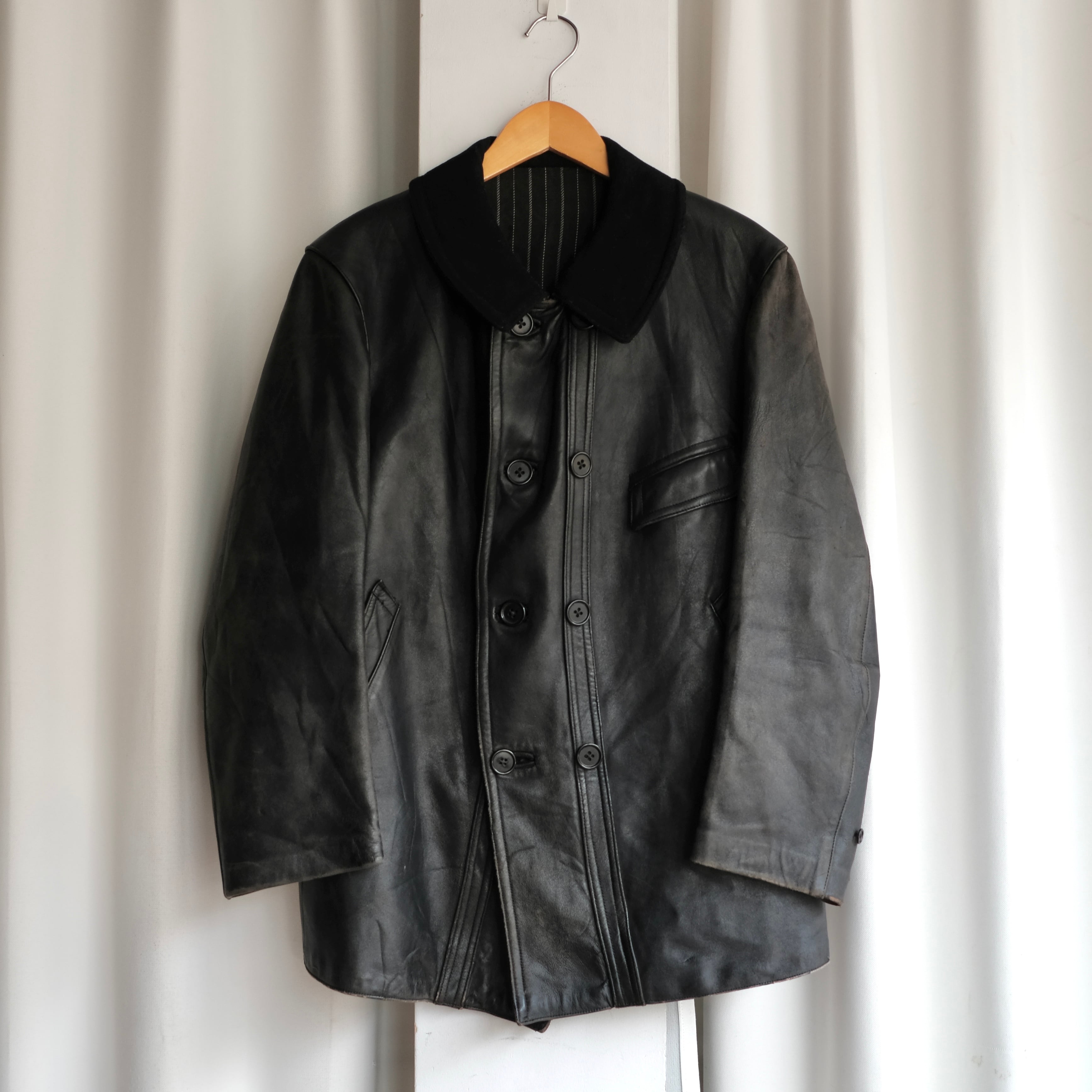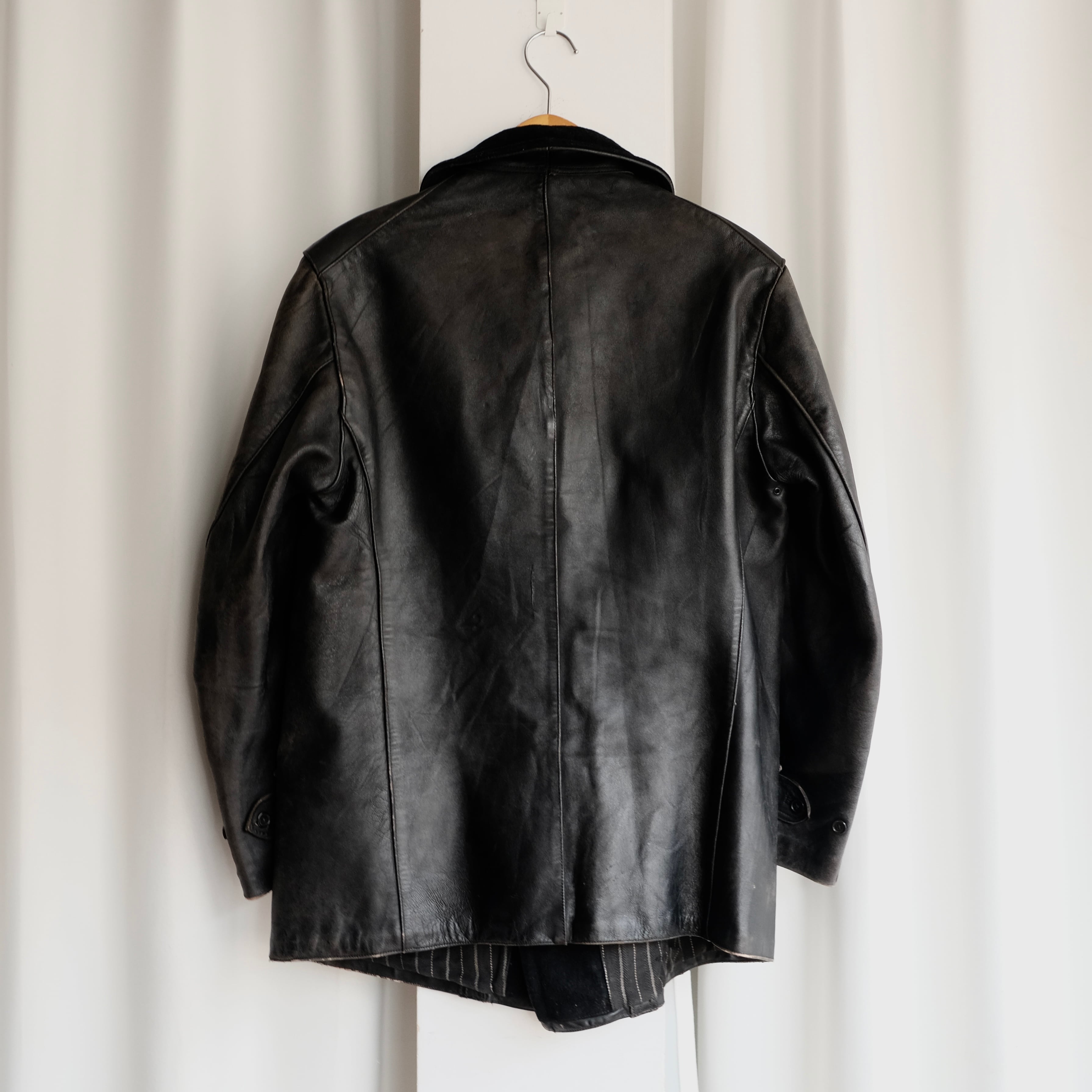 50s FRENCH VINTAGE "ウール襟/刺繍タグ/希少ライニング" CORBUSIER LEATHER JACKET