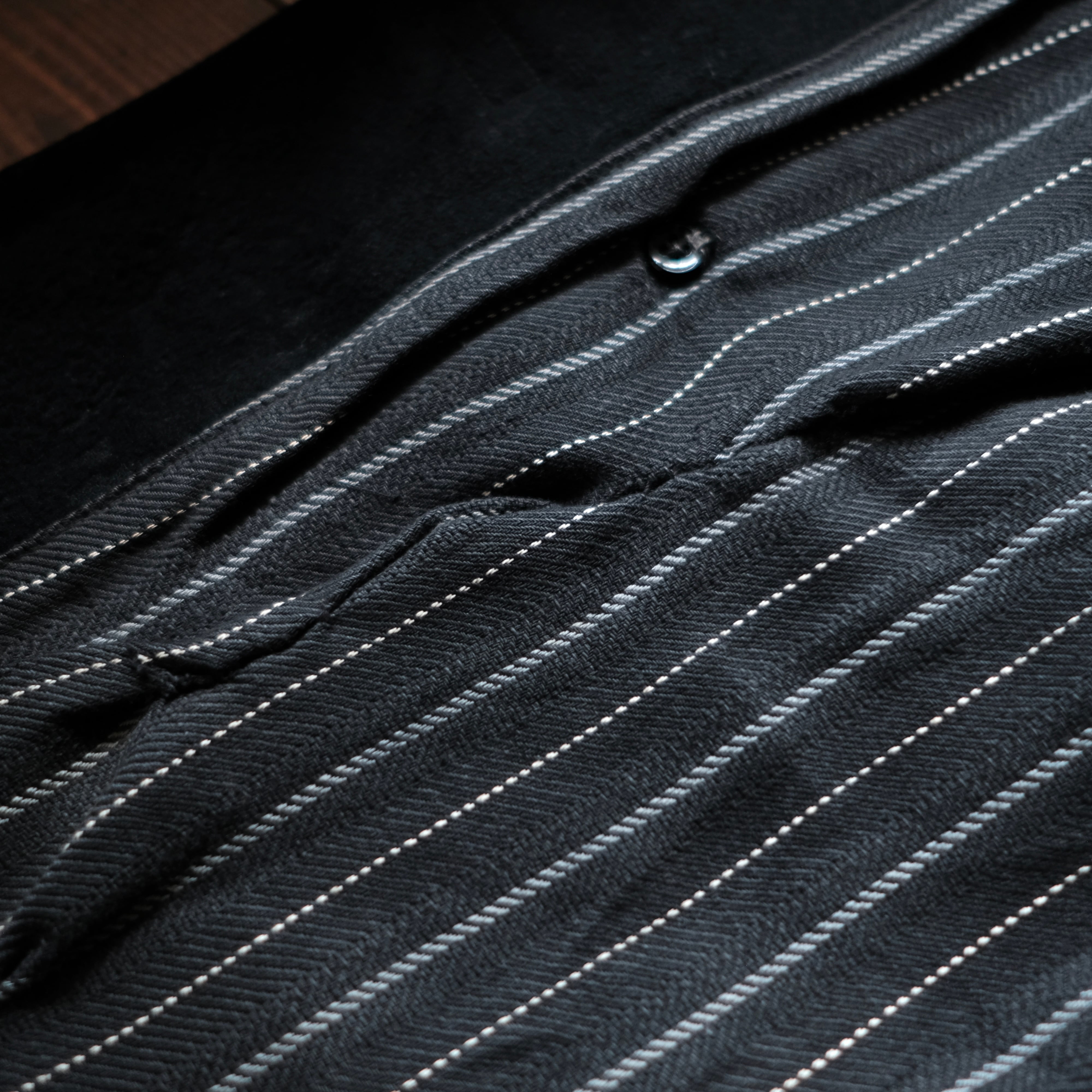 大きめのラウンドしたウール襟、チェックのライニングの個体が多いですが、こちらはツイルのストライプのライニングでシルエットは抜群。