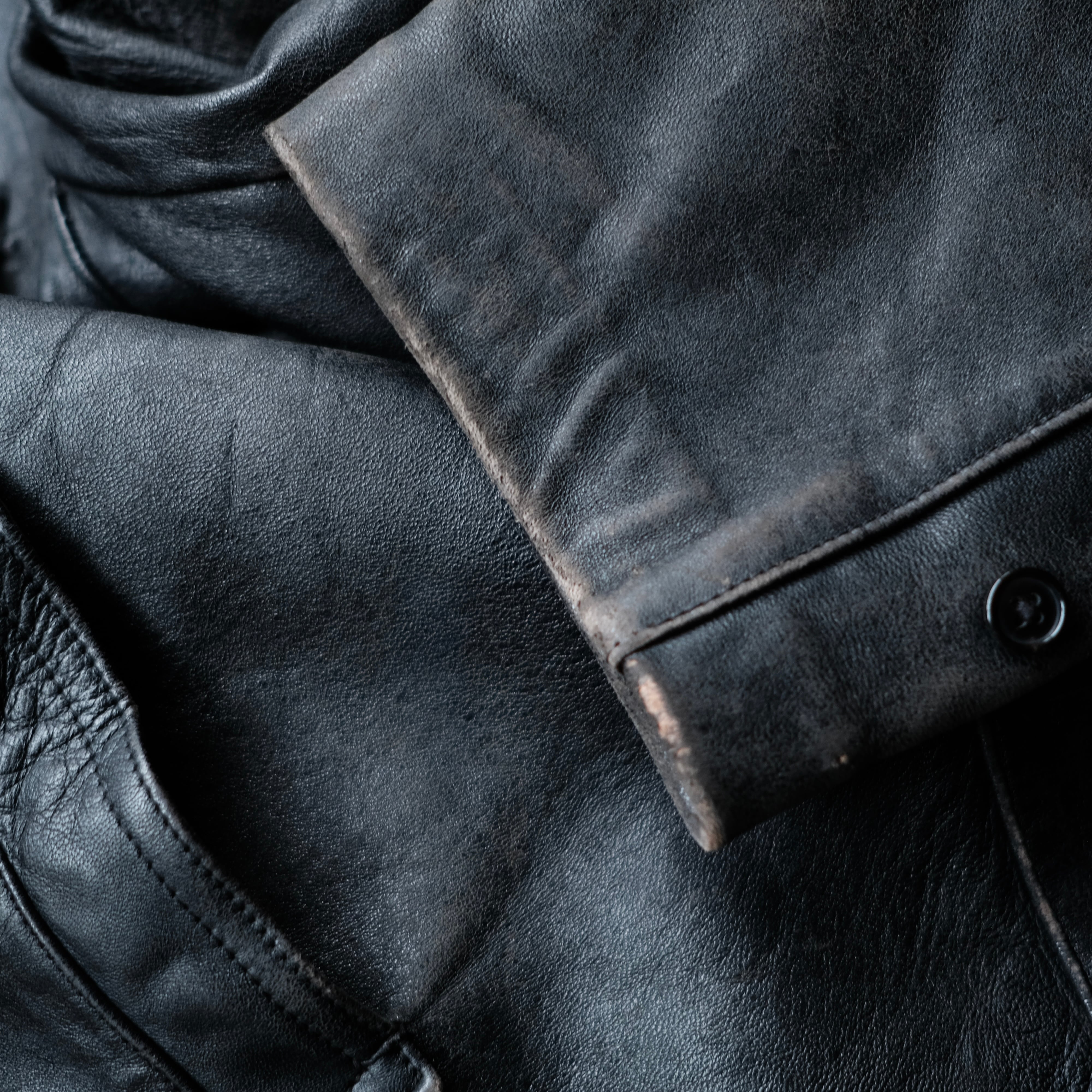 袖のレザー特有の擦れ、裏地の裾付近に画像のようなステッチがございます。