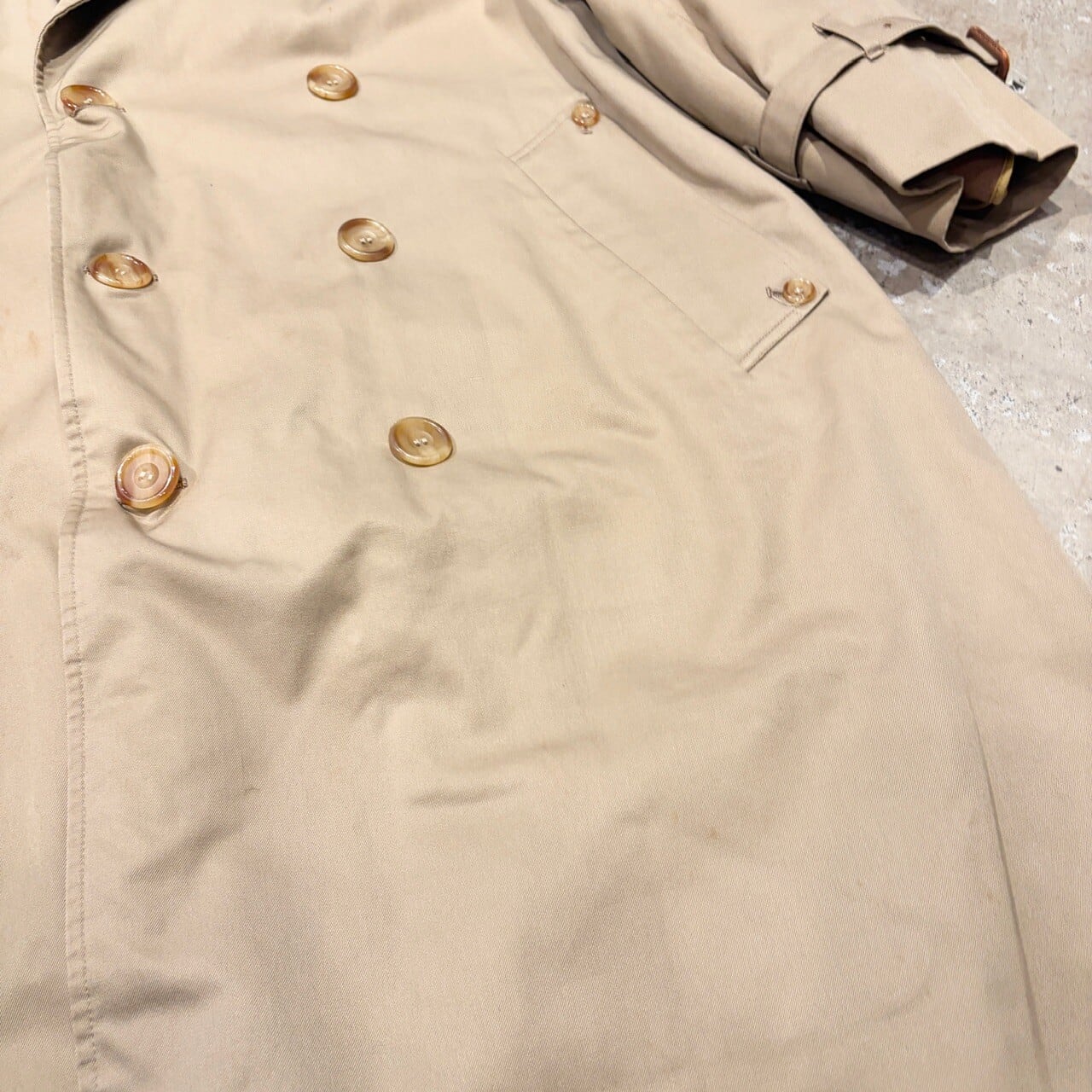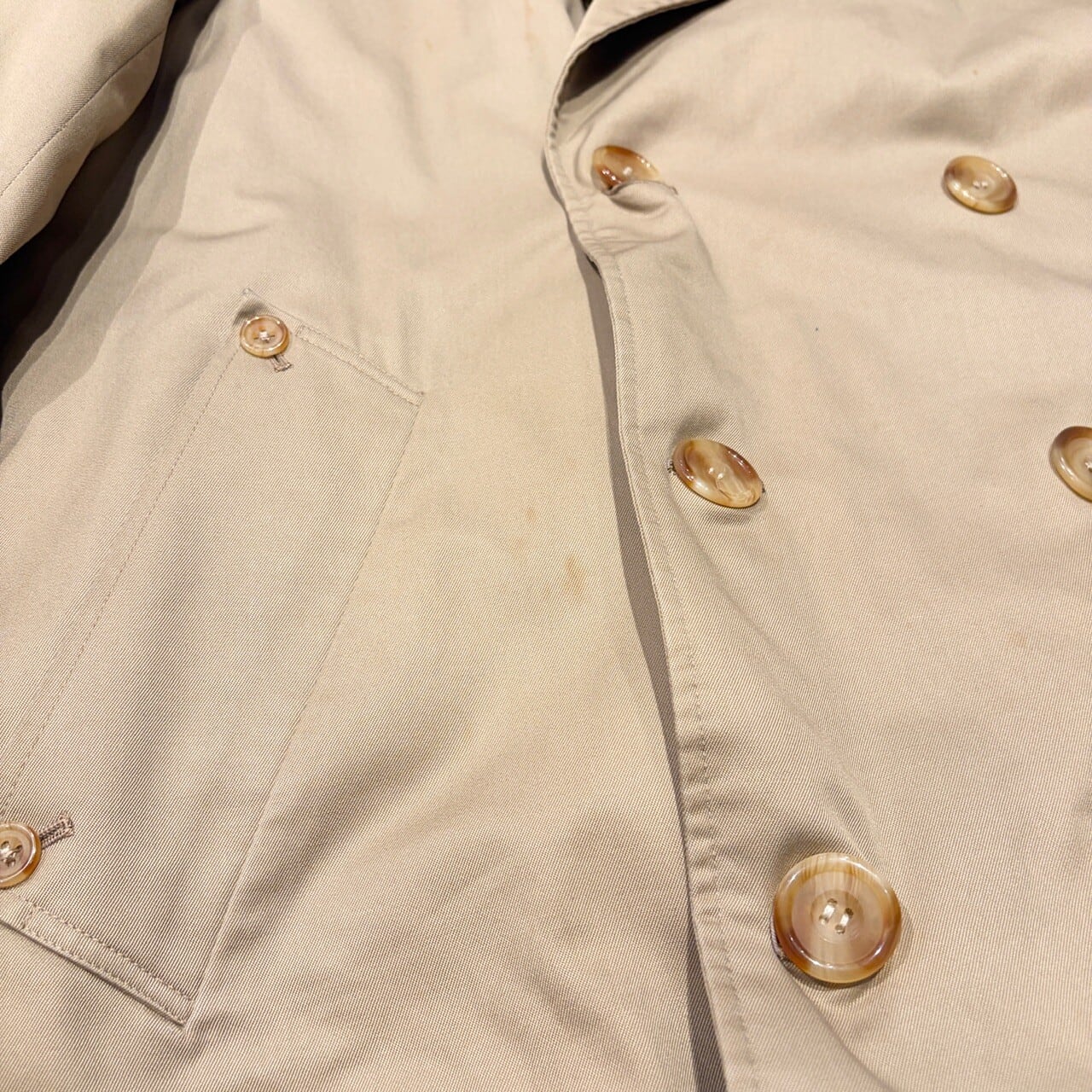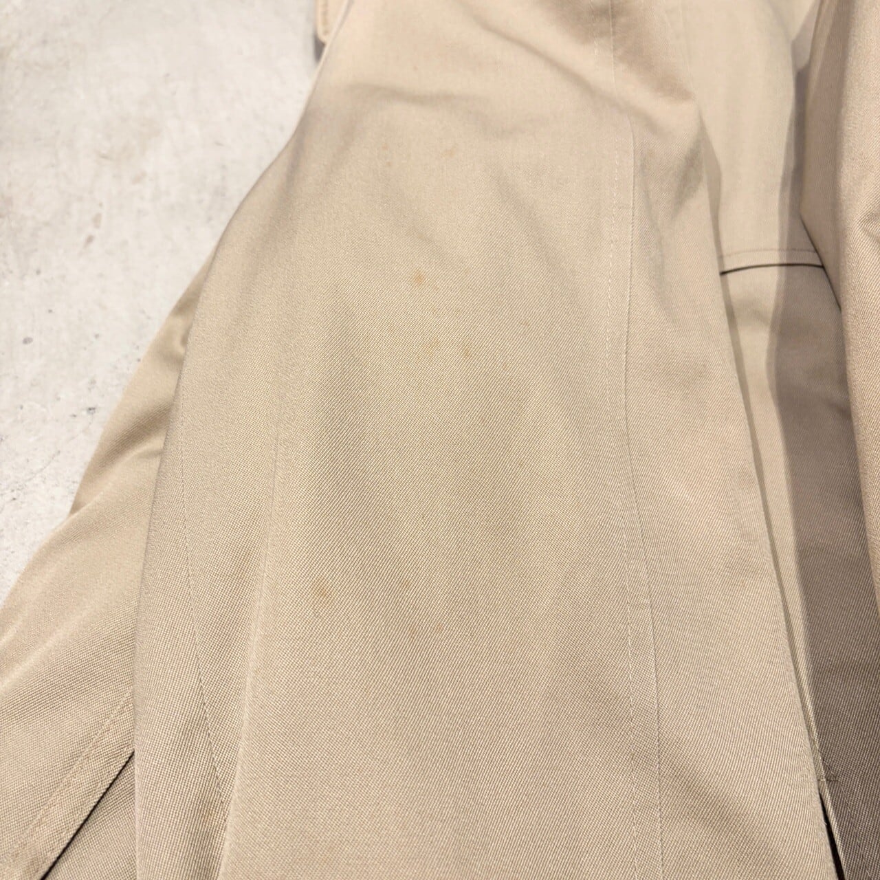 薄汚れやベルト、ダーツボタン欠損など年代相応の着用感はございますが、問題なく着用可能な状態です。