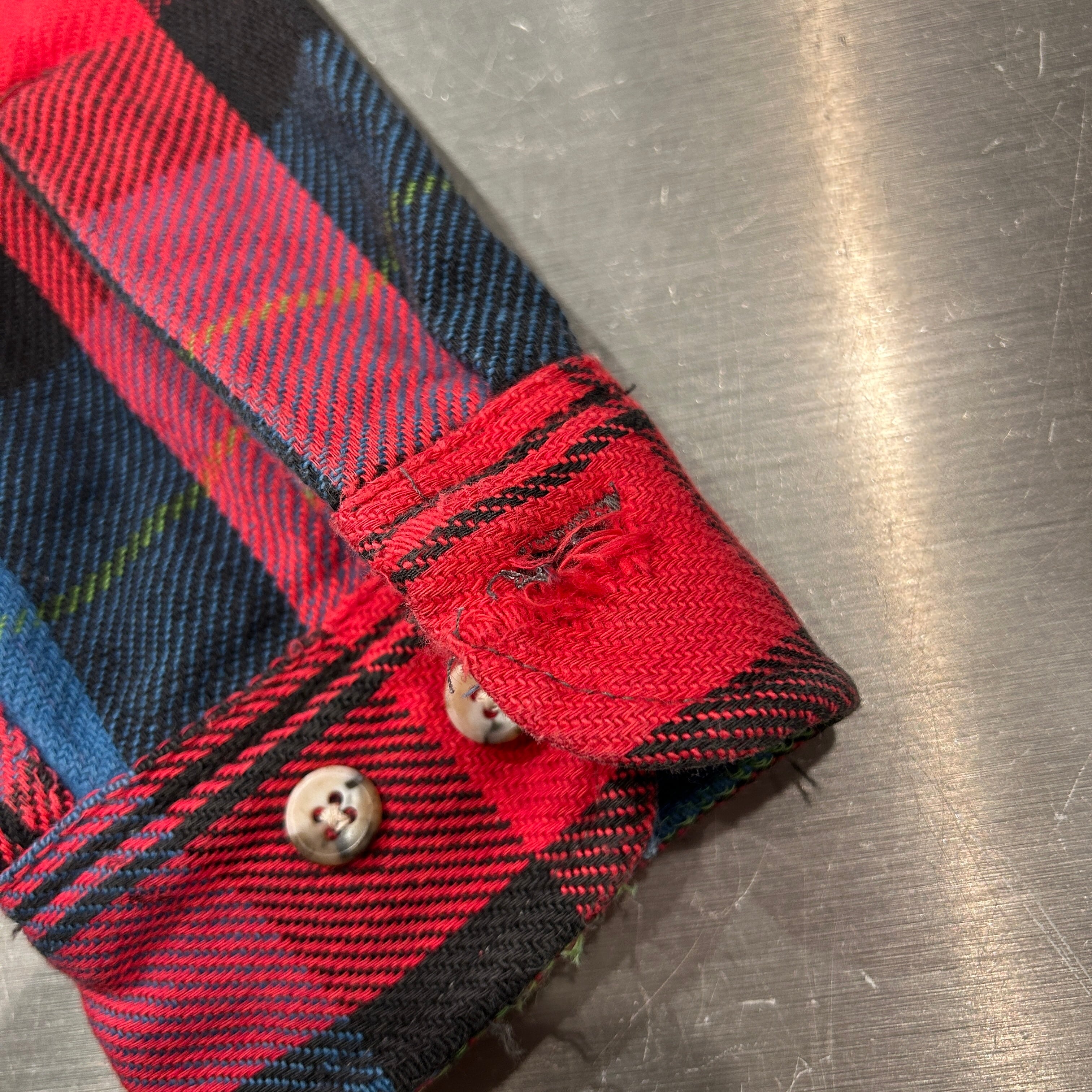 画像の様にボタンホールにほつれ、スレ、使用感がございますが、大きな汚れやダメージ等は無く、古着慣れされた方でしたら問題無く着用可能な状態です。