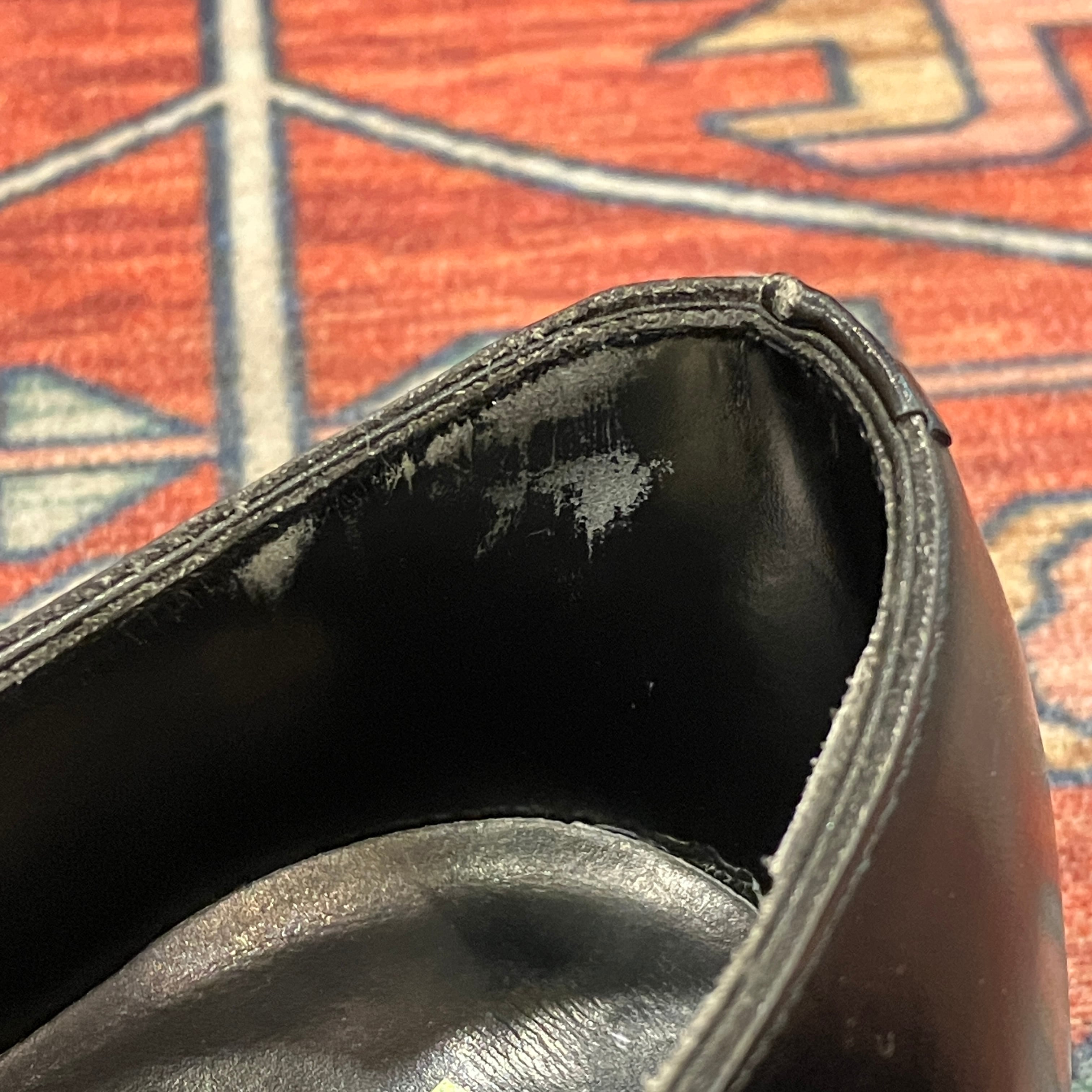 履きジワ、小傷、踵部分ライニングにスレがあります。