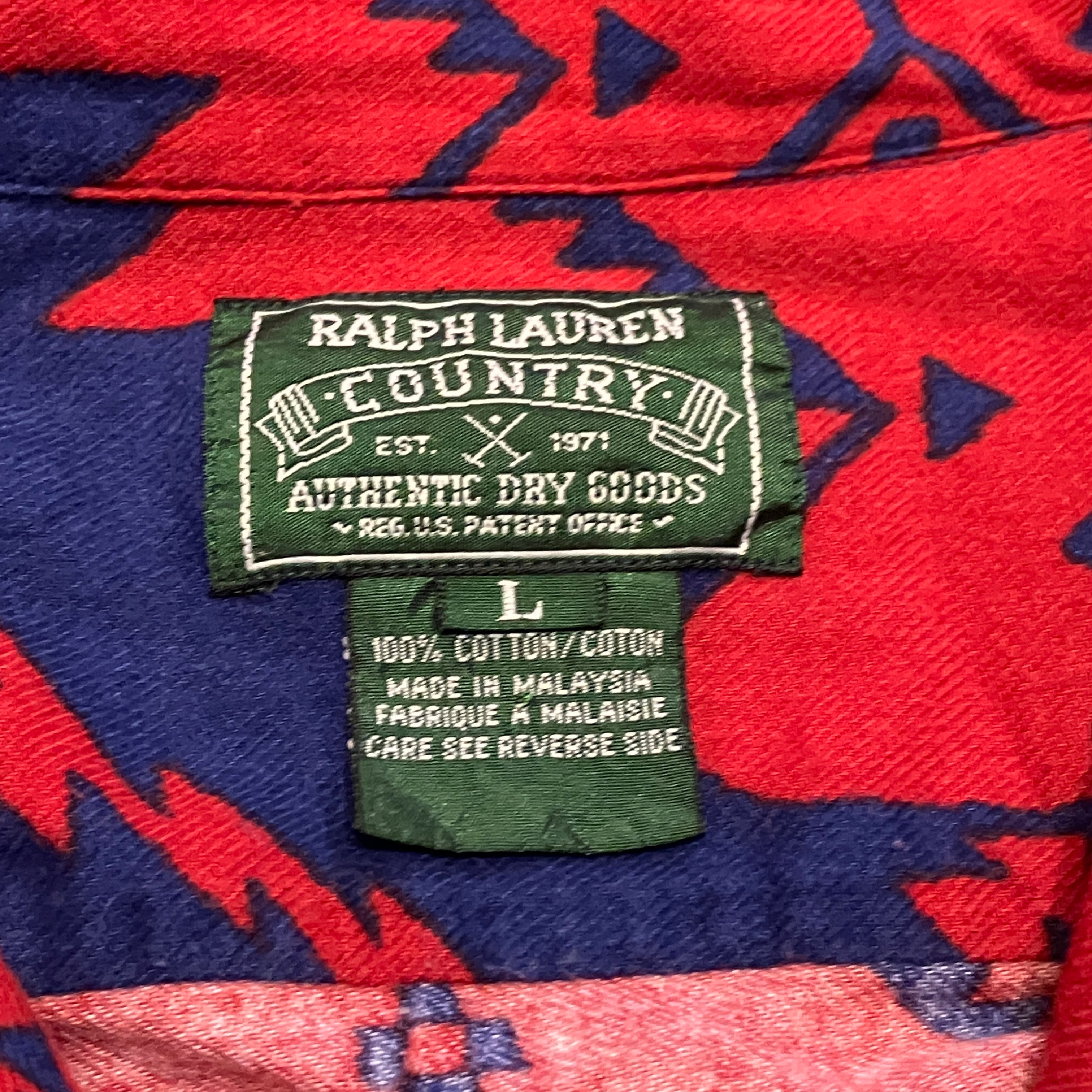 RALPH LAUREN COUNTRY NATIVE OPEN COLLAR SHIRT 1990'S OLD
