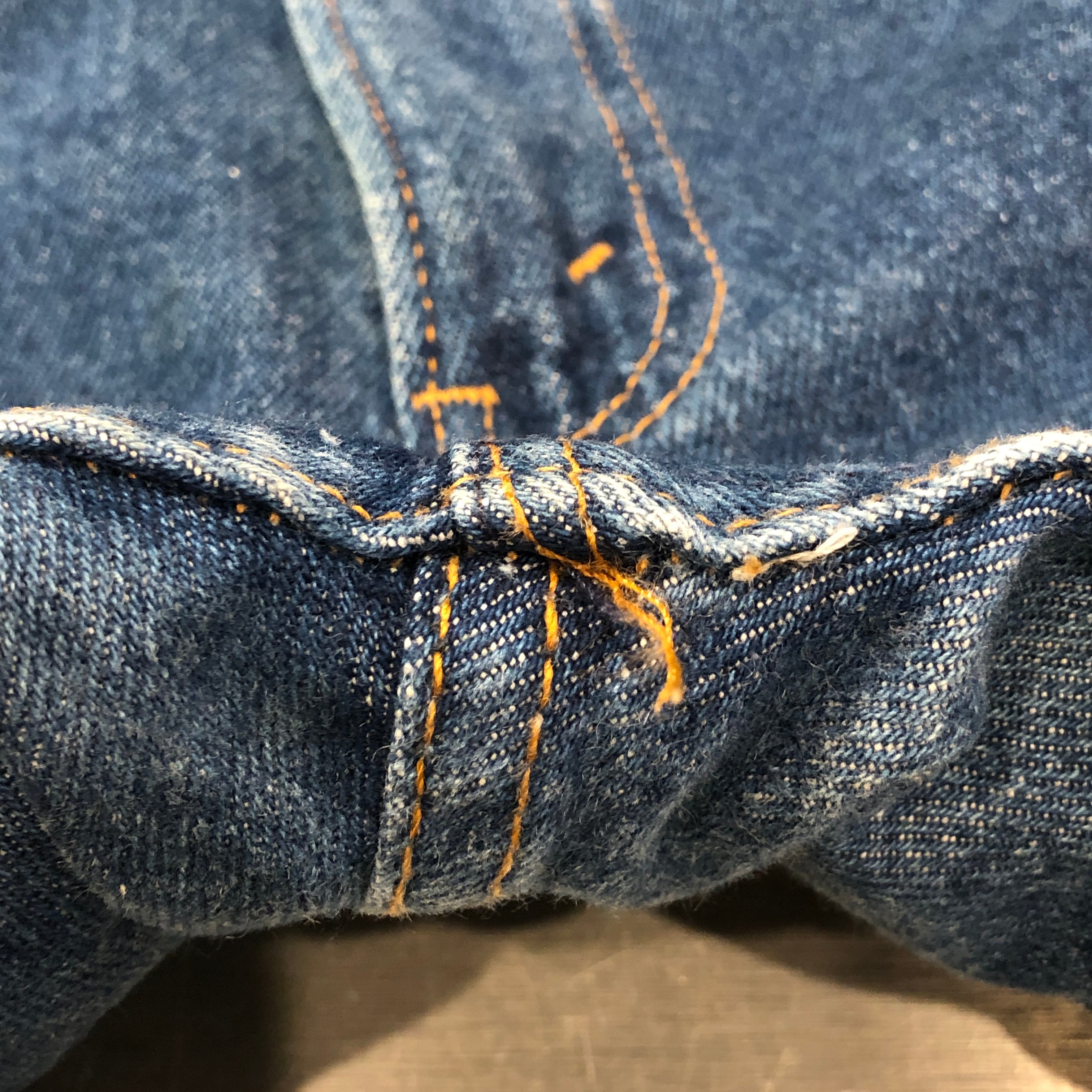 画像のように股スレによる着用感がございます。その他目立ったダメージや汚れは無く、古着慣れされた方でしたら問題無くご着用いただけます。