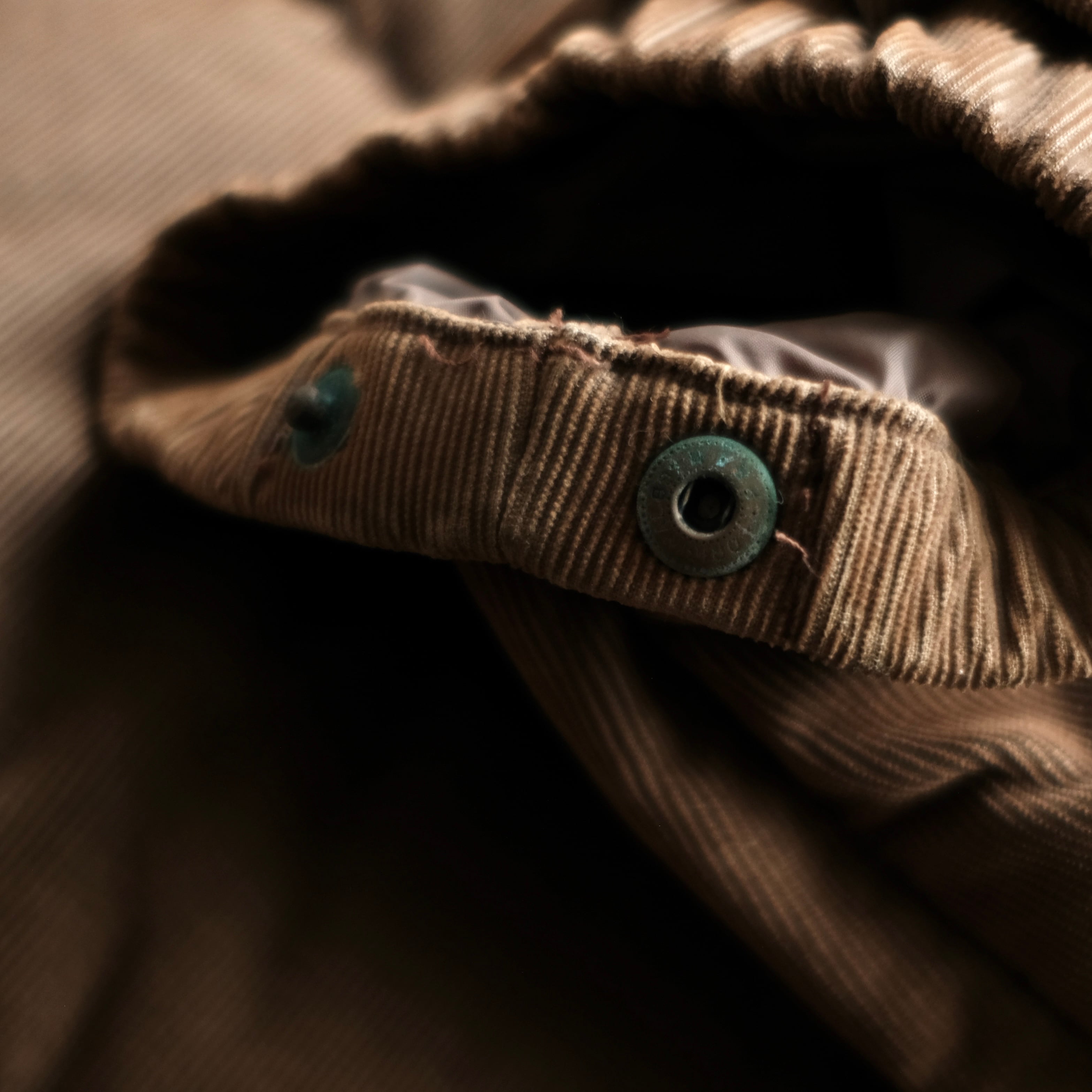 画像のようにスナップの錆や生地の色が退色している箇所がございます。