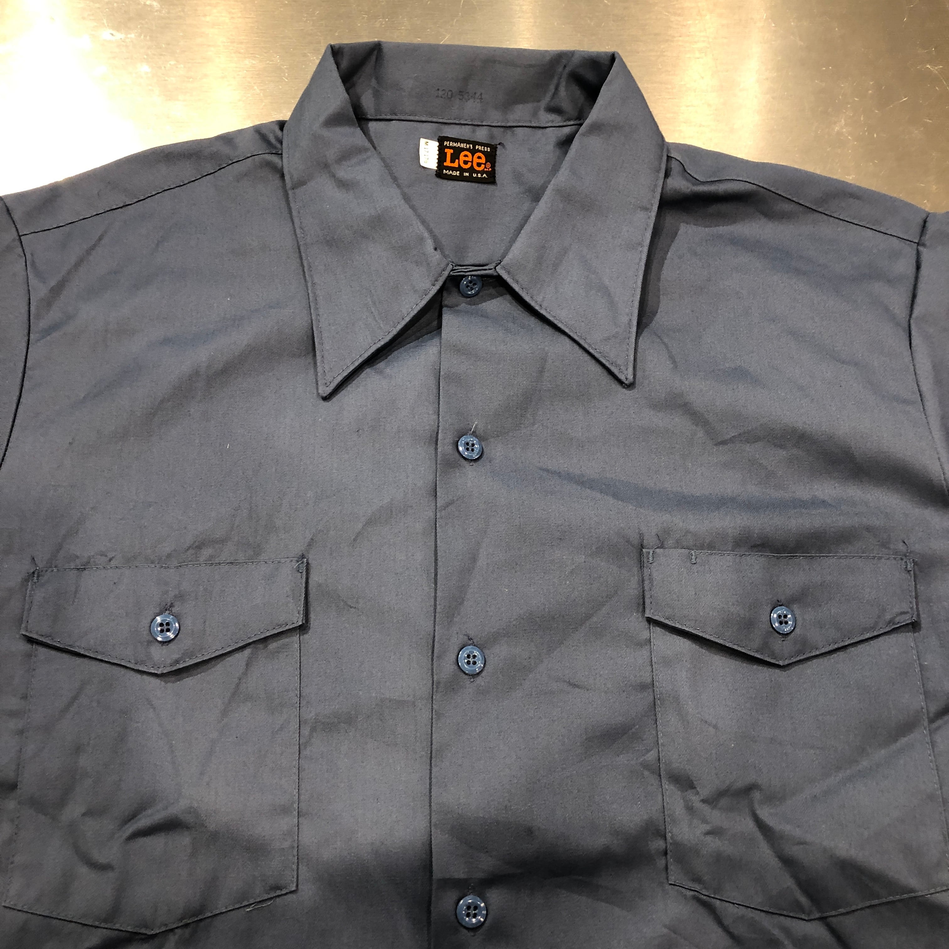 1970s LEE WORK SHIRT NAVY SIZE 17 1/2