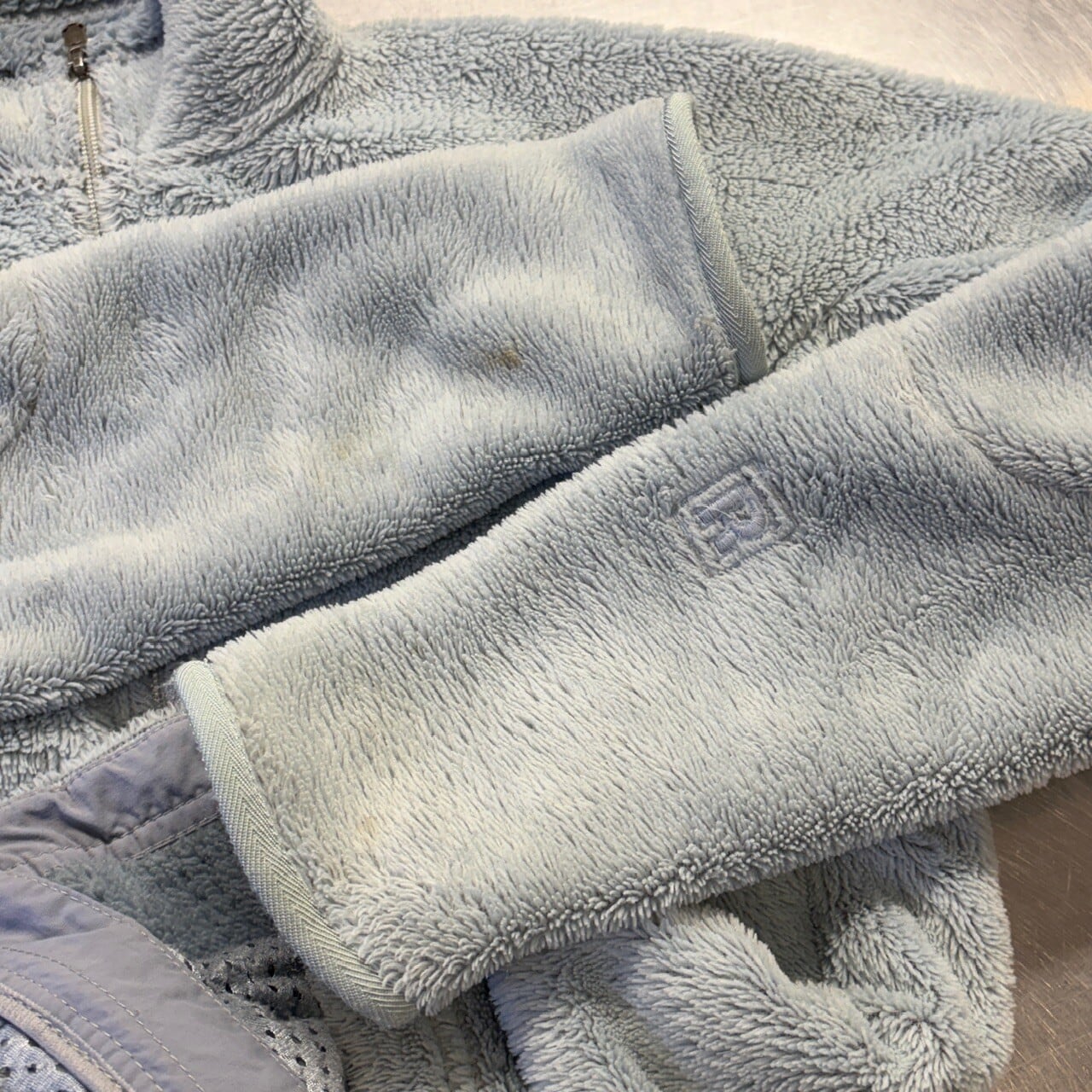 汚れシミやダメージ、生地抜けがあり全体的に着用感ございます。裾のドローコードのストッパーが欠損とジッパーの取手が欠損しております。