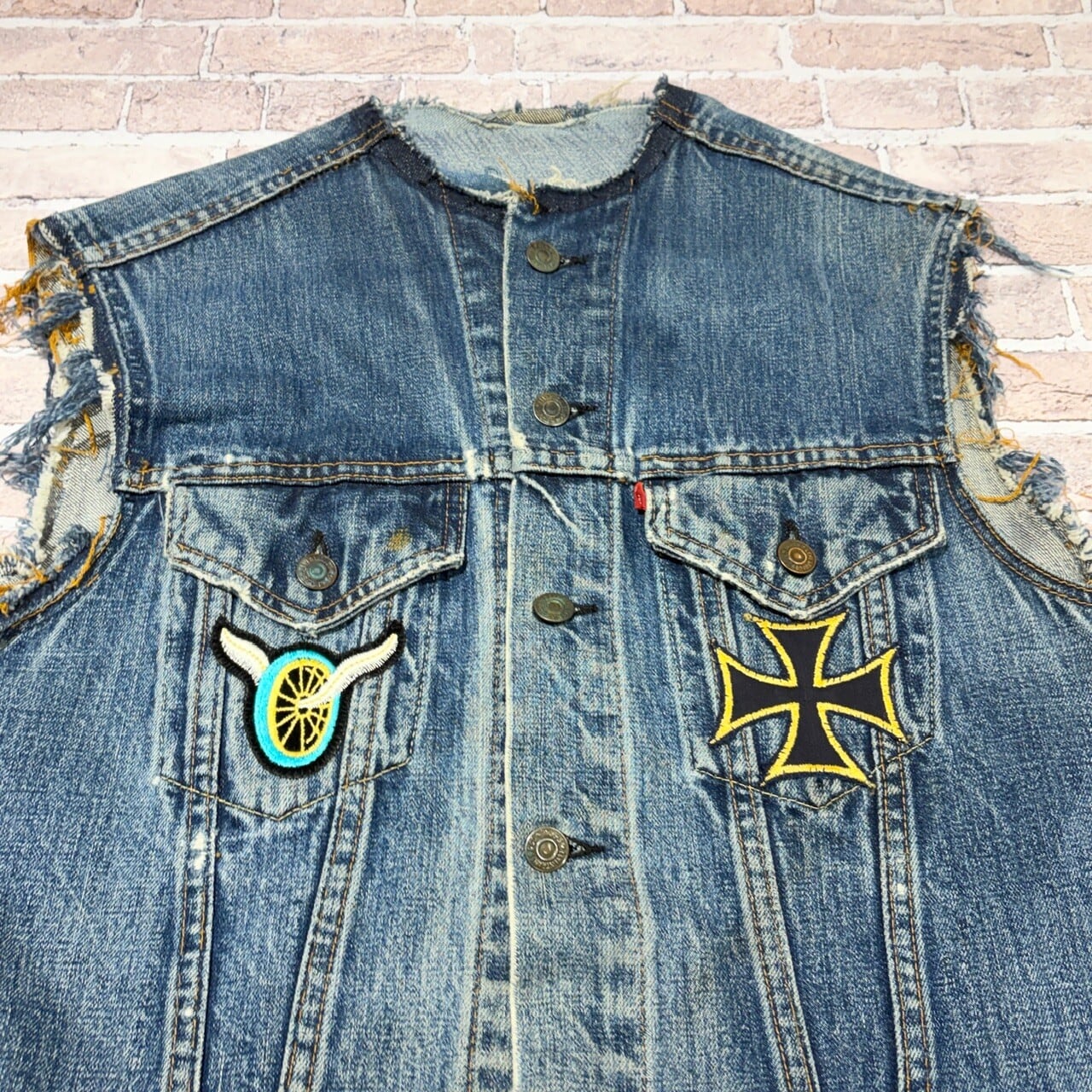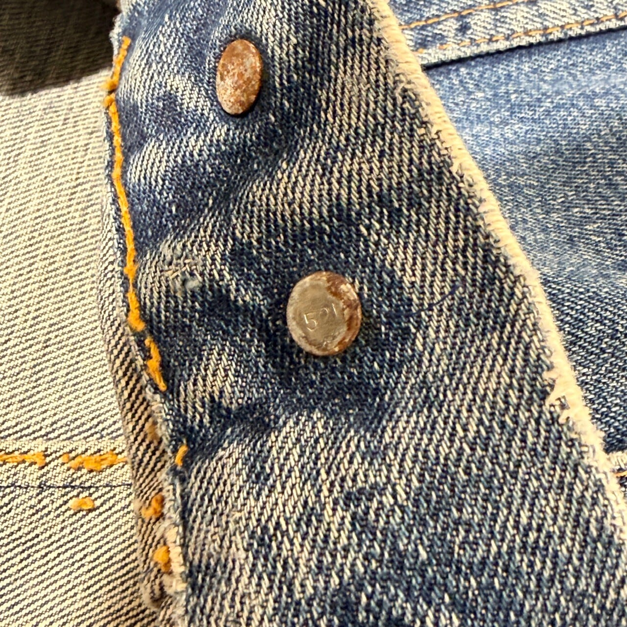 各所ダメージ、薄汚れやワッペン後付け、その他ヴィンテージデニム特有の着用感はございますが問題無く着用可能な状態です。