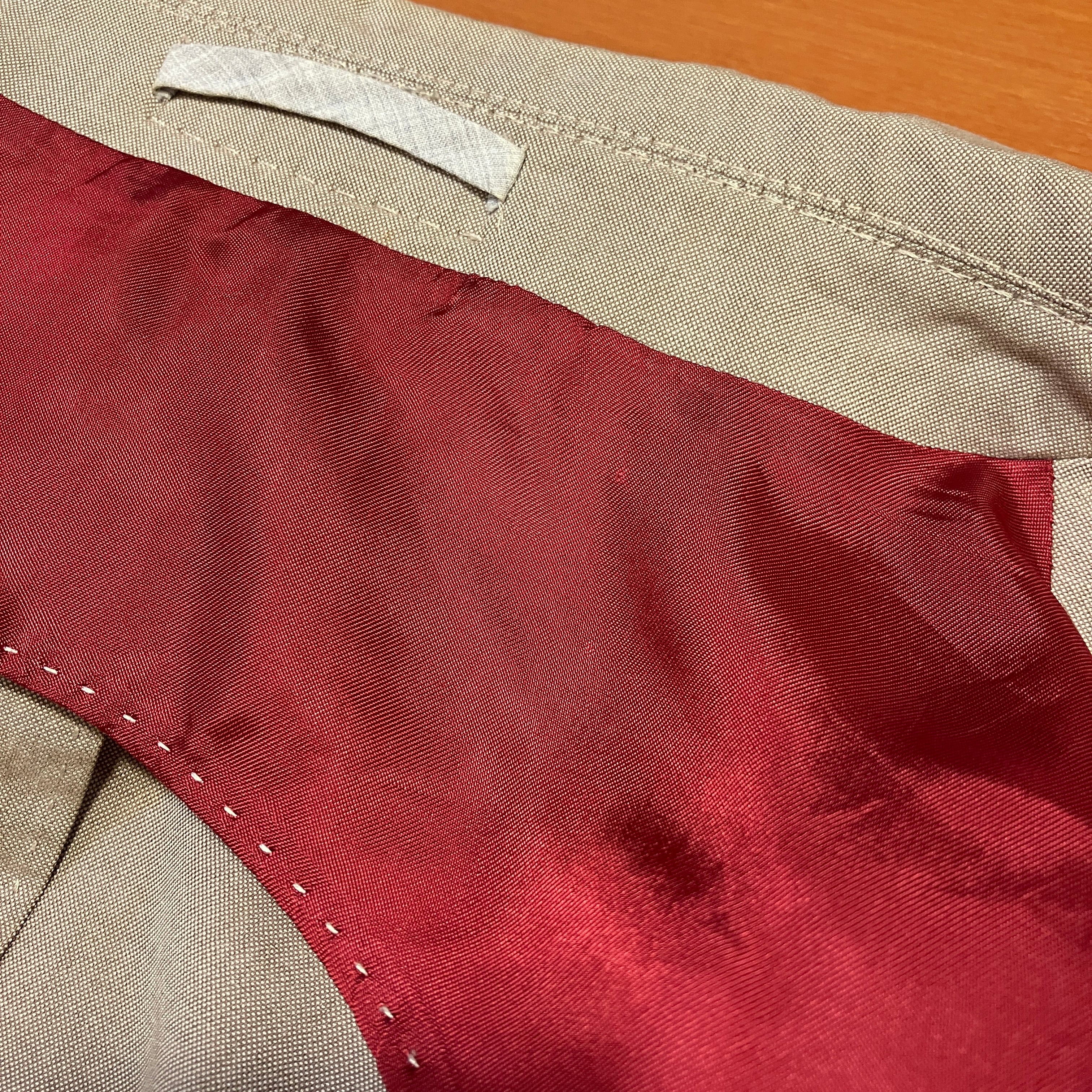 スレによる襟裏の汚れ、右袖二の腕付近に当たりございます。