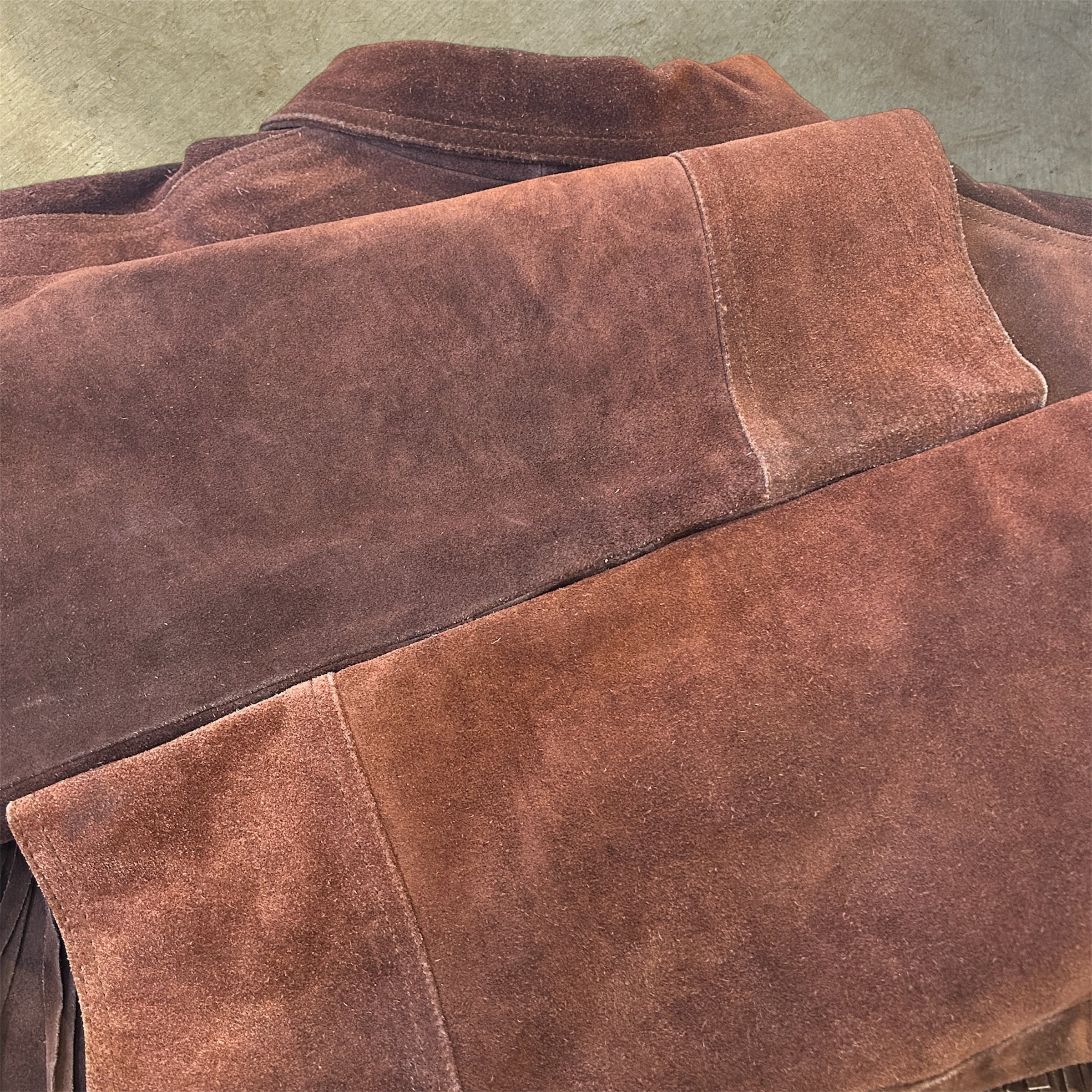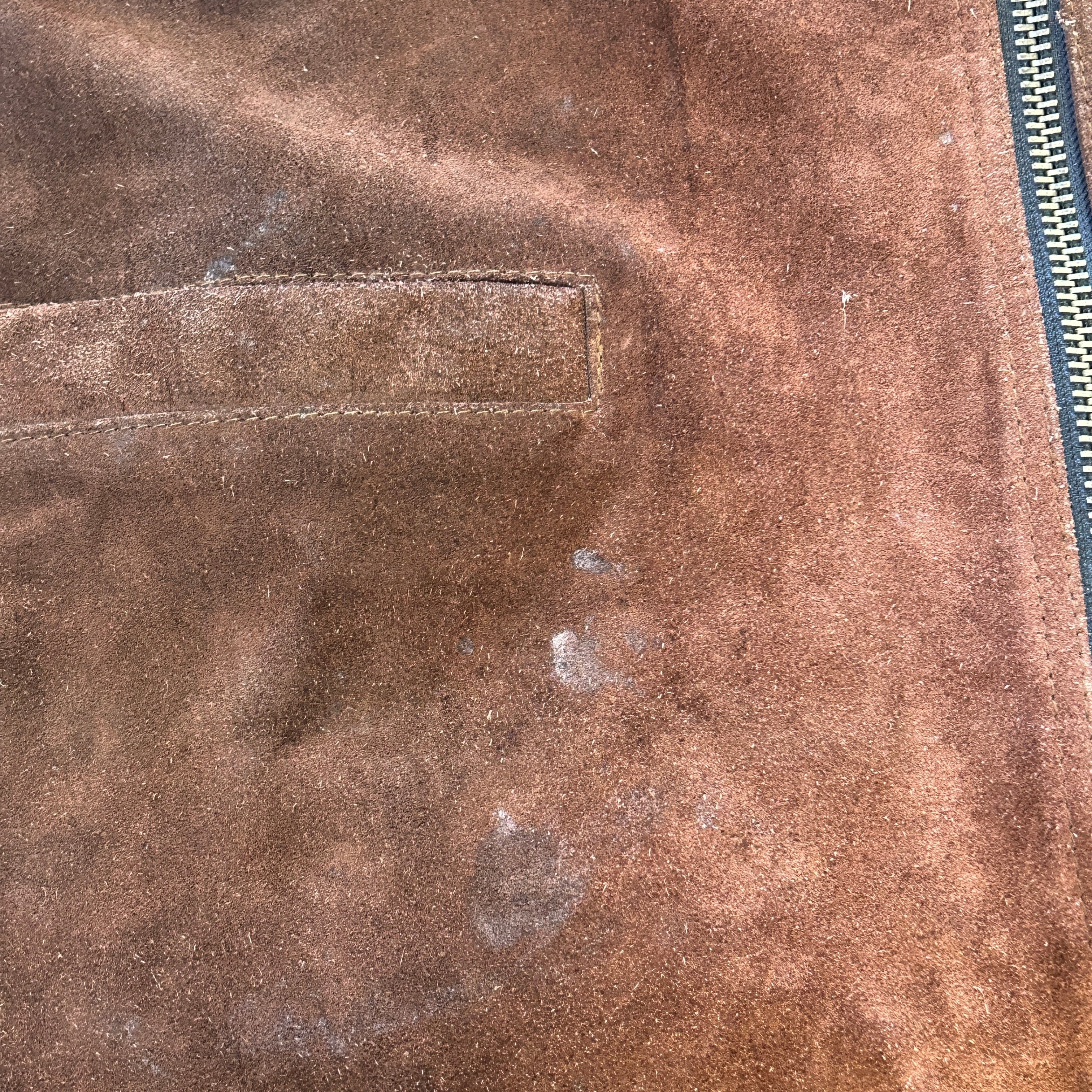 画像の様に汚れ、スレ、レザー特有のシミ等の使用感がございますが、目立った汚れやダメージ等は無く、古着慣れされた方でしたら、問題無く着用可能な状態です。