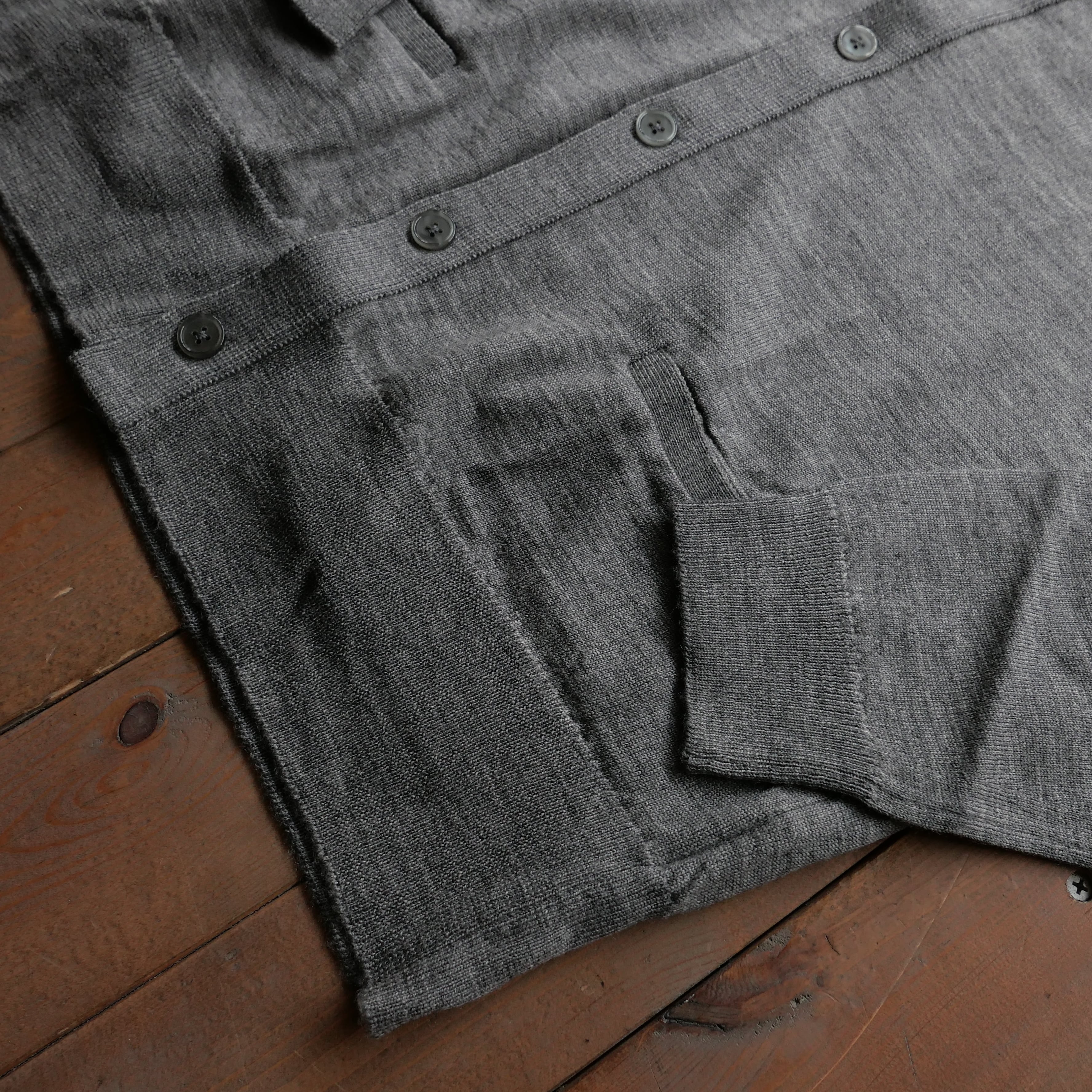 メリノウールを使用し、ウールに特別な加工を施すことで毛玉や毛羽立ちが起こりにくく、独特の質感のニットが出来上がります。