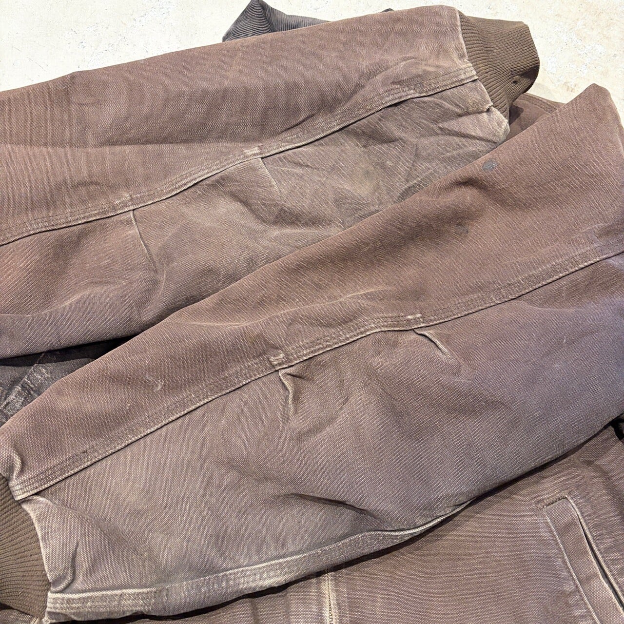 アタリや一部ダメージ、毛羽立ちなど使用感がございますが、古着慣れされた方でしたら、まだまだ問題無く着用可能な状態です。