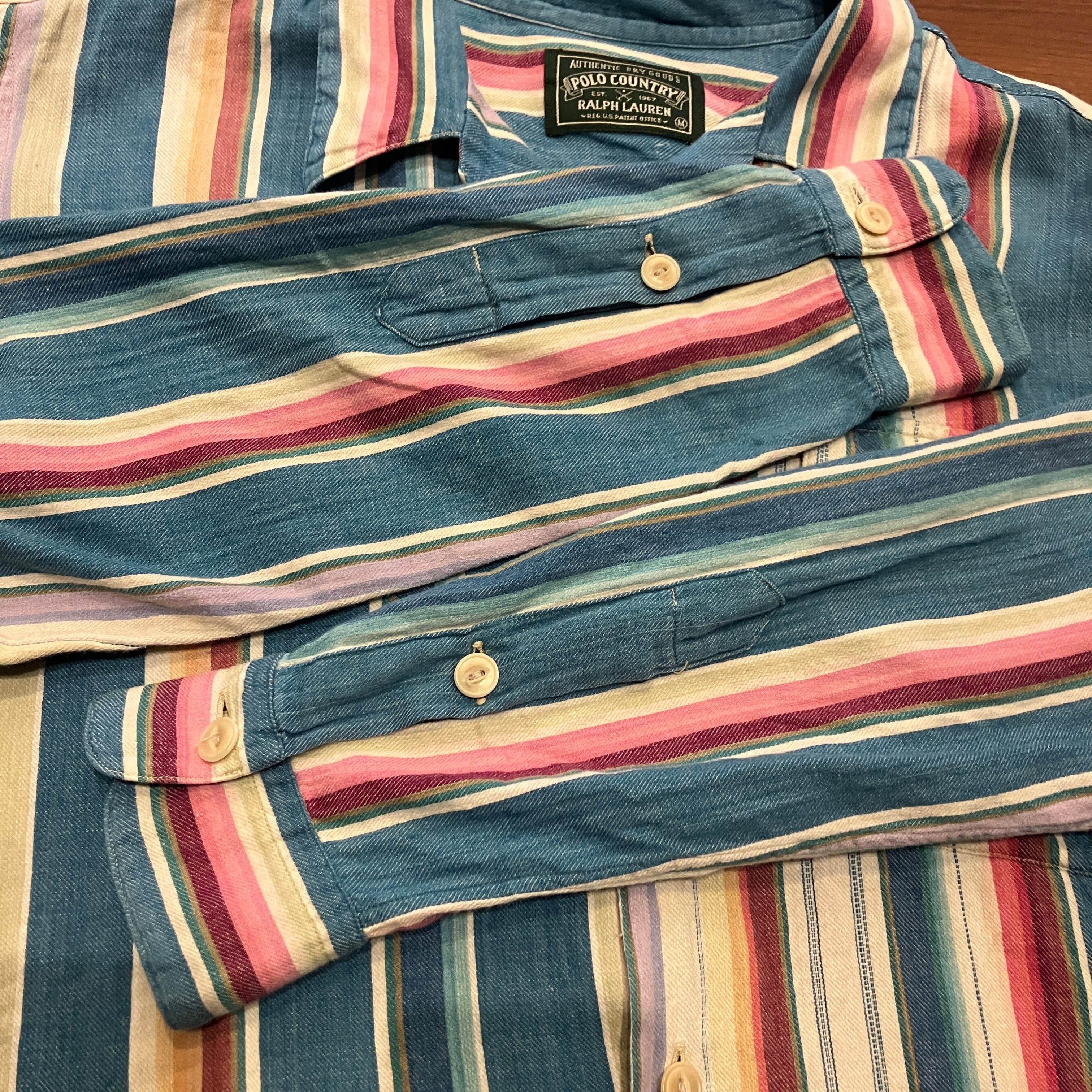 POLO COUNTRY NATIVE STRIPE OPEN COLLAR SHIRT 1990'S OLD