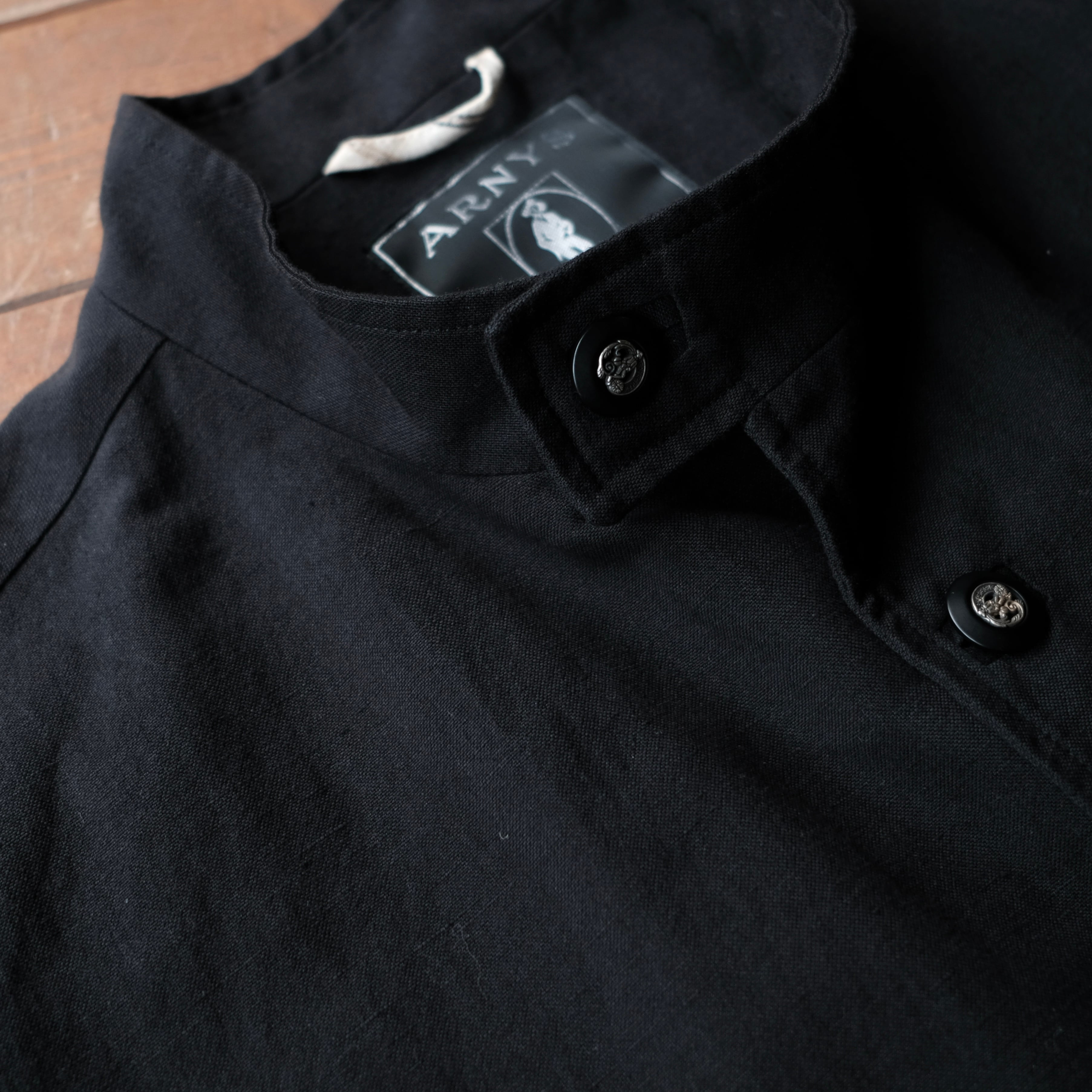 細かく彫刻されたアルニスオリジナルのボタンもやはり魅力です。