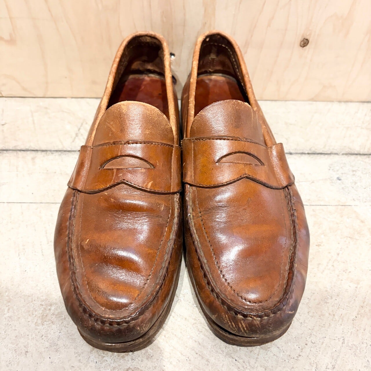 各所傷、ソールの減りなど、レザーシューズ特有の着用感がございます、画像にてご確認のほどよろしくお願いいたします。