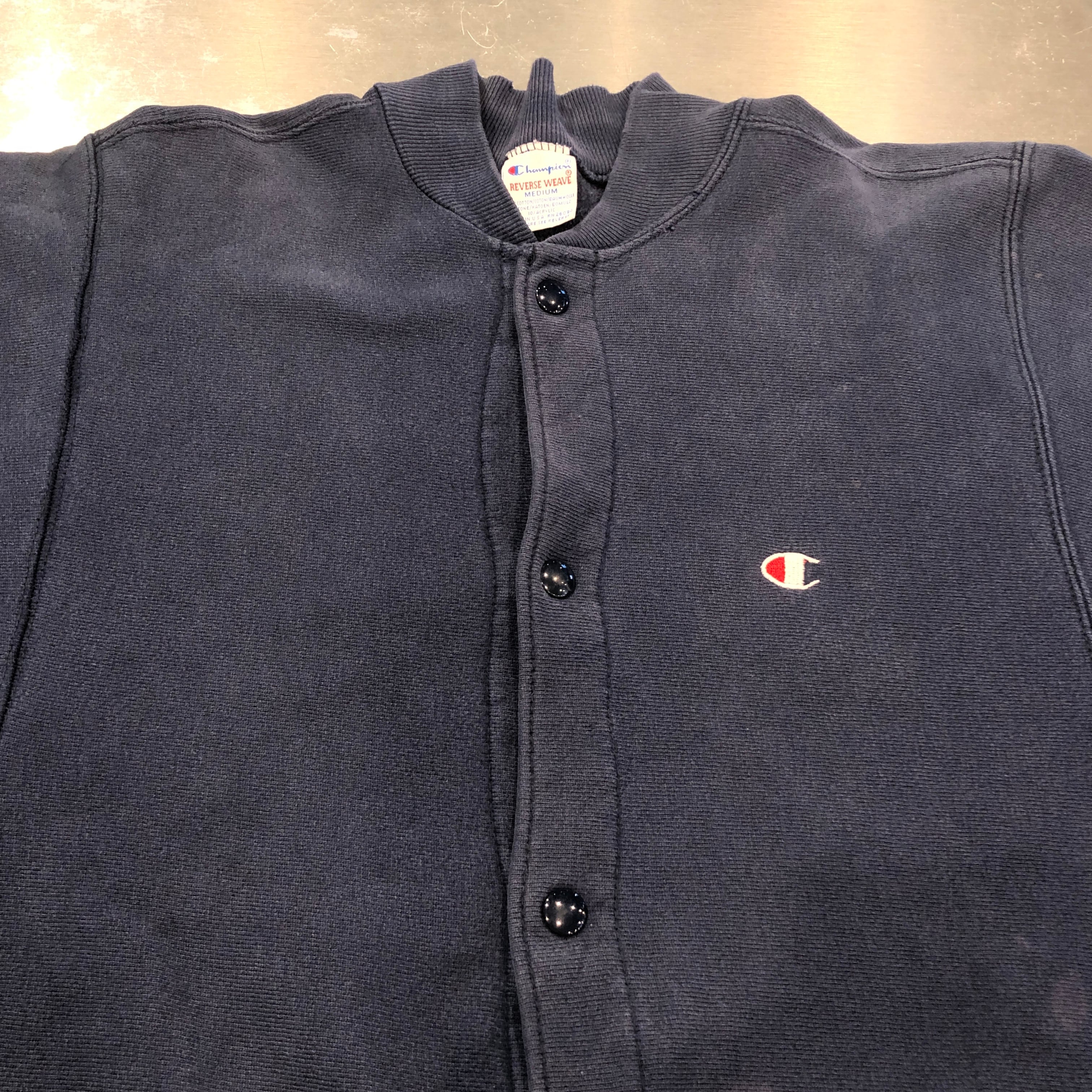 1990s CHAMPION REVERSE WEAVE SNAP CARDIGAN NAVY
