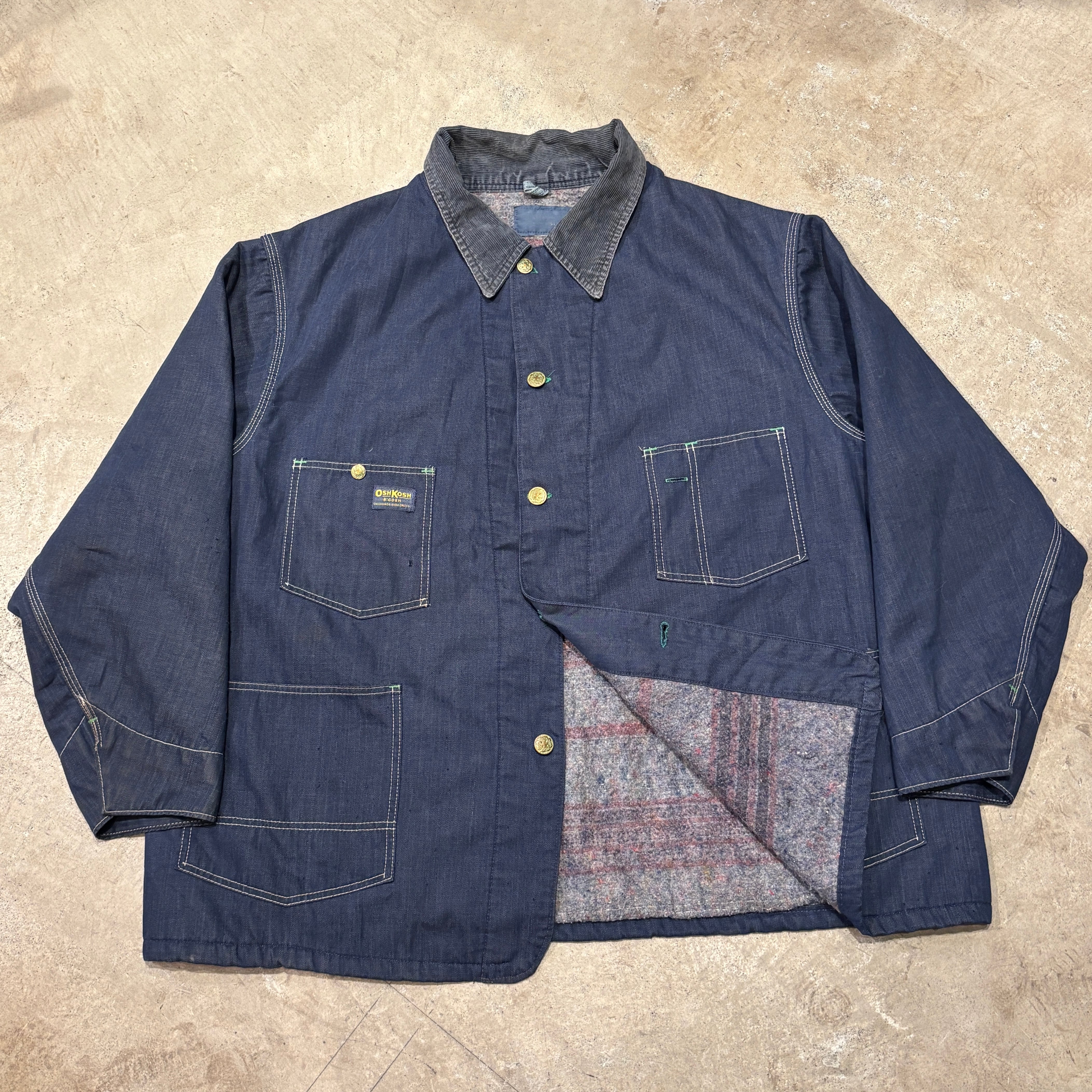 1970s OSHKOSH VATDYE DENIM COVERALL BLANKET LINER