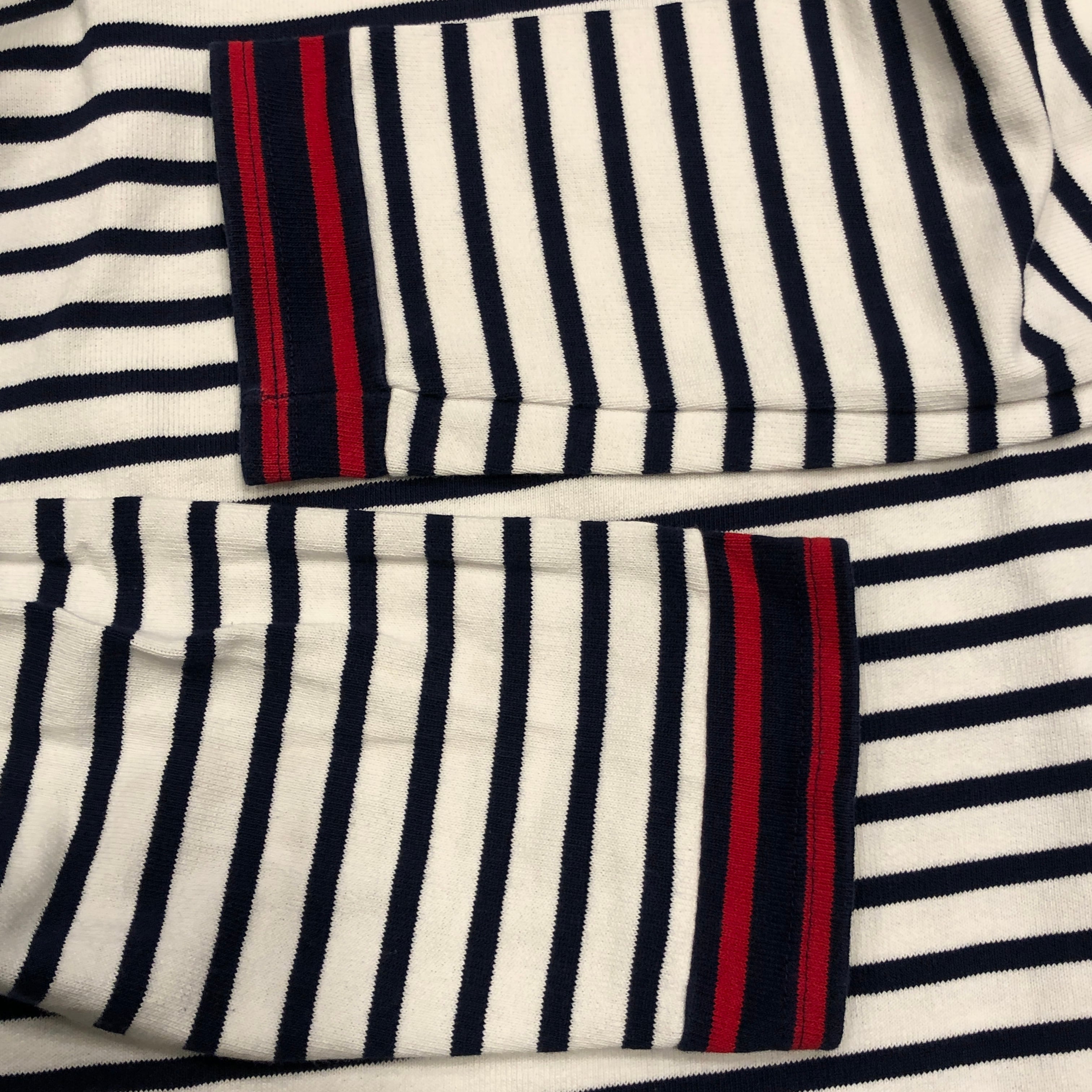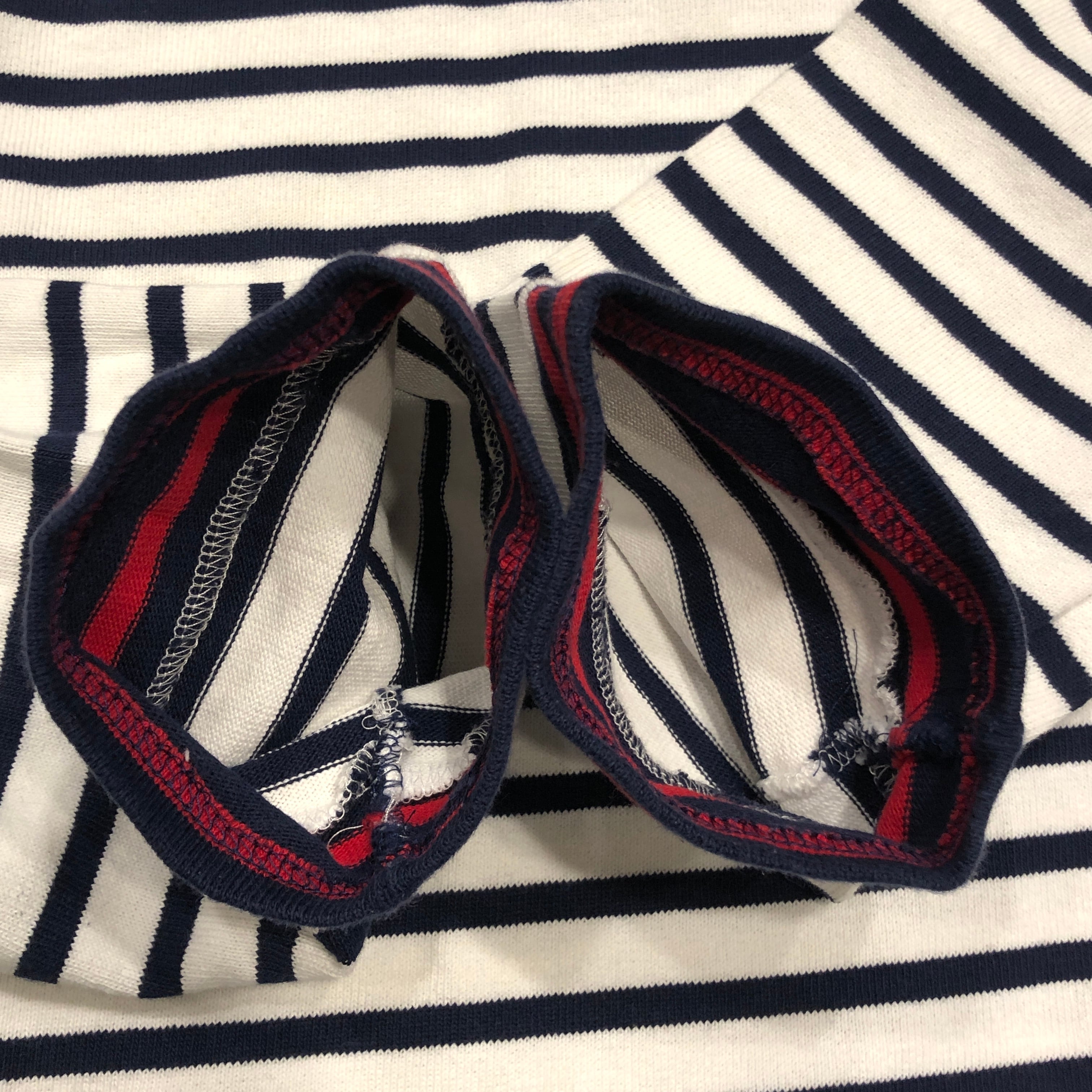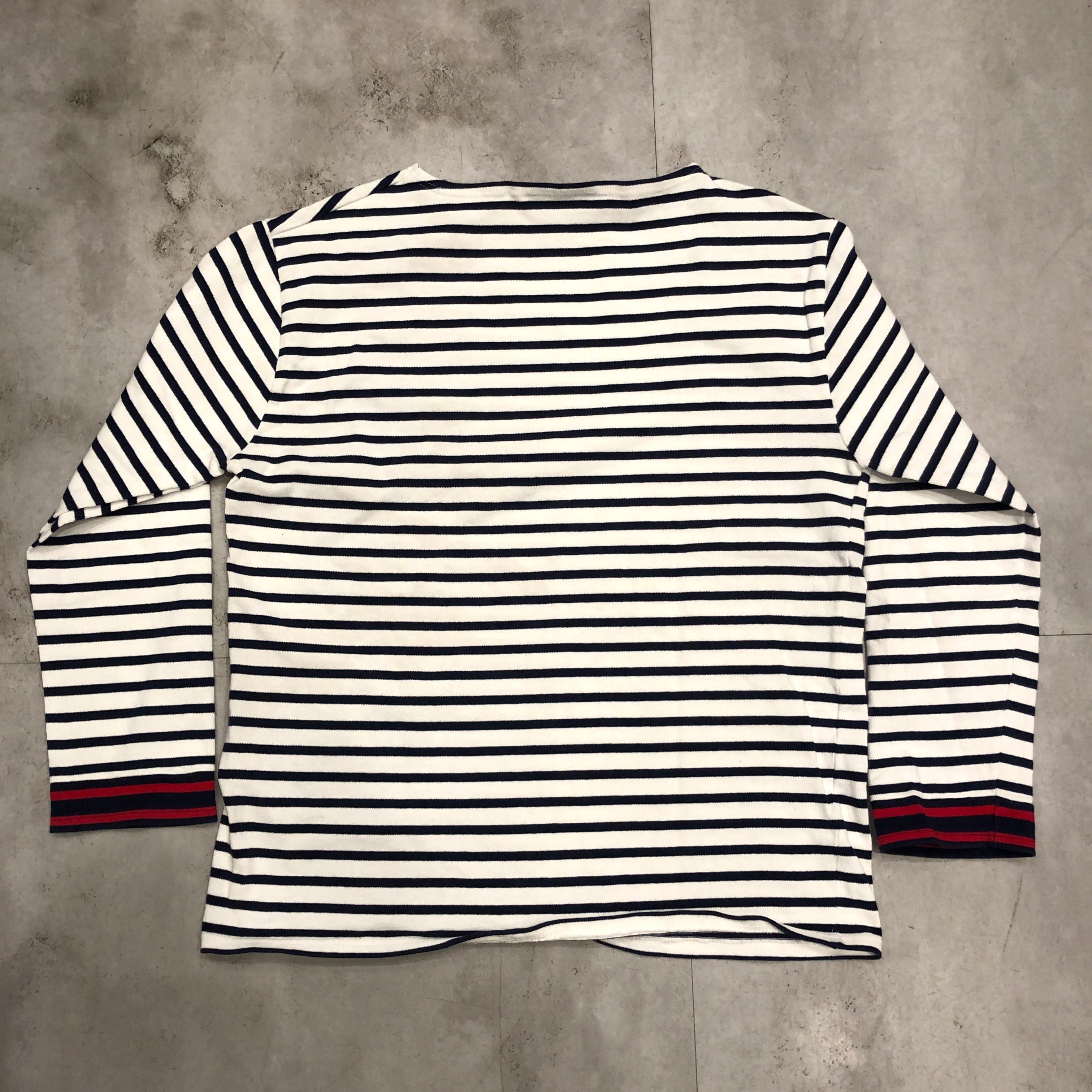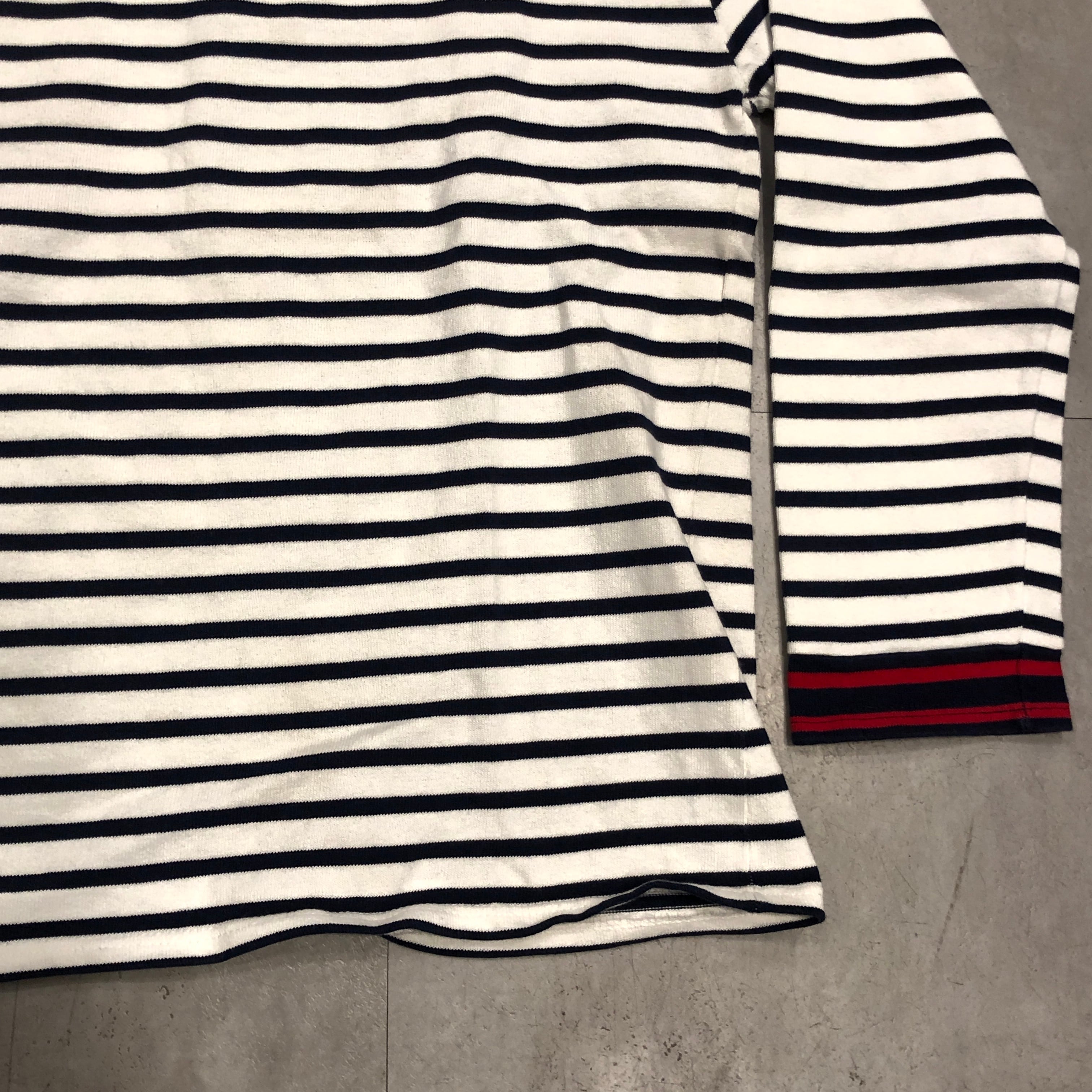 フレンチカジュアルの定番として揺るぎない人気を誇るSAINT JAMES(セントジェームス)のウエッソン。寒い季節のスタイリングに新鮮な風を運びます。こちらの個体は通常のタイプとは一味違う袖口がバイカラータイプ。