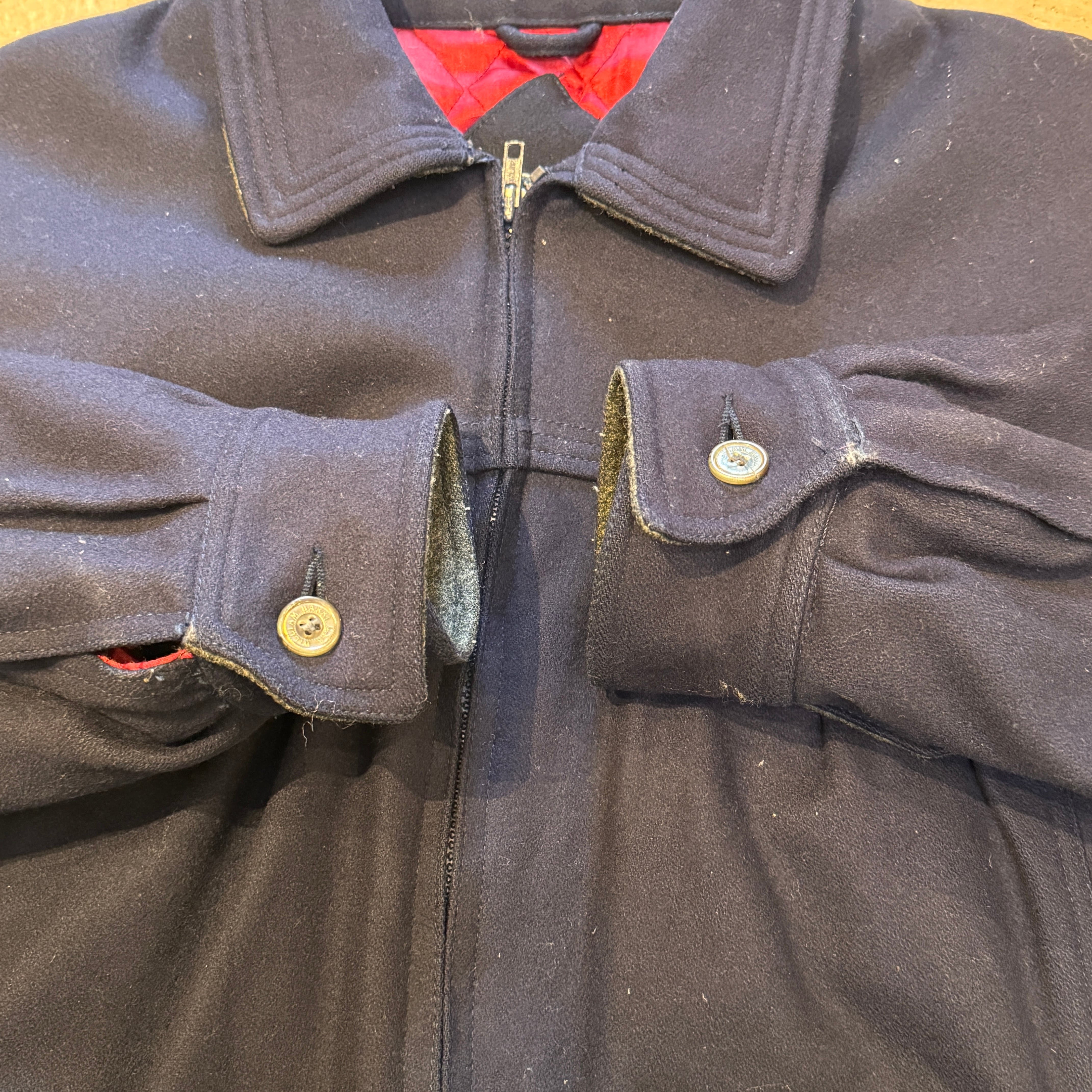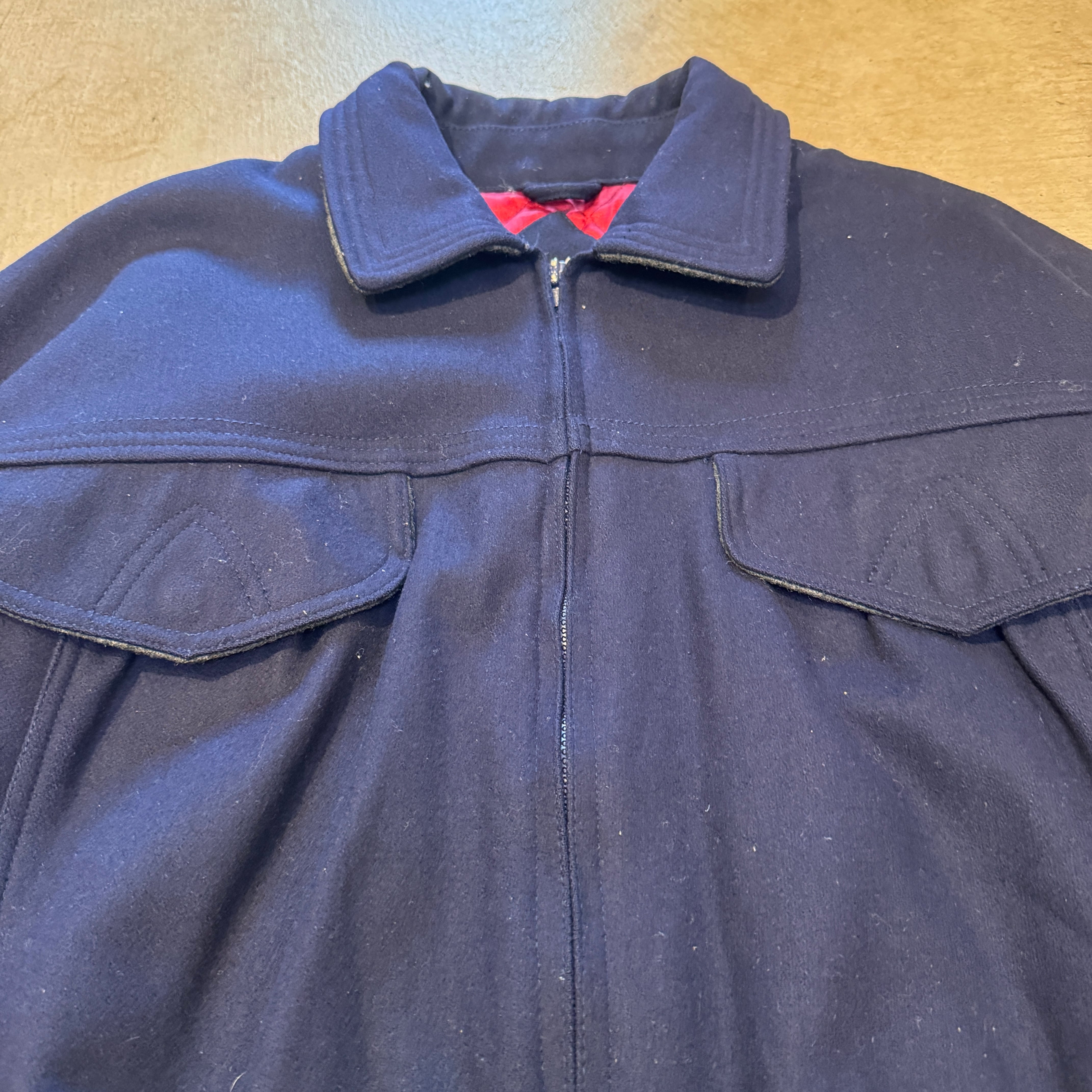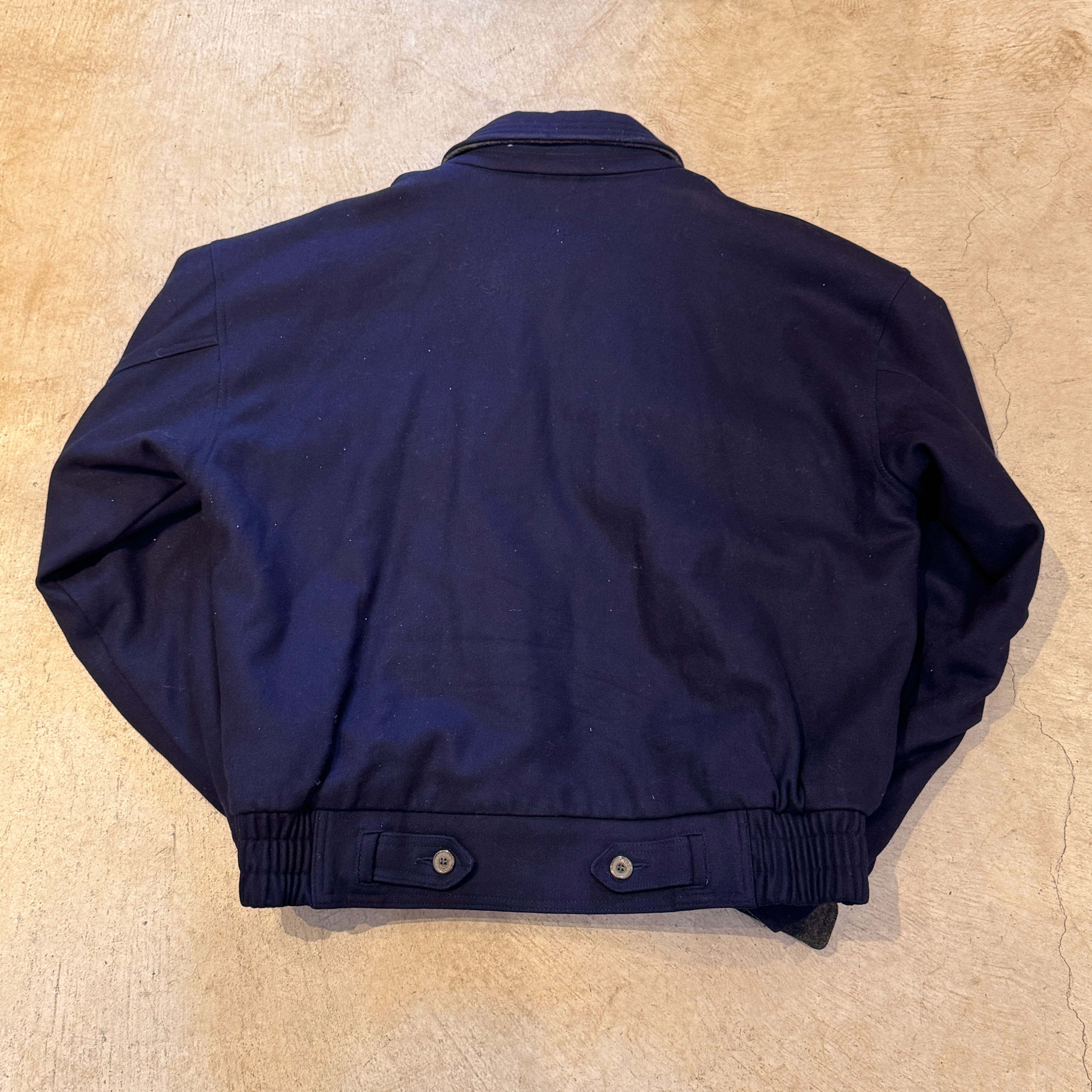 1980-90s WILLIAM BARRY WOOL JACKET UNIQUE POCKET NAVY