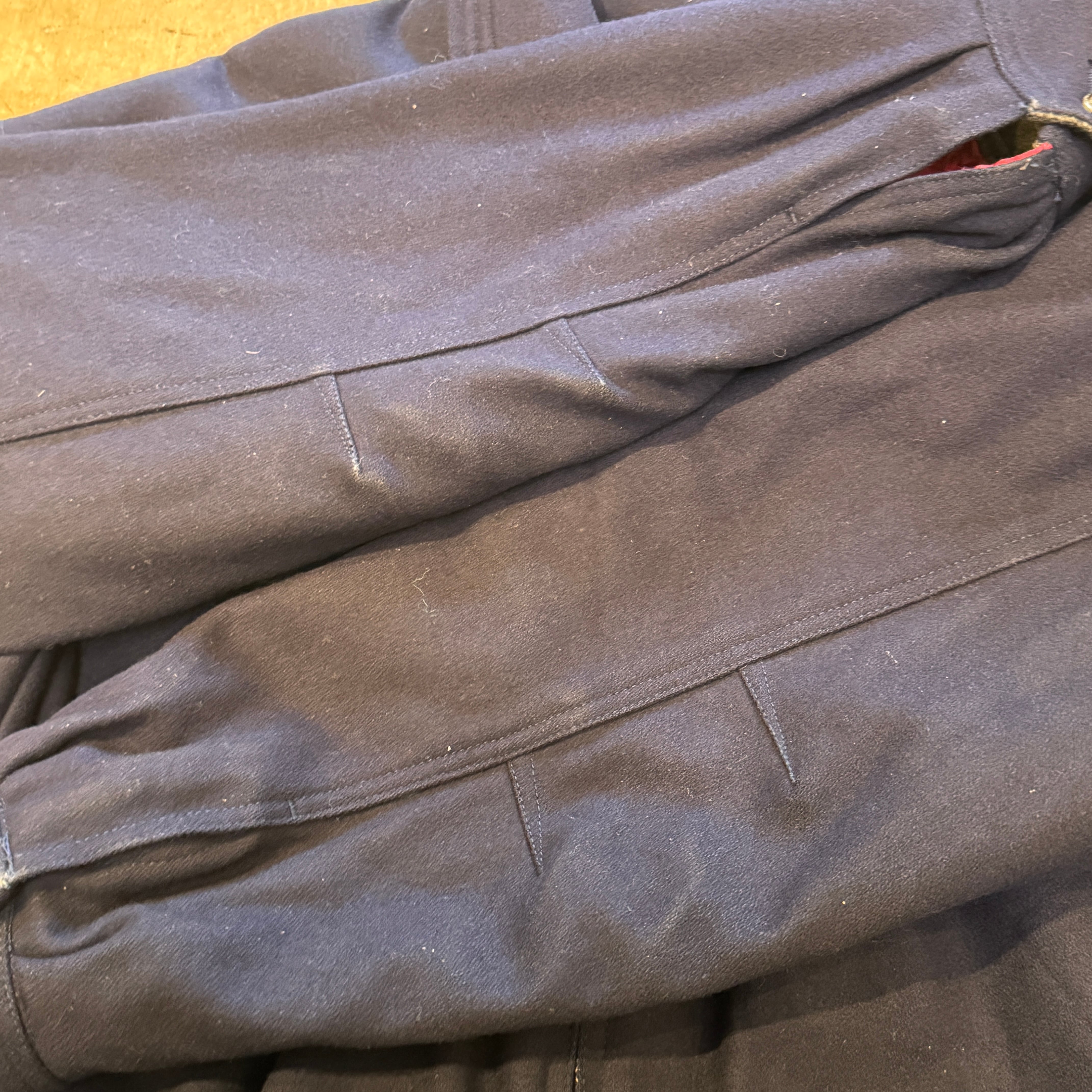 細かなスレ感や毛羽立ち、ステッチ抜けなど全体的に着用感ございますが問題なく着用可能な状態になります。