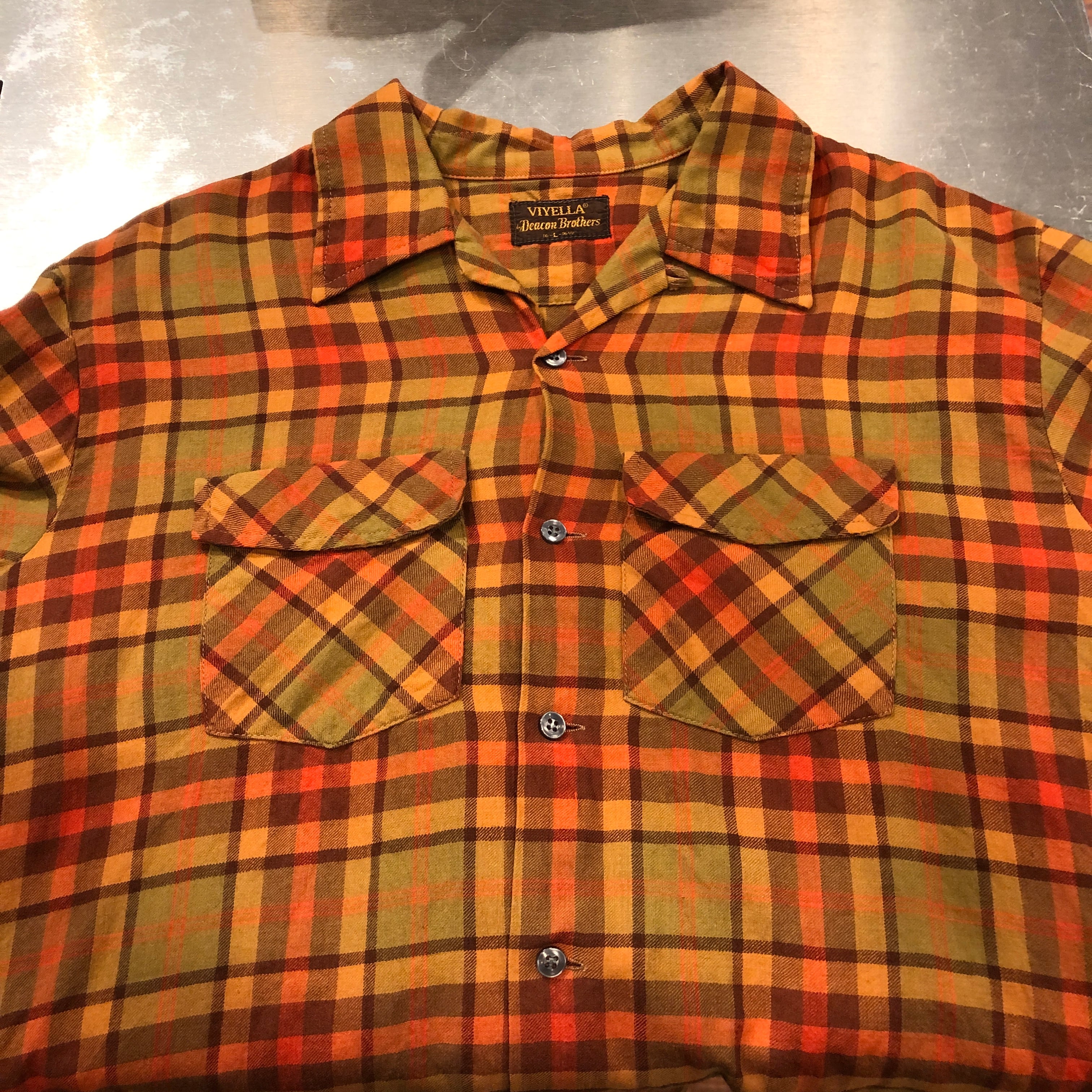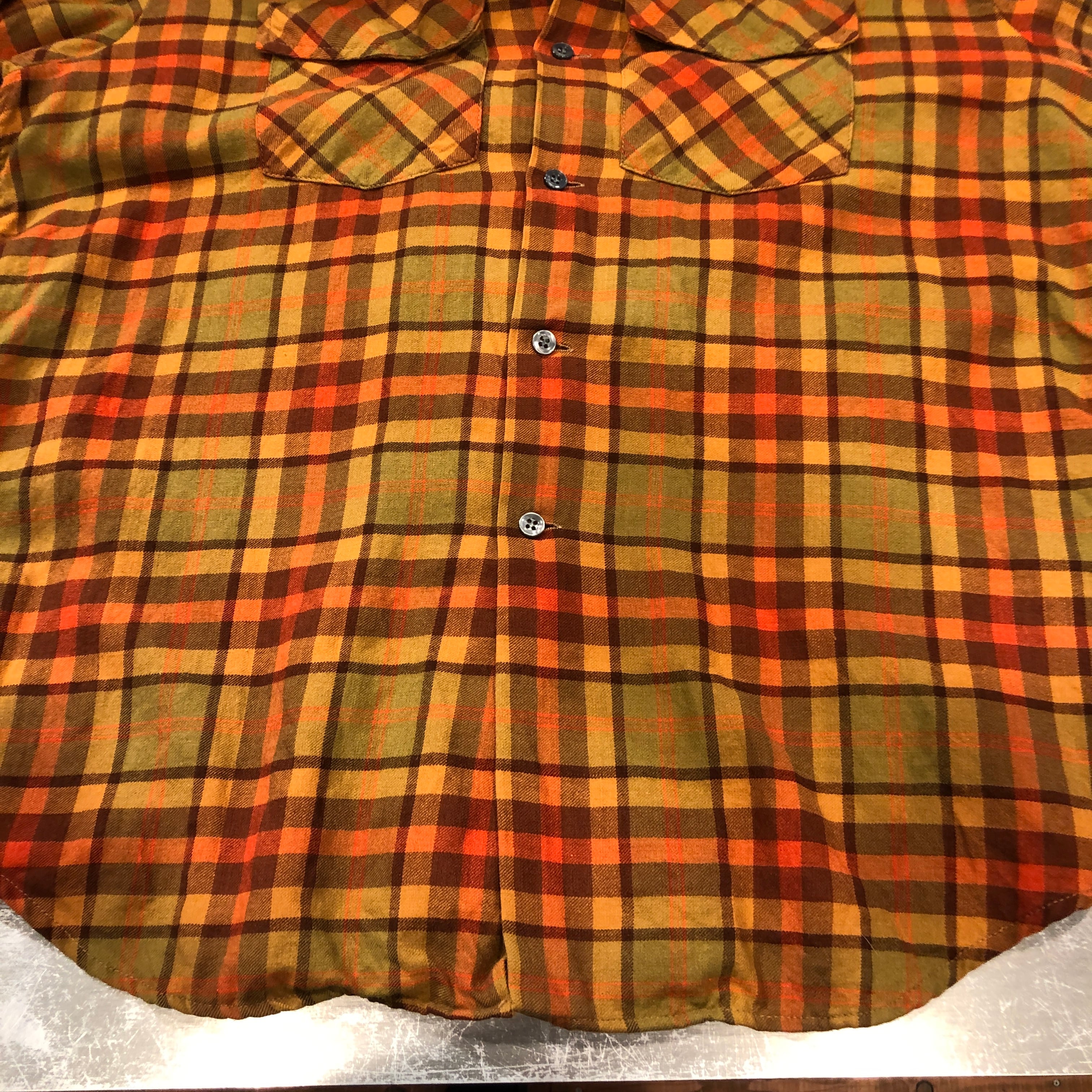 ⊕1960'S VIYELLA ORANGE WOOL CHECK SHIRT