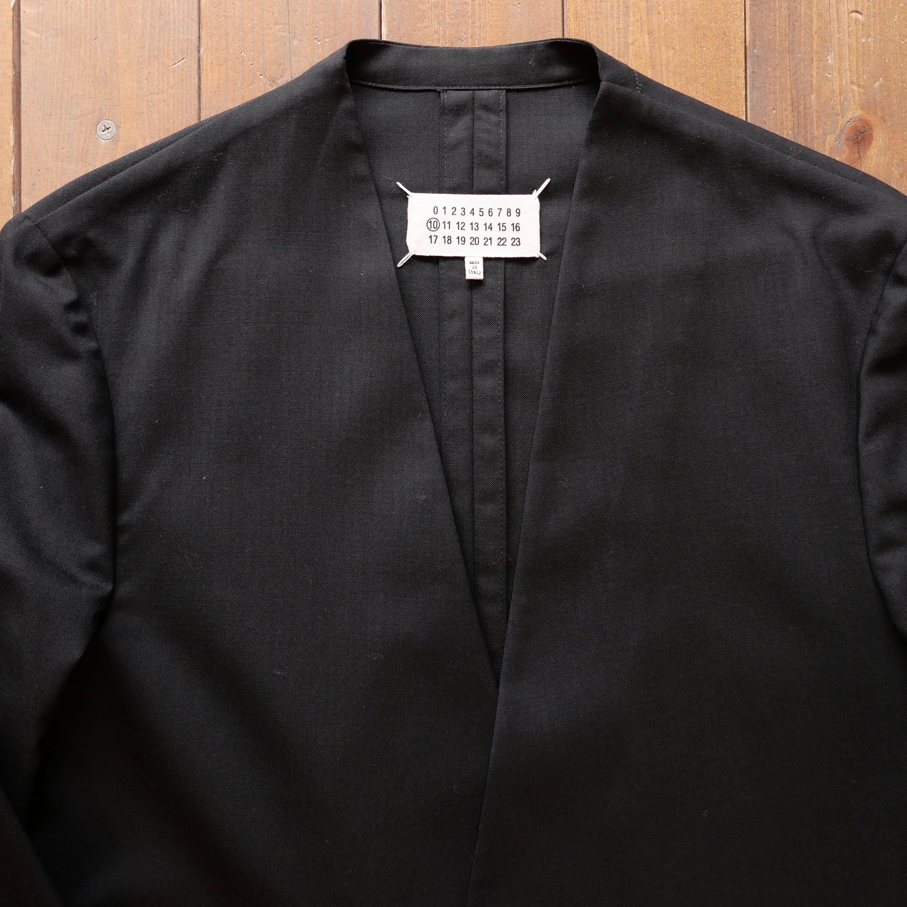 八の字ライダースやドライバーズニットと並び、マルジェラの代表的なアイテムのノーカラージャケット。