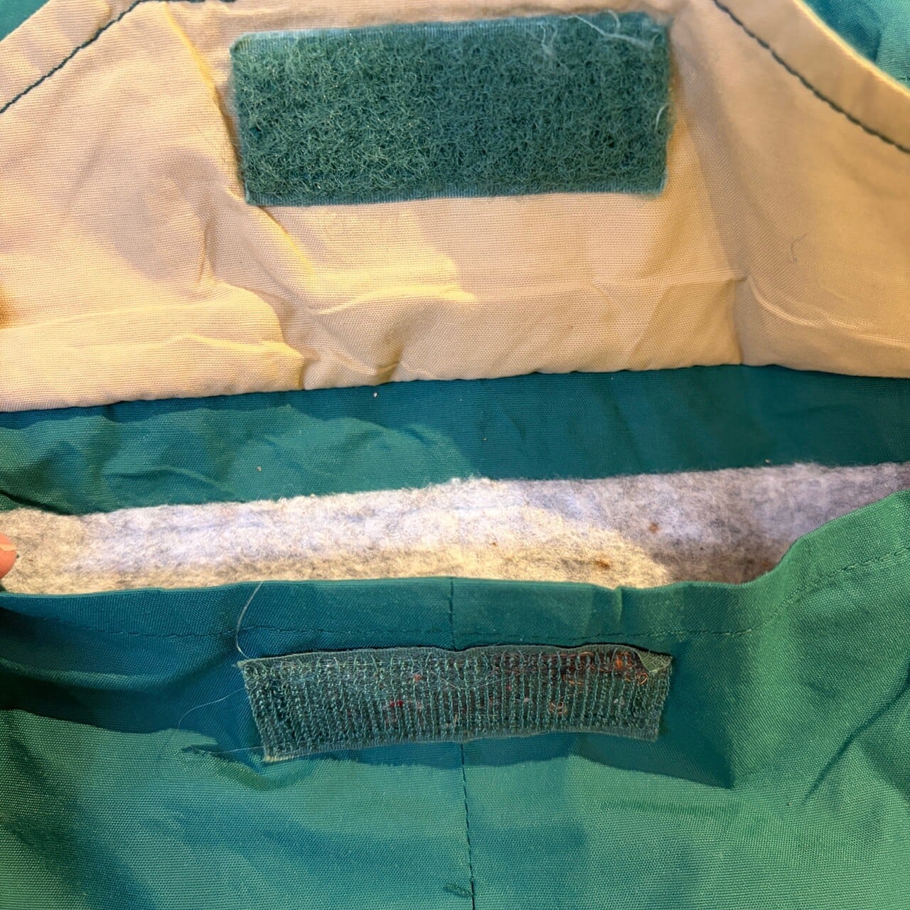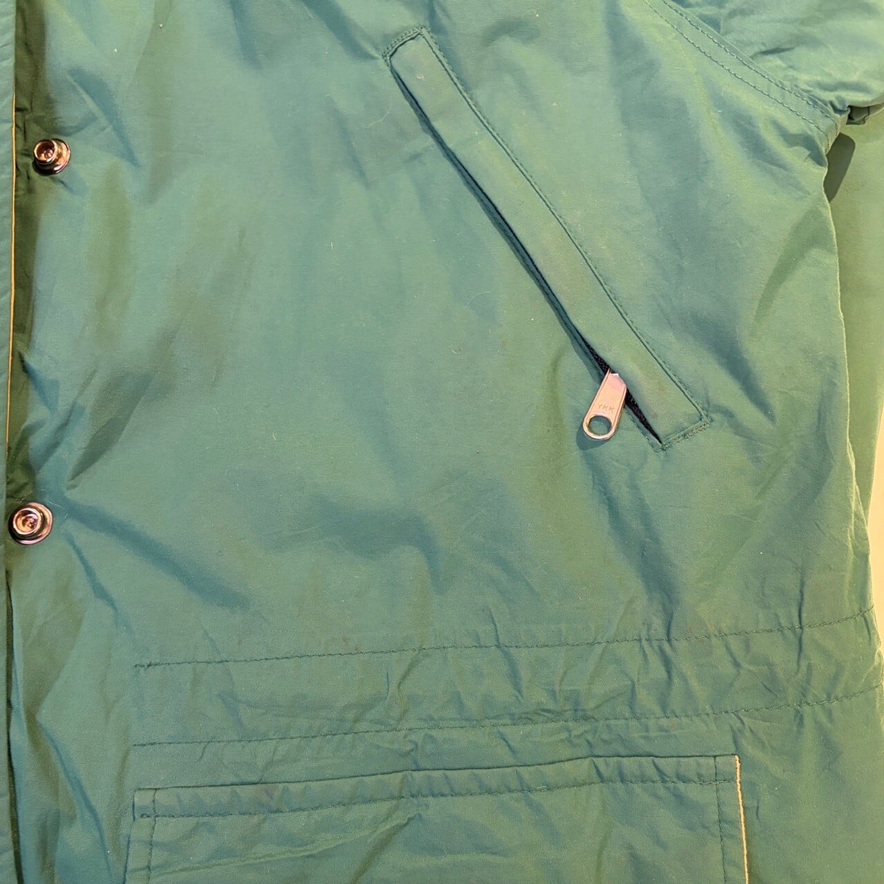 汚れがあり全体的に着用感ございます。ダブルジップの下の方が動かなくなっております。