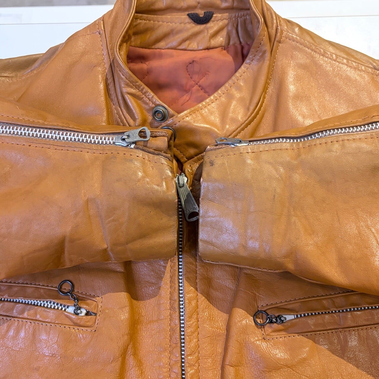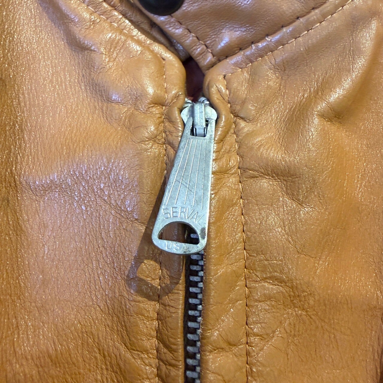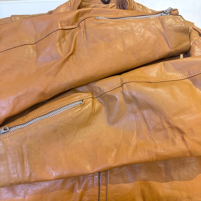 1970s LEATHER JACKET CAMEL "SERVAL ZIP"
