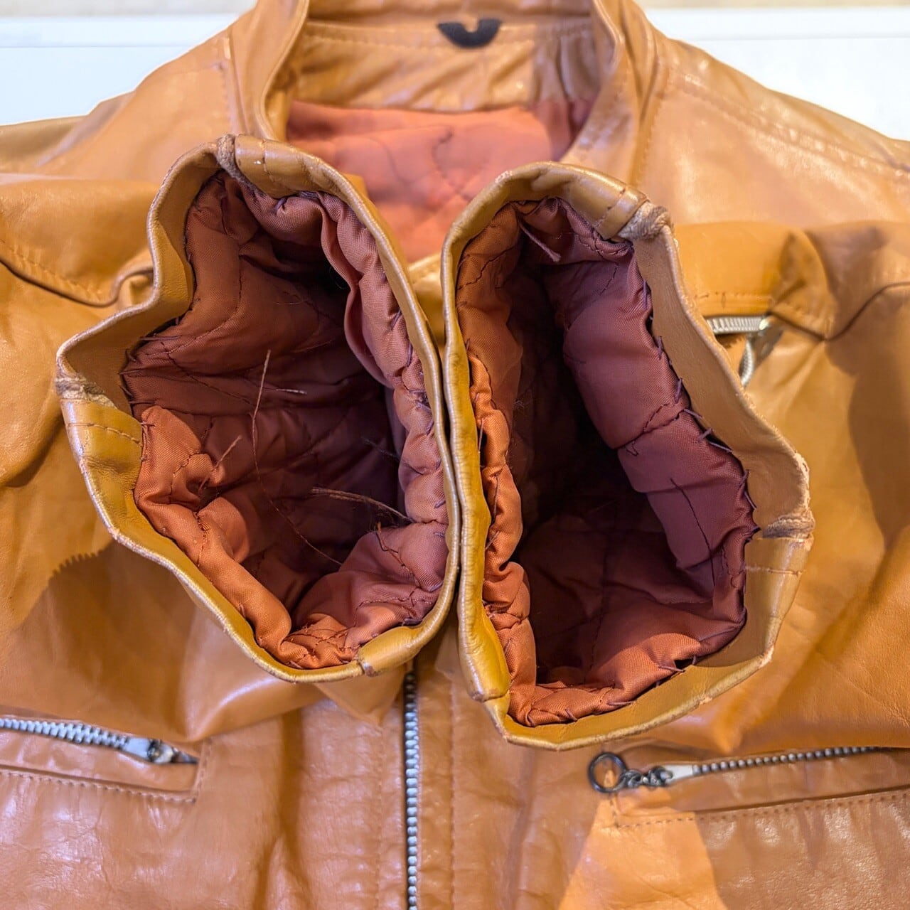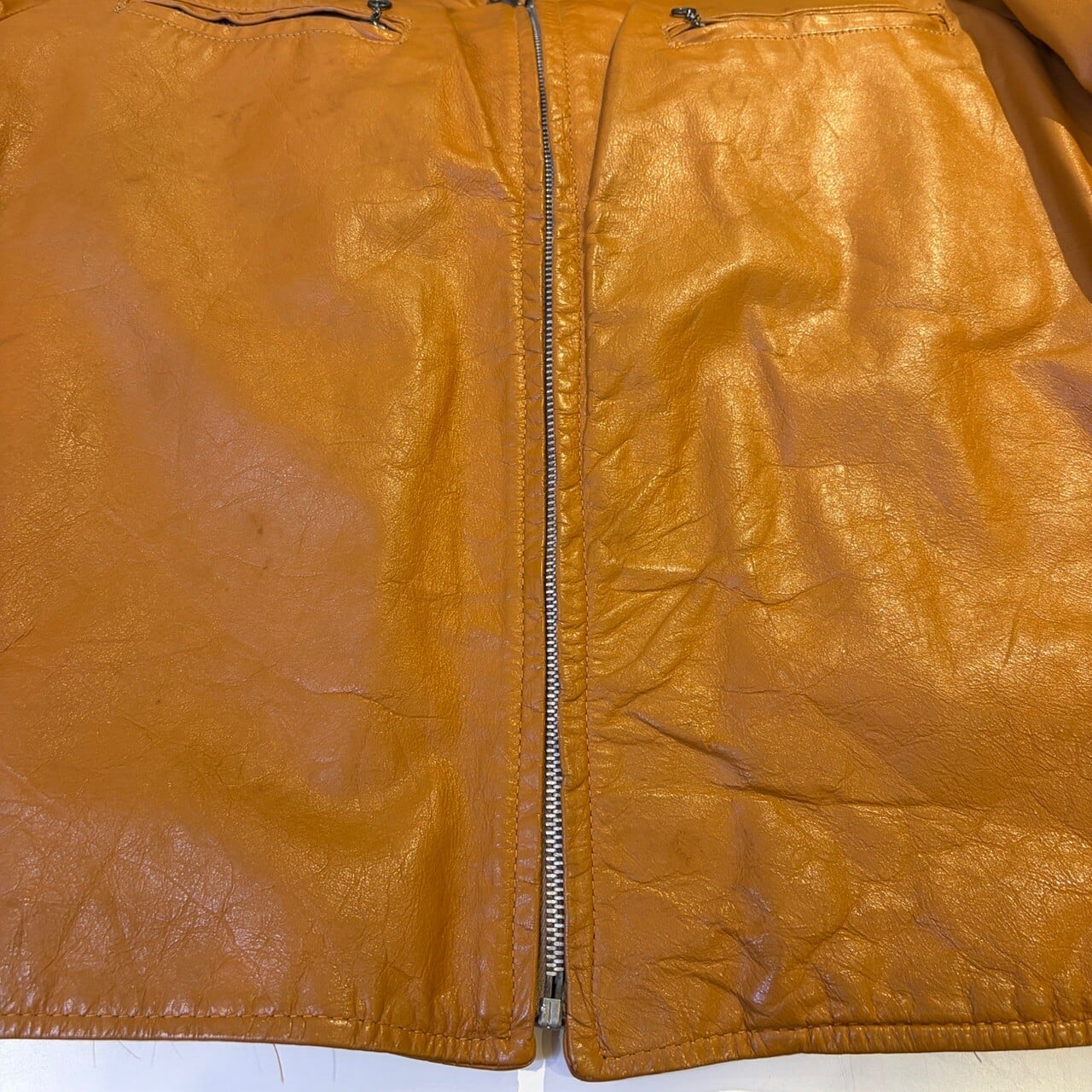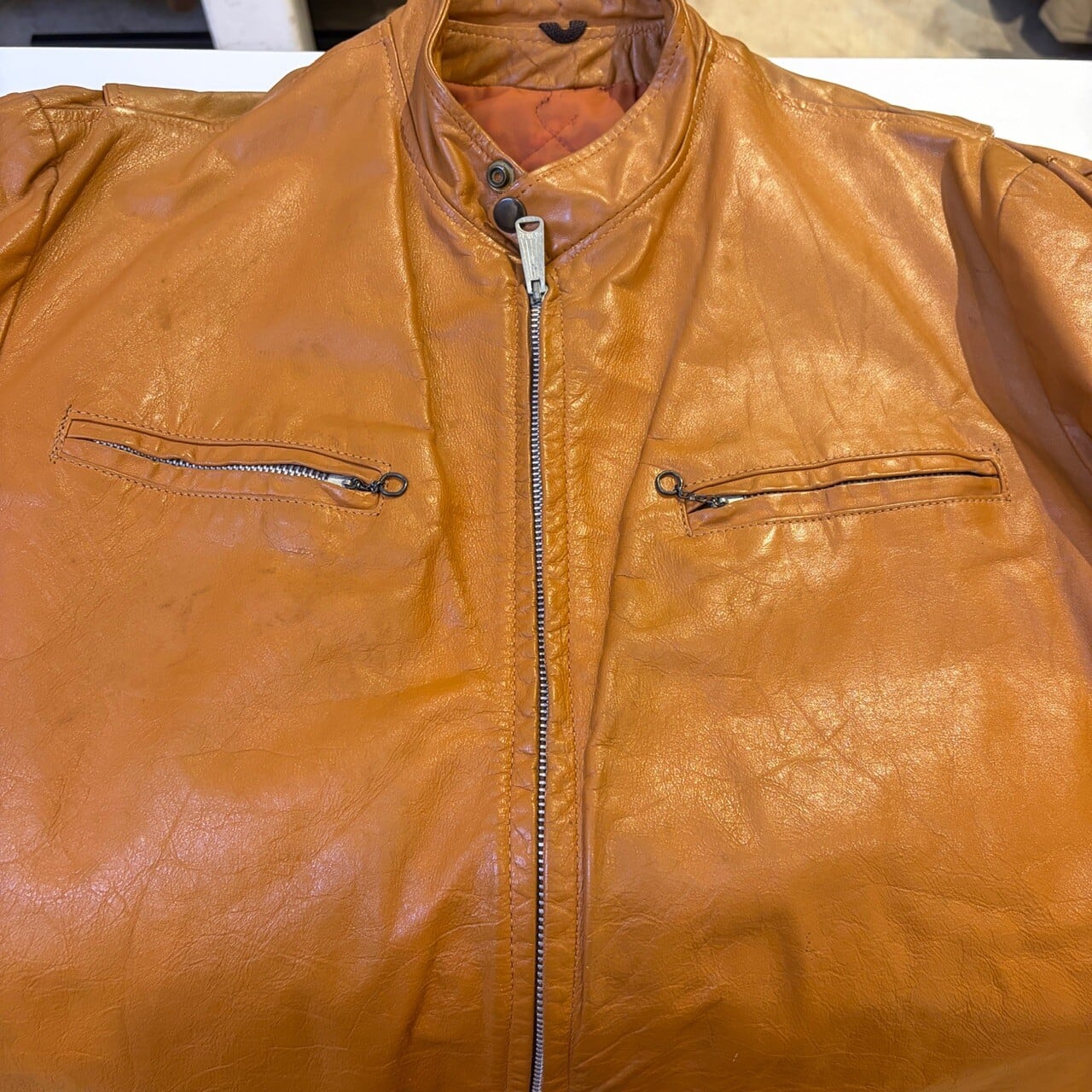 1970s LEATHER JACKET CAMEL "SERVAL ZIP"